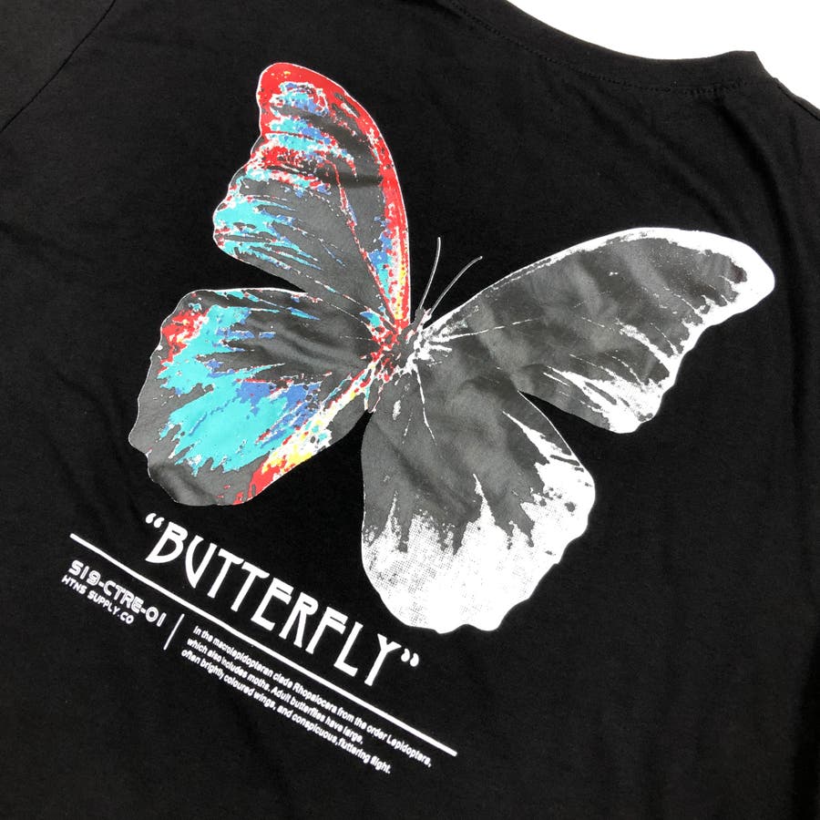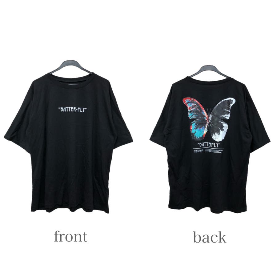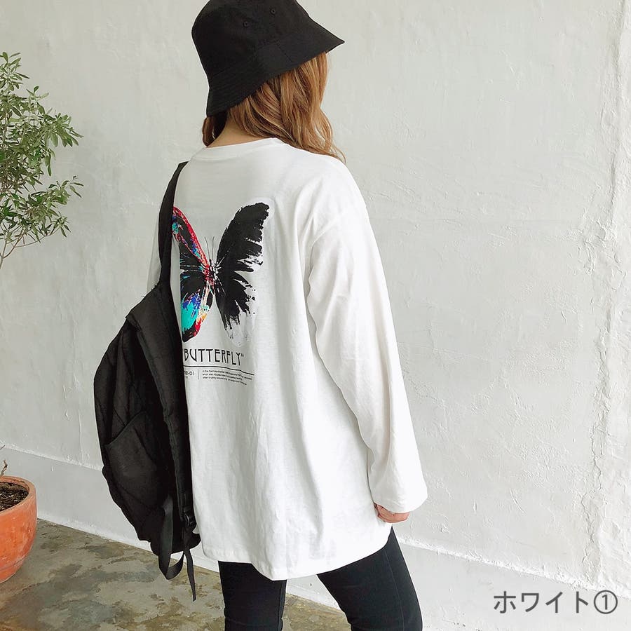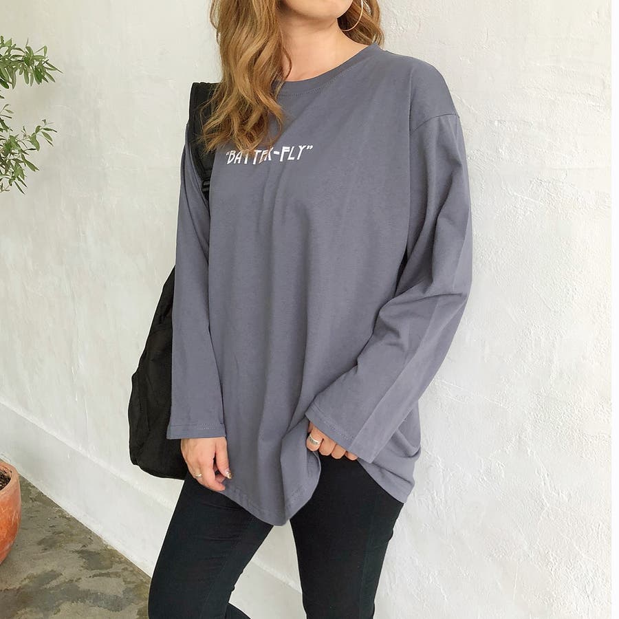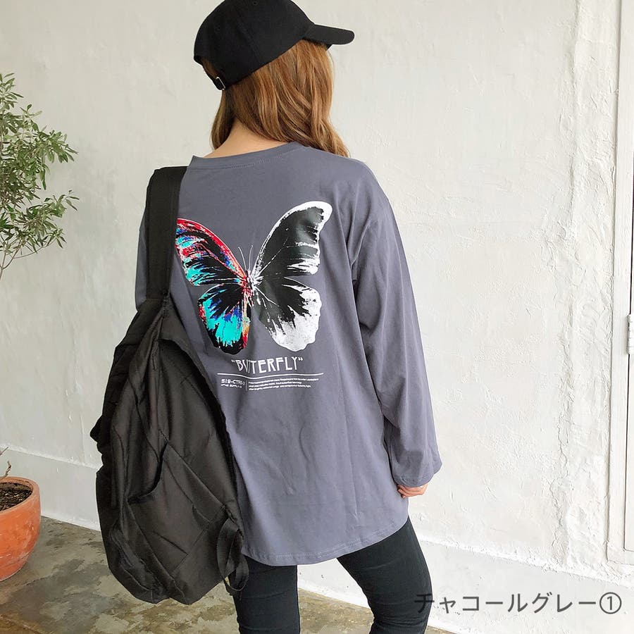 韓国ファッション 韓国 Tシャツ ロンT トップス カットソー プリント ロゴ バタフライ 蝶 ルーズ オーバー BIG ビッグ ゆったり ユニセックス カジュアル ストリート ダンス