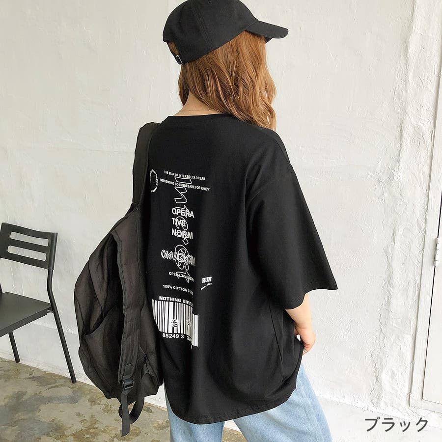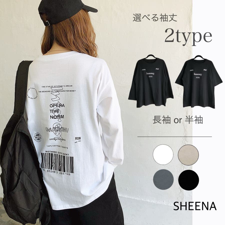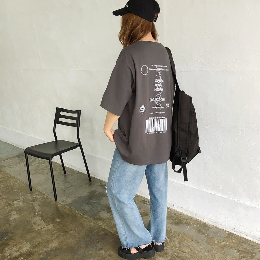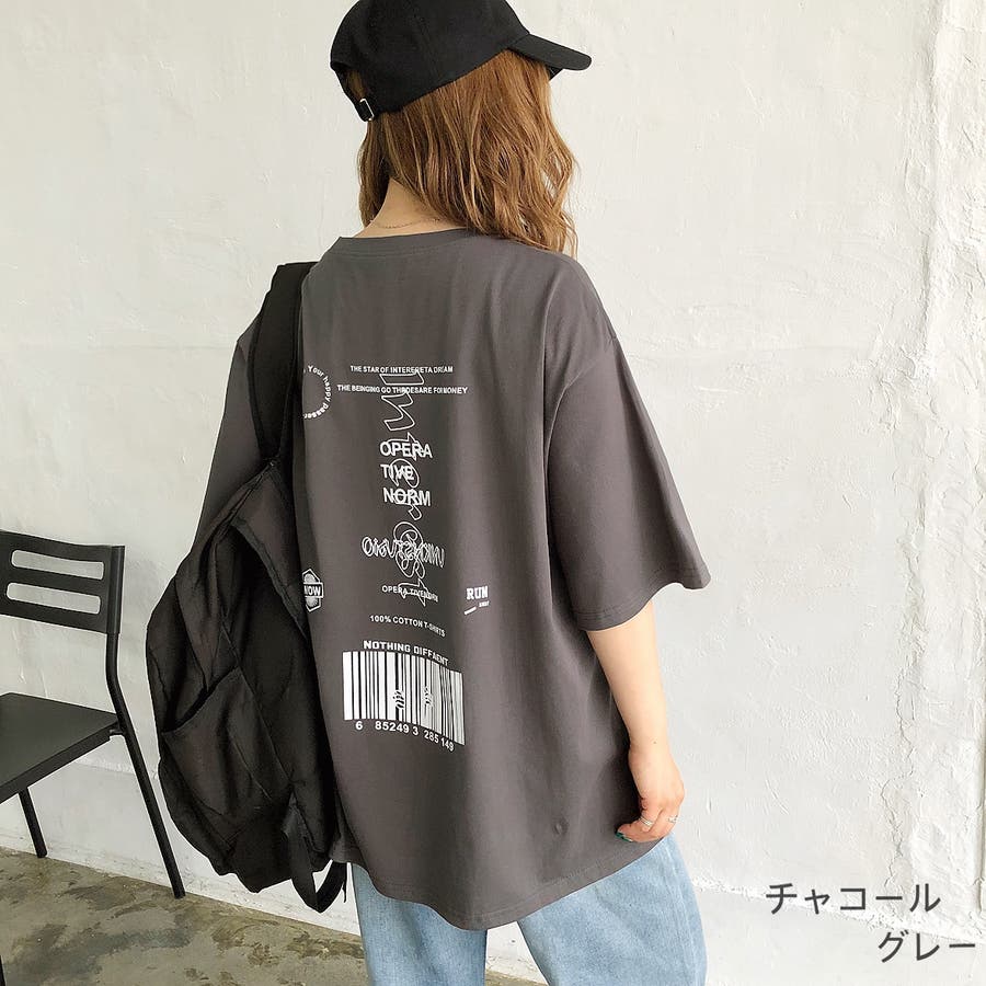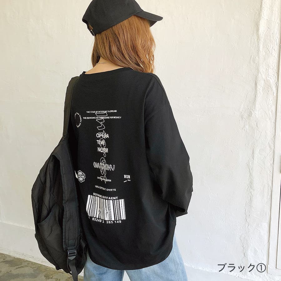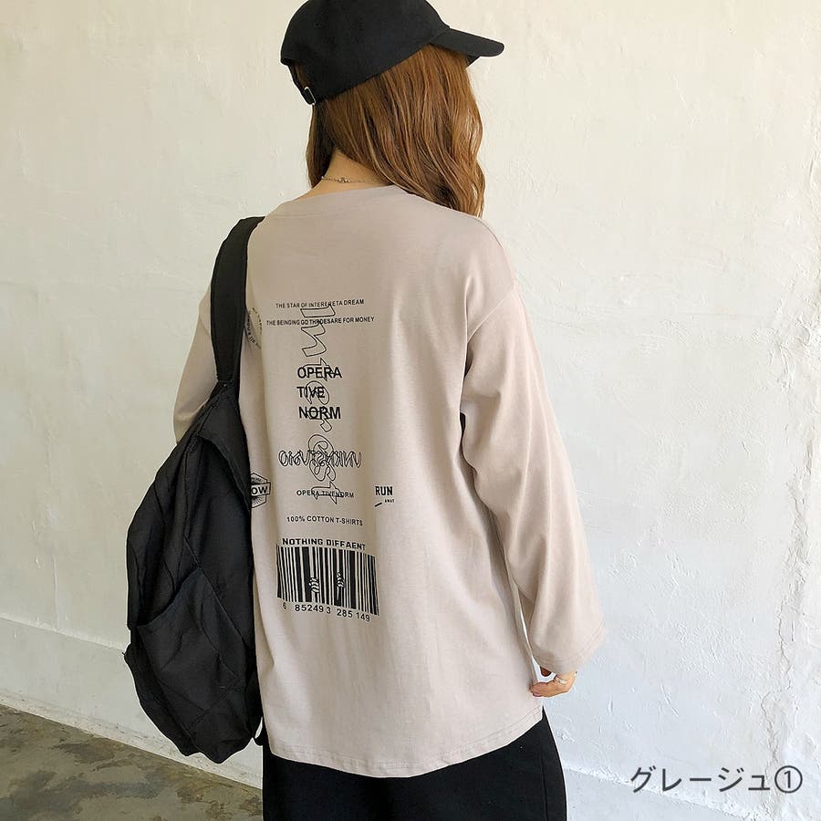 【チャコールグレー1】バックプリントルーズTシャツ ロンT 韓国