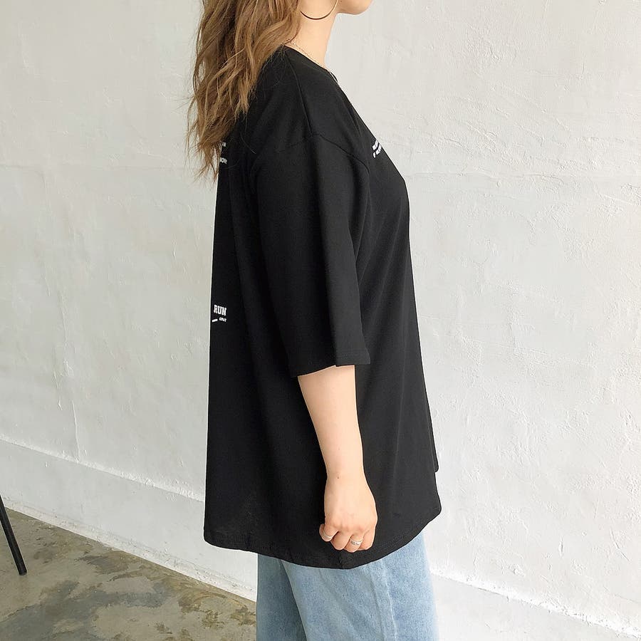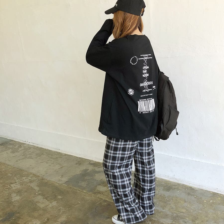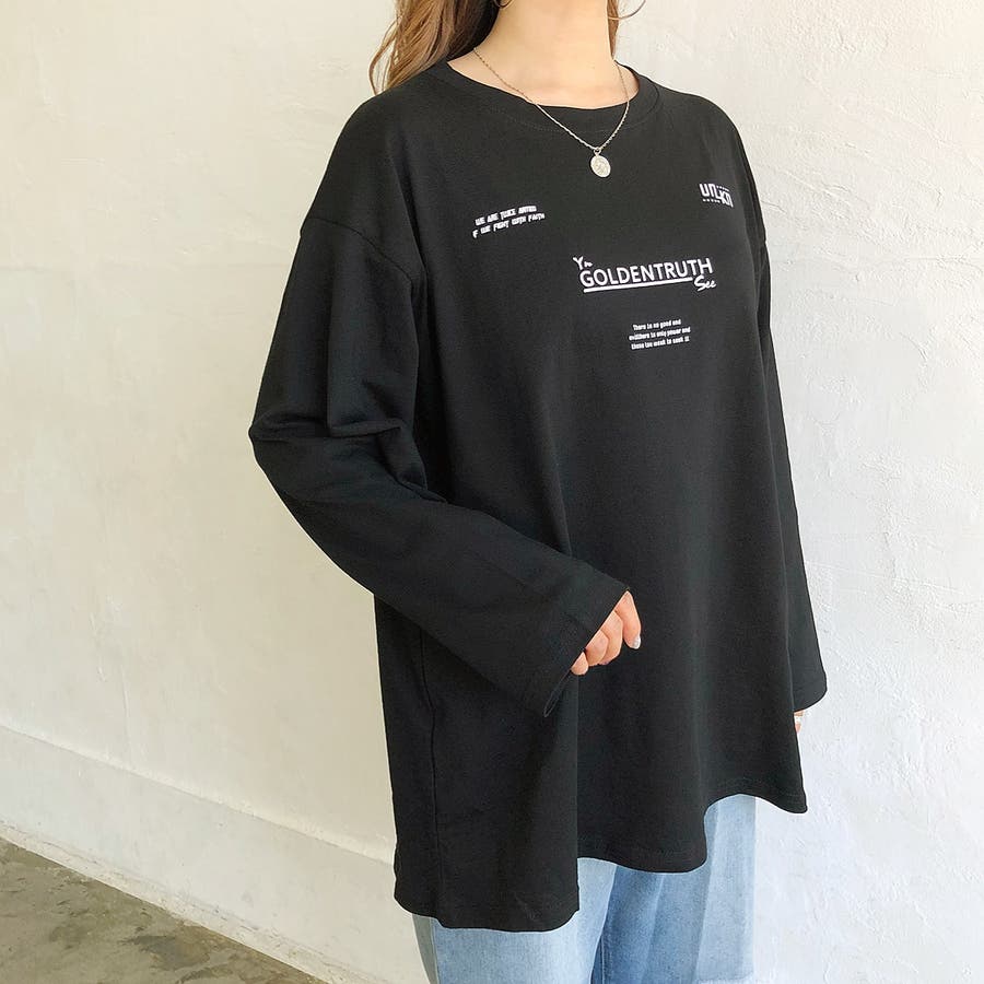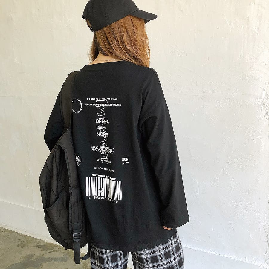 韓国 韓国ファッション Tシャツ ロンT トップス カットソー ルーズ オーバー BIG ビッグ ゆったり ユニセックス ロゴ プリント ストリート ダンス カジュアル
