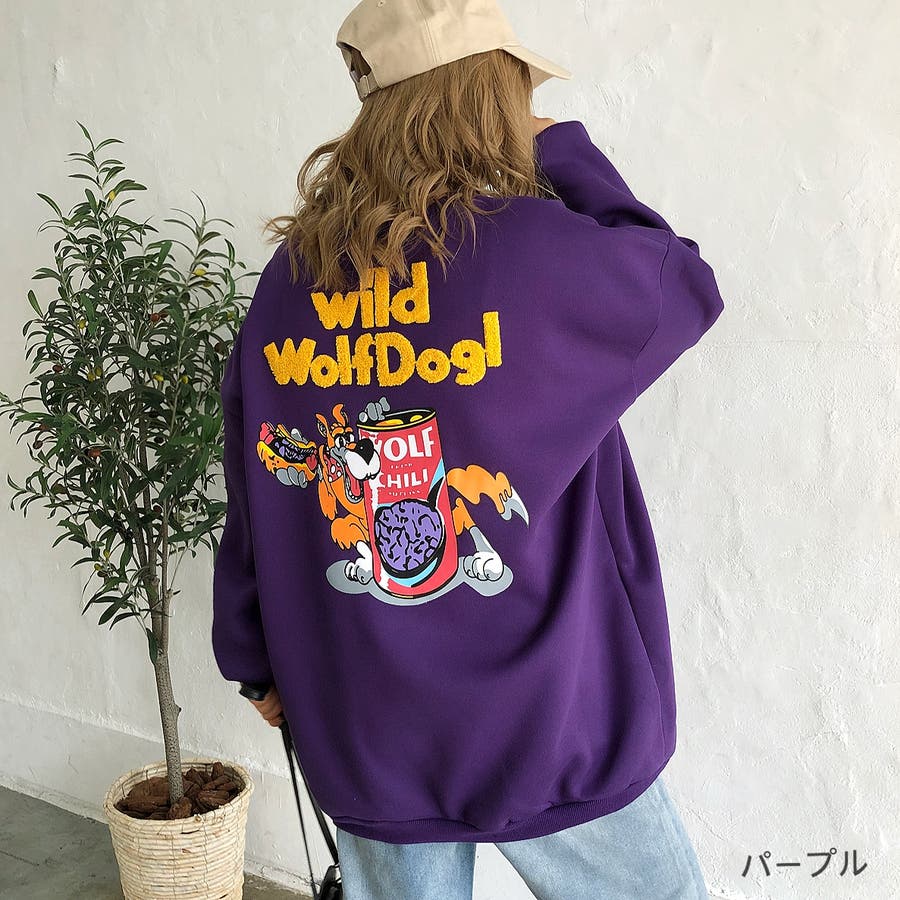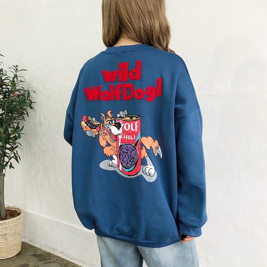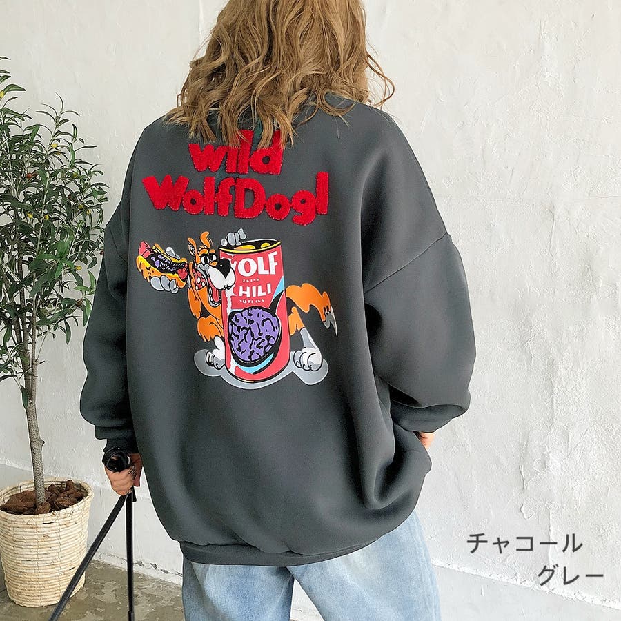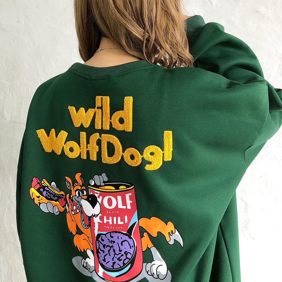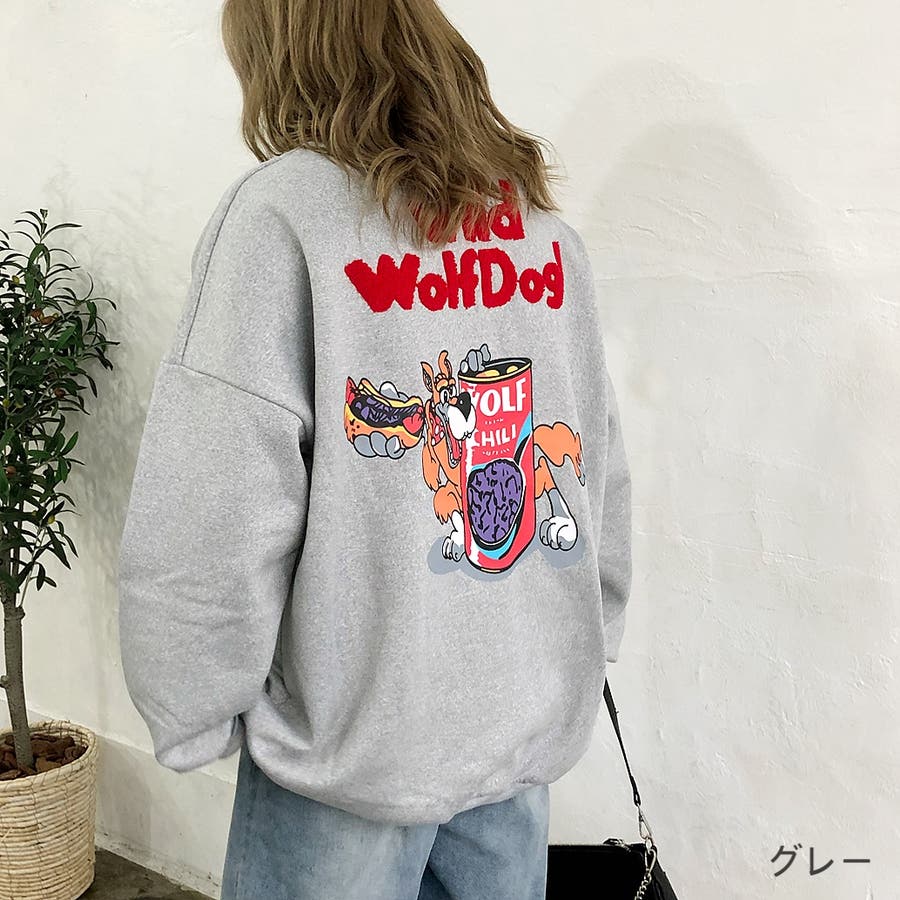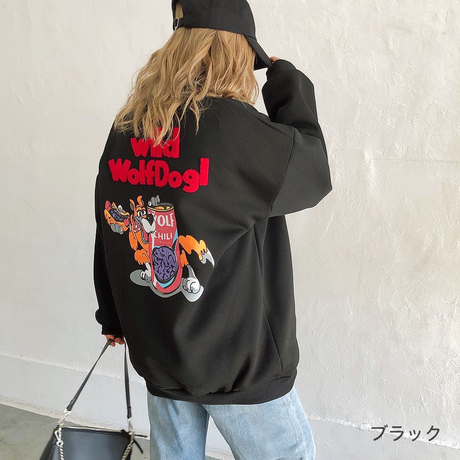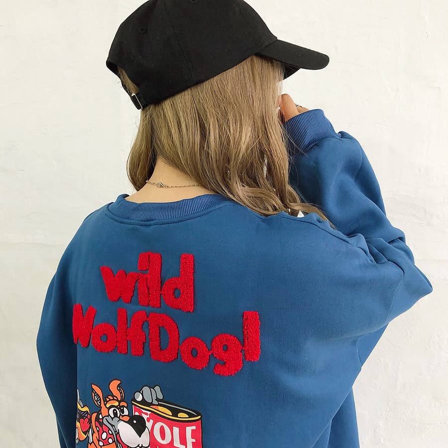 WolfDog刺しゅうルーズトレーナー 秋 冬