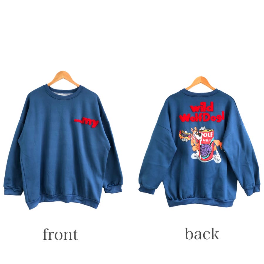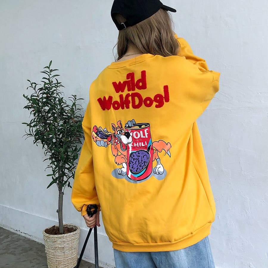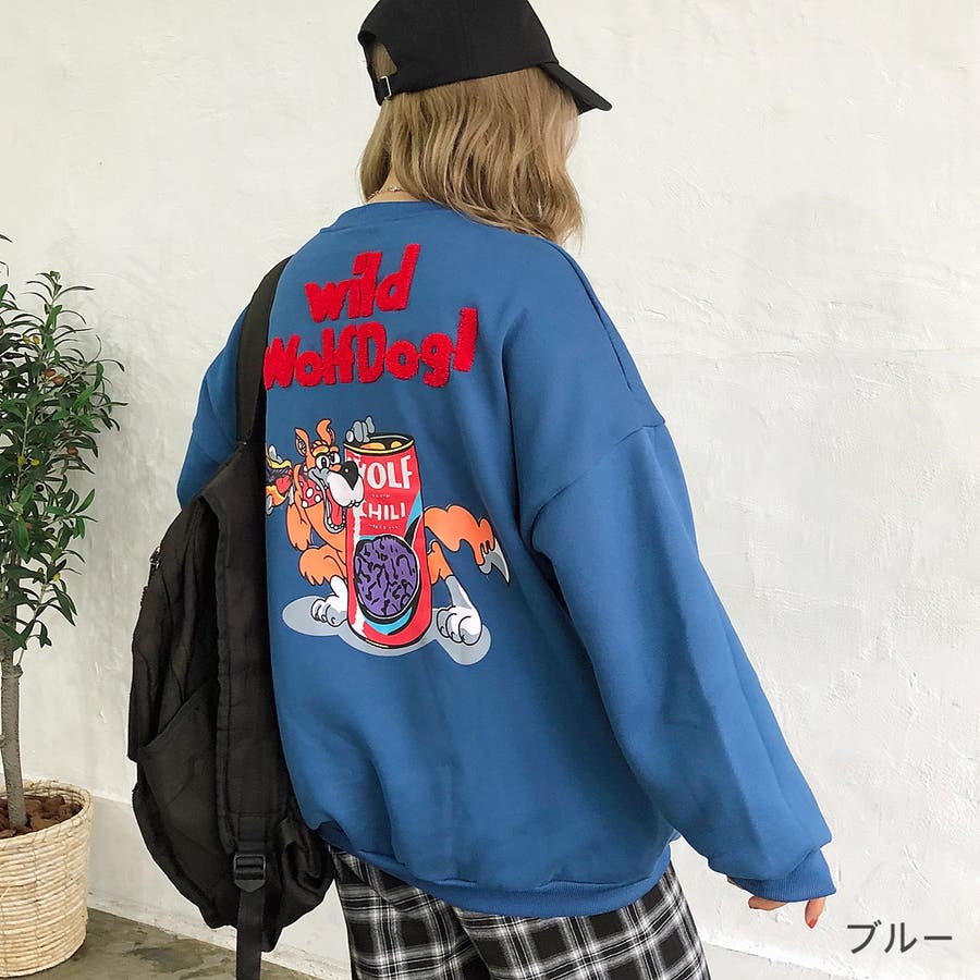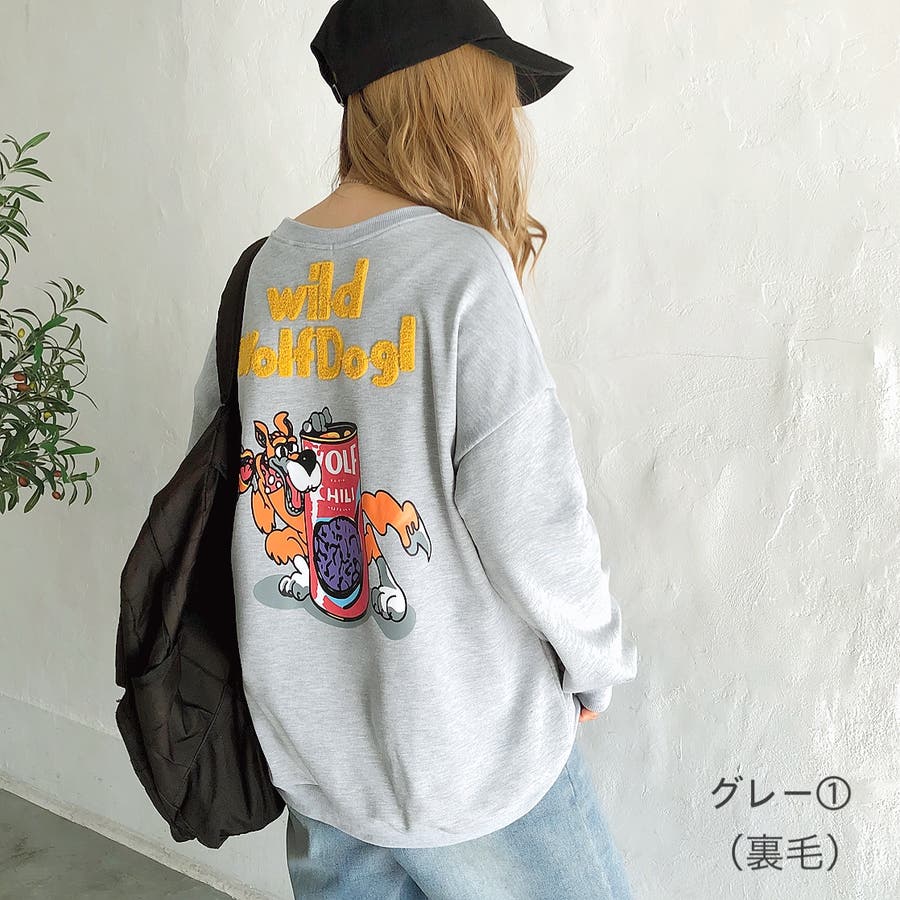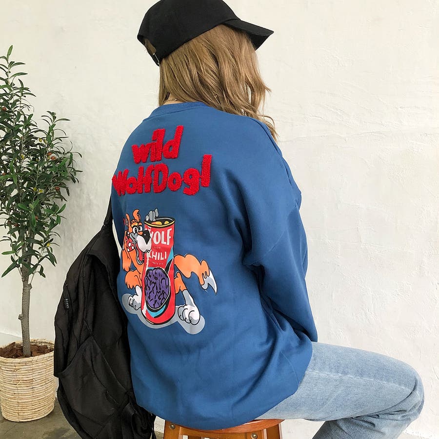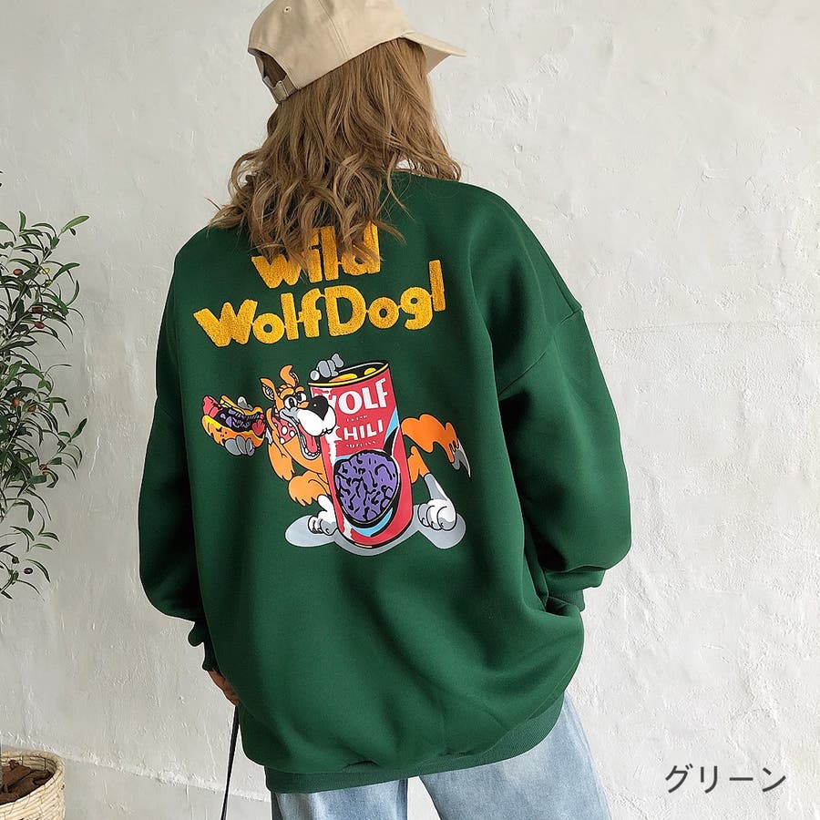 WolfDog刺しゅうルーズトレーナー 秋 冬