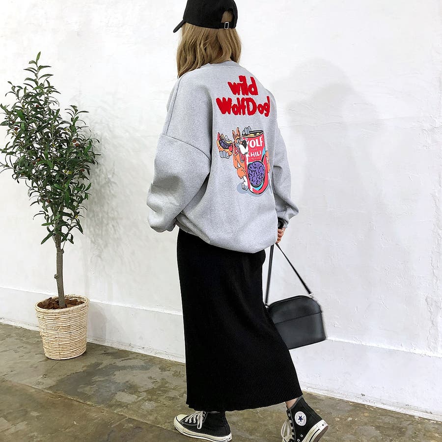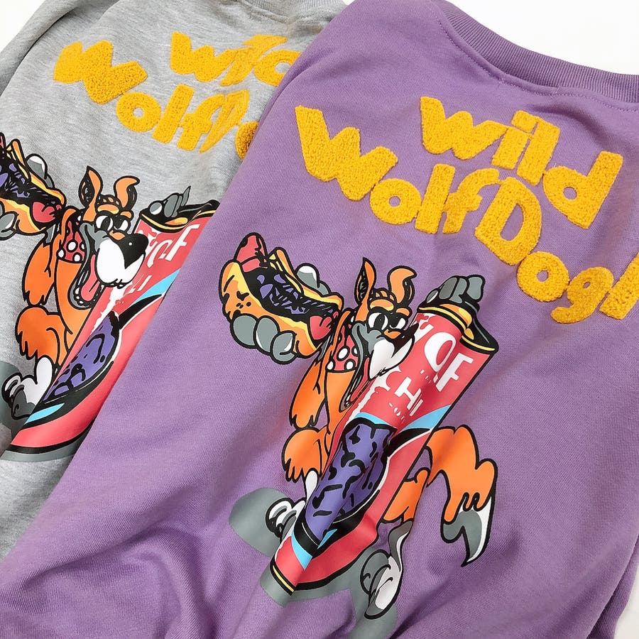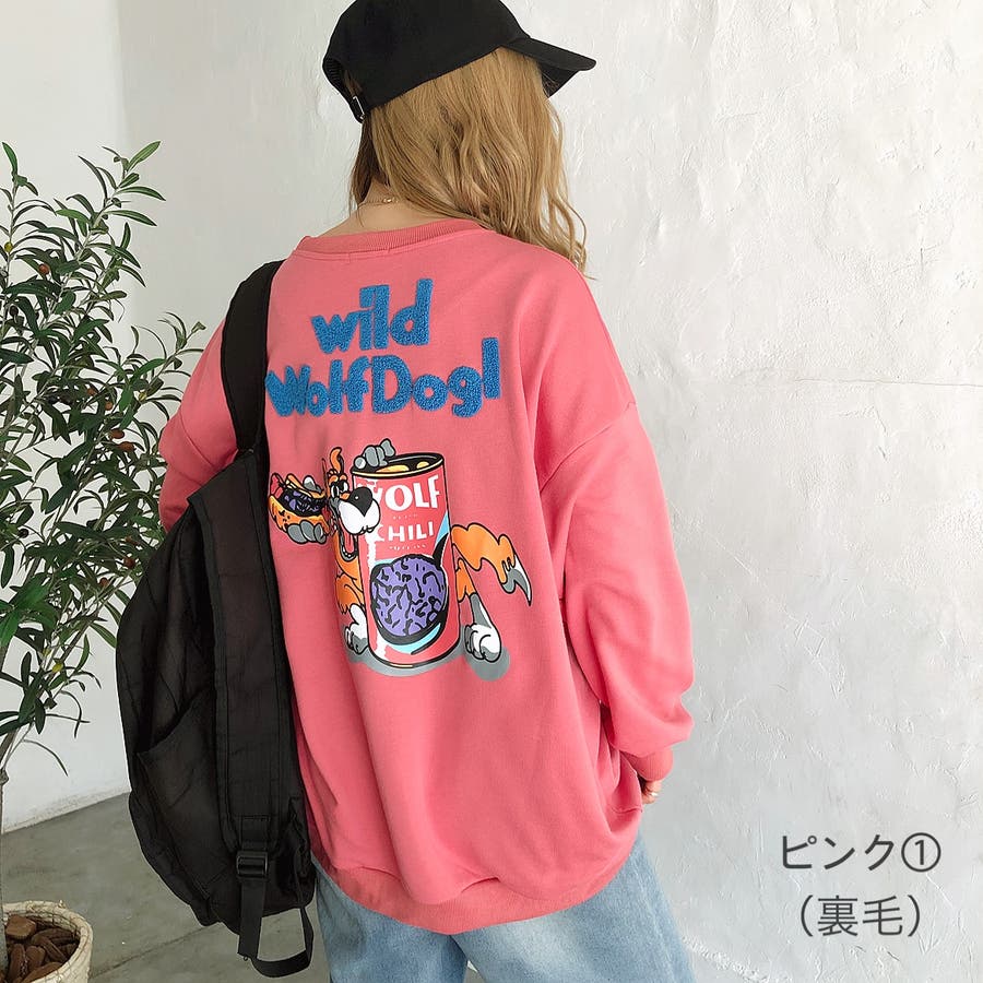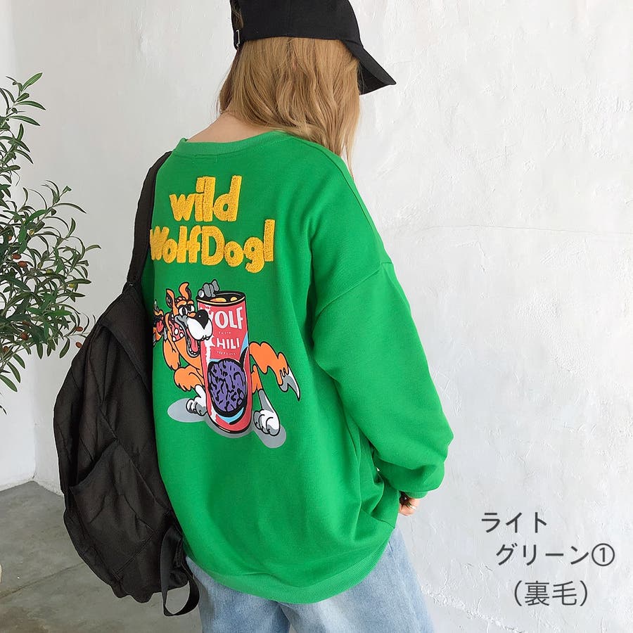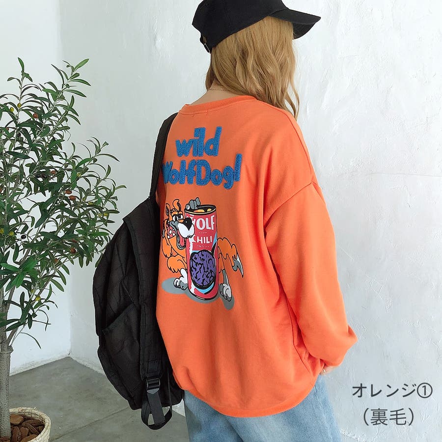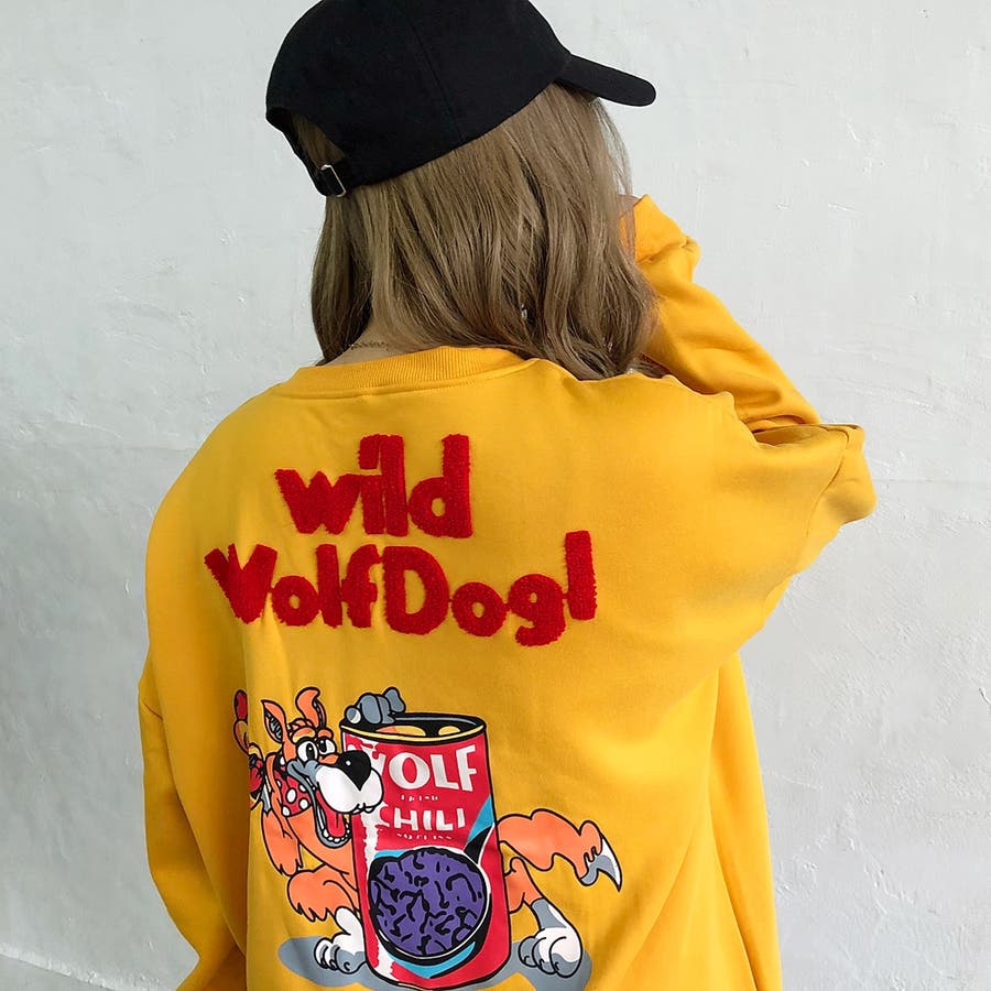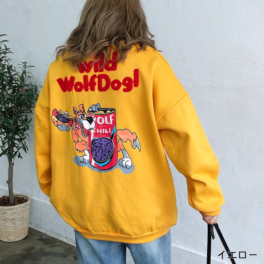 WolfDog刺しゅうルーズトレーナー 秋 冬