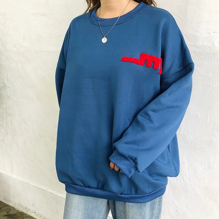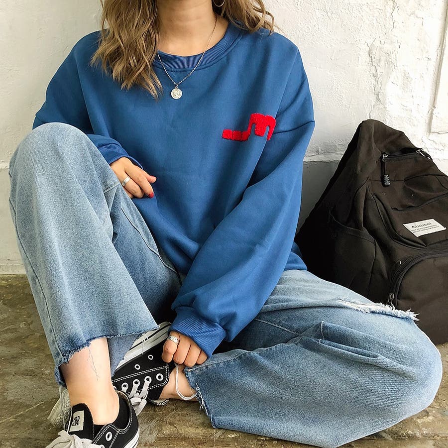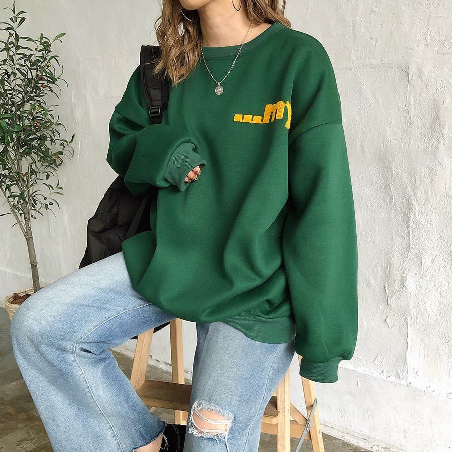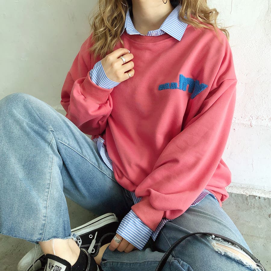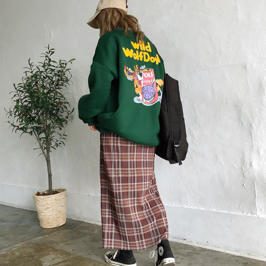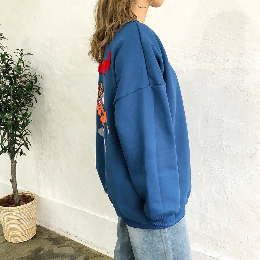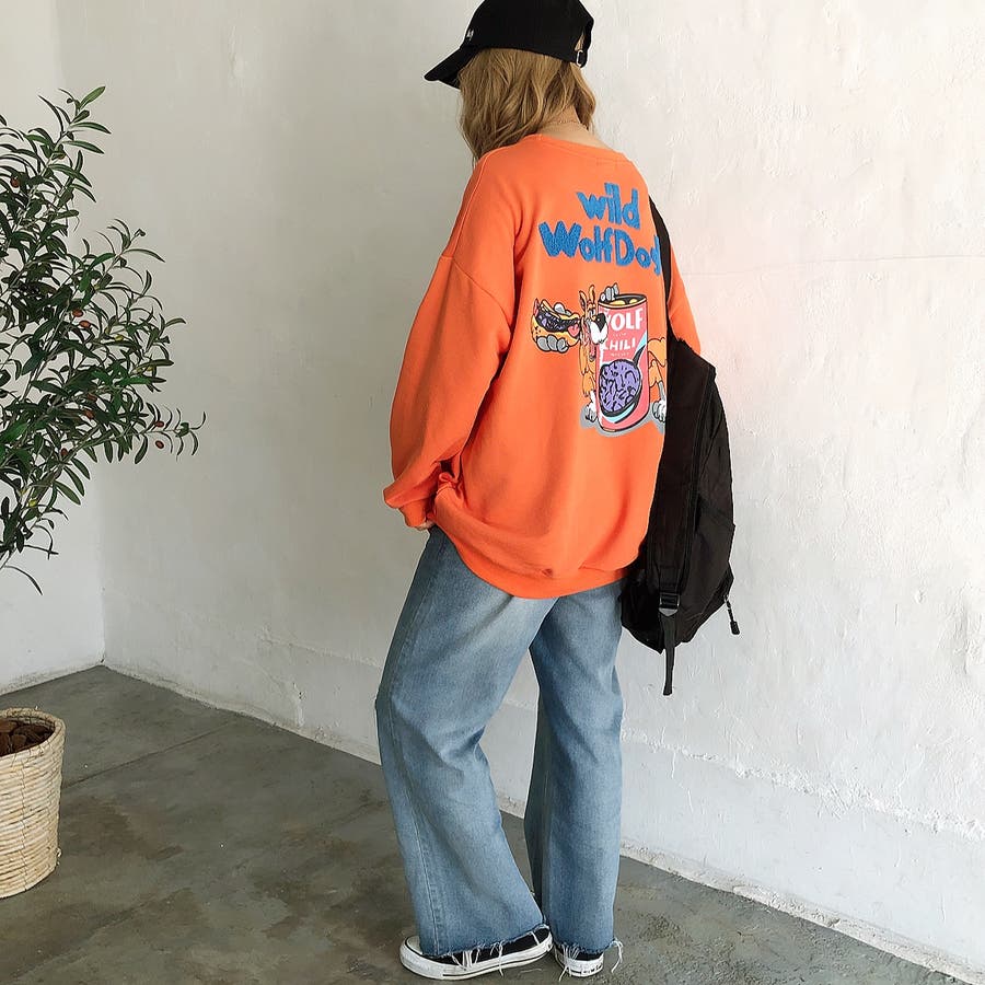 WolfDog刺しゅうルーズトレーナー 秋 冬