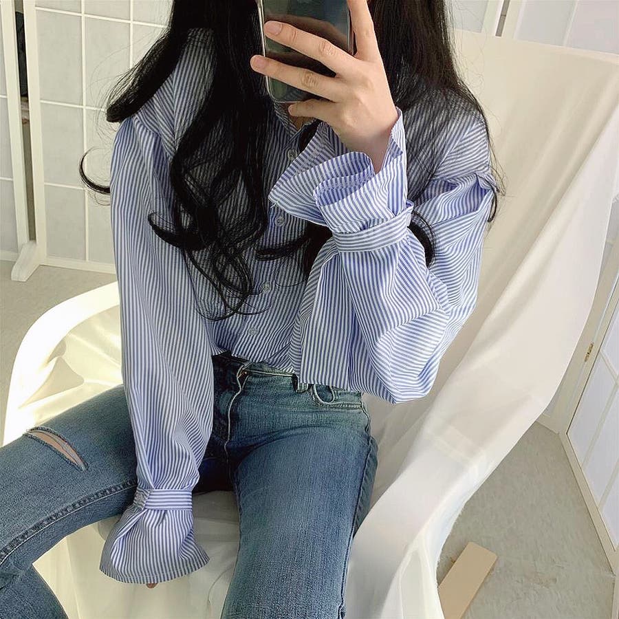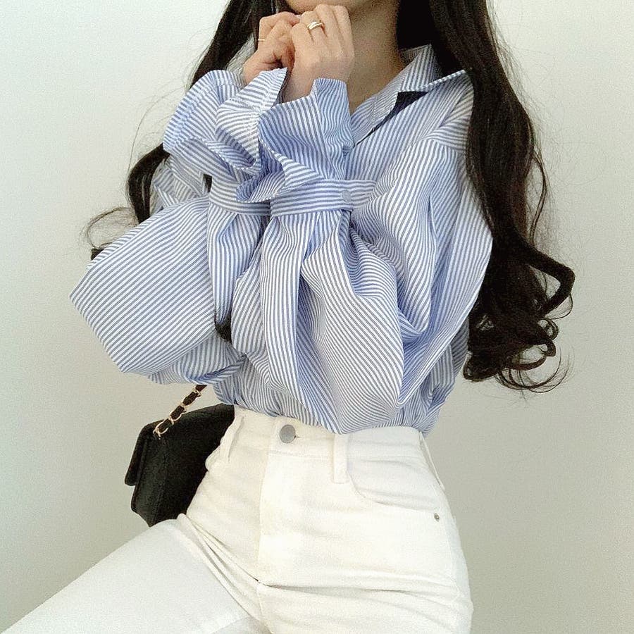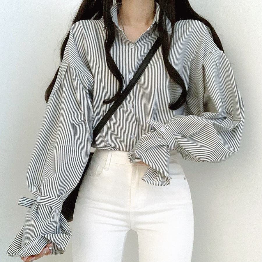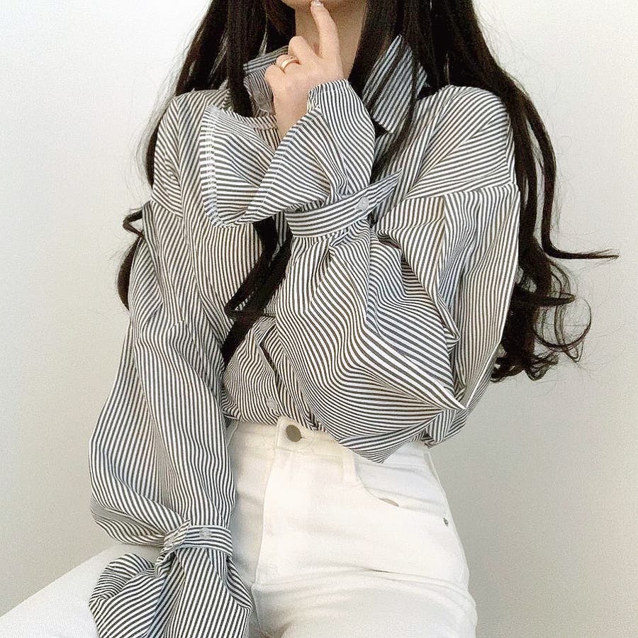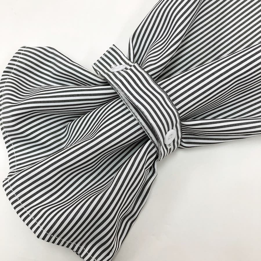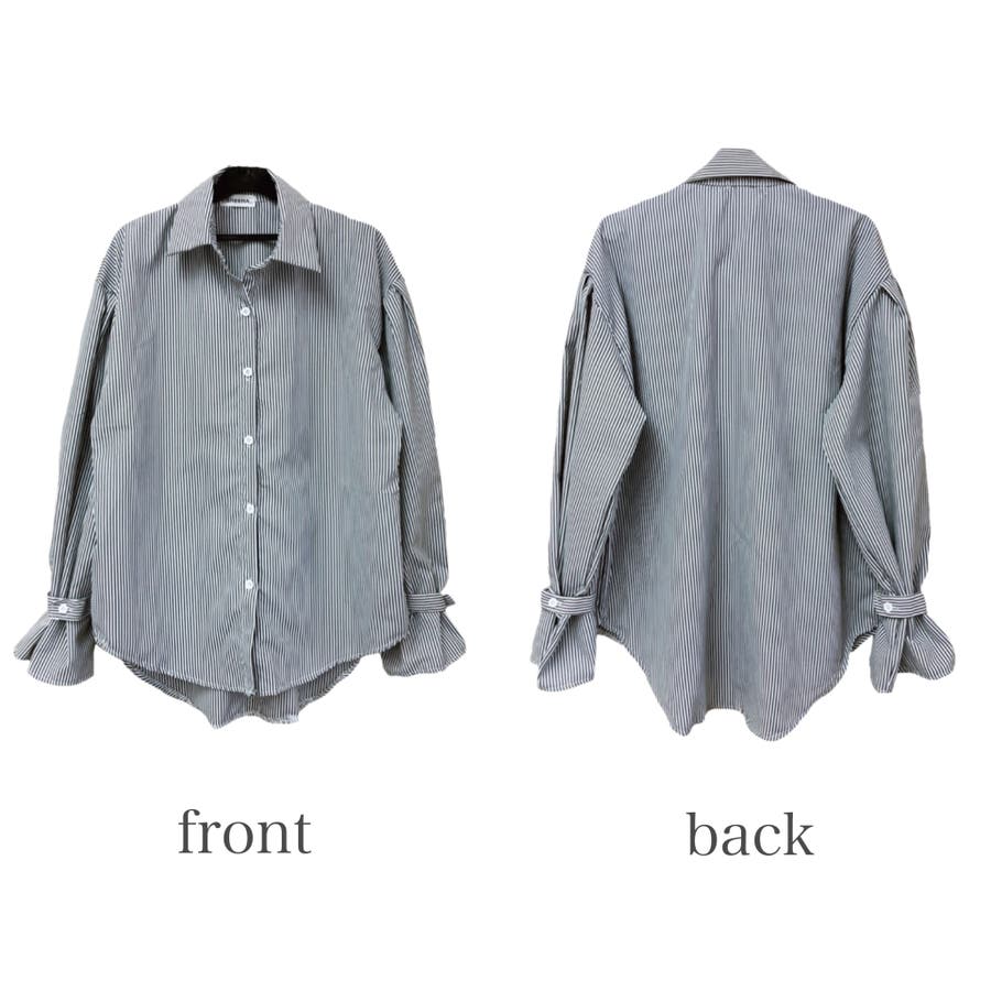 ストライプシャツを探している時に袖のアレンジが可愛くてこちらの商品を選び、購入させていただきました!