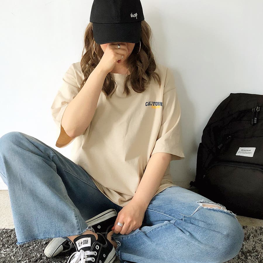韓国ファッション 韓国 ロンT Tシャツ トップス カットソー プリント バックシャン ゆったり ルーズ ストリート アメカジ ダンス カジュアル
