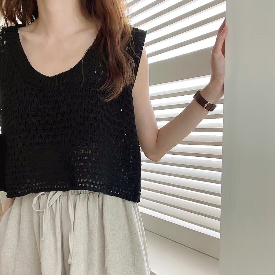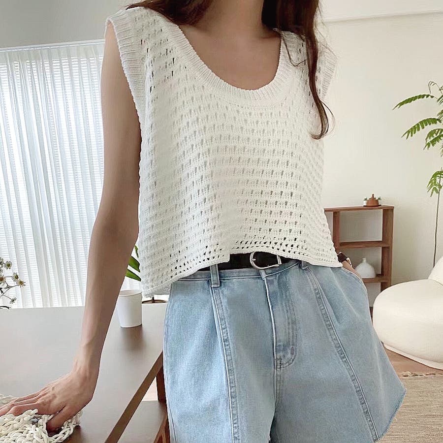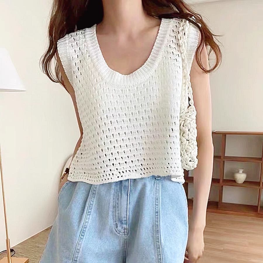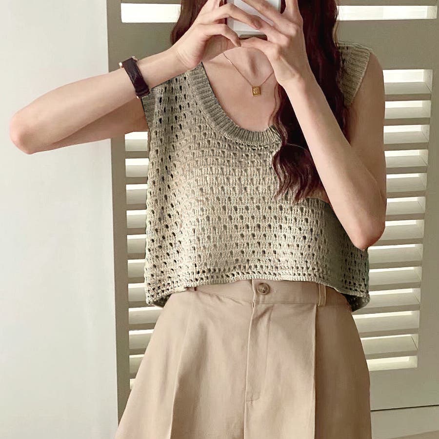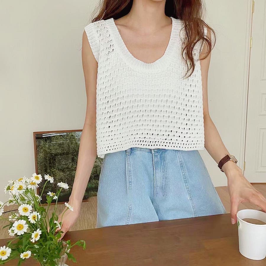 透かし編みニットタンクトップ 夏 韓国ファッション