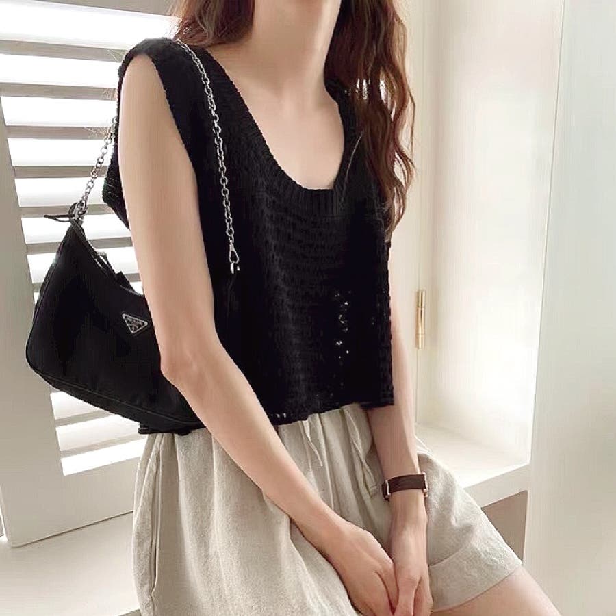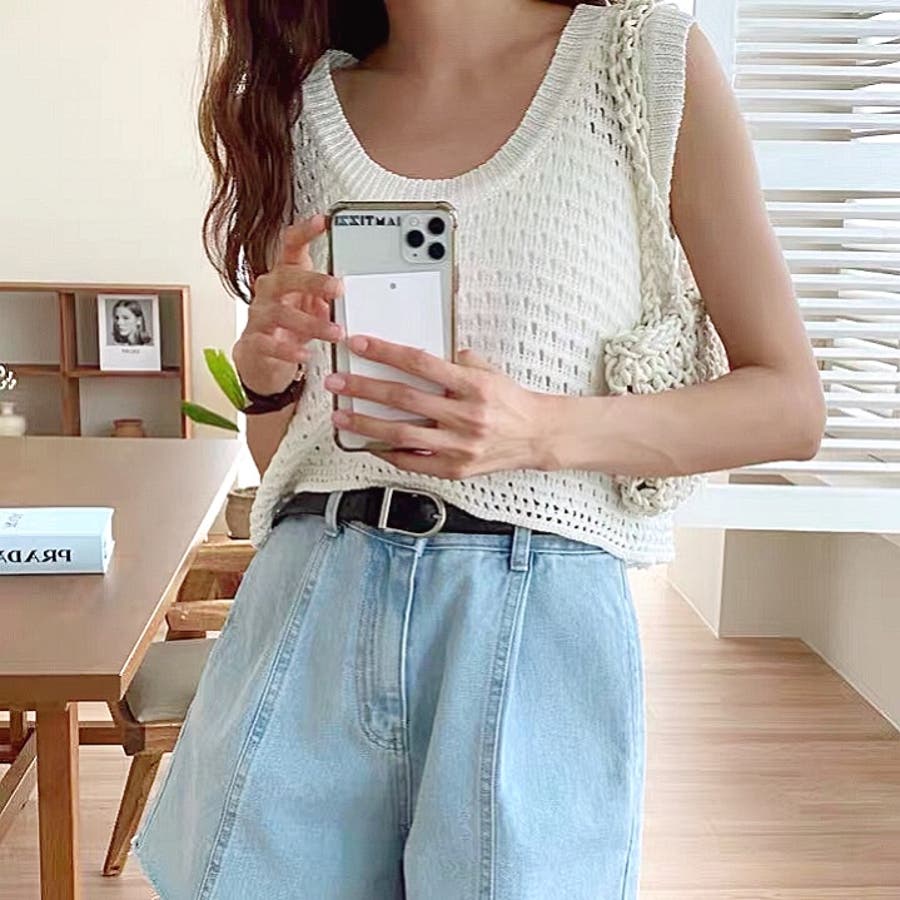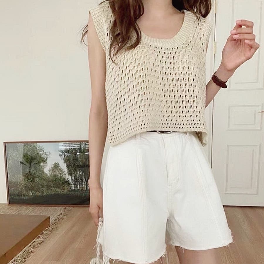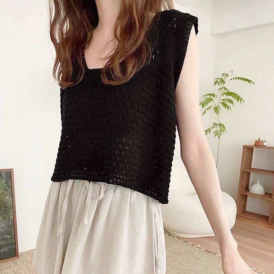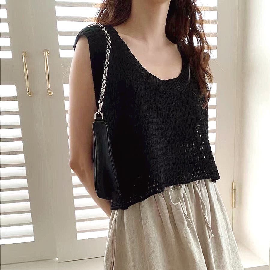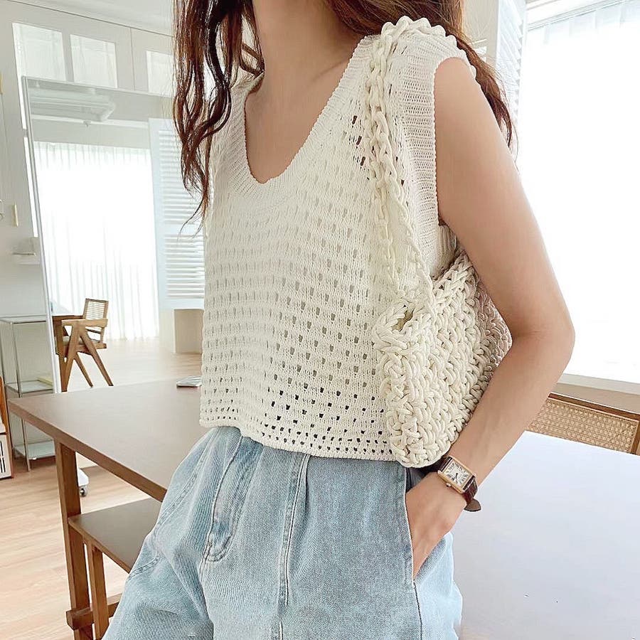 透かし編みニットタンクトップ 夏 韓国ファッション