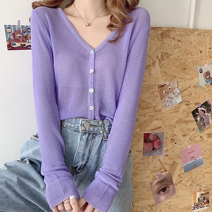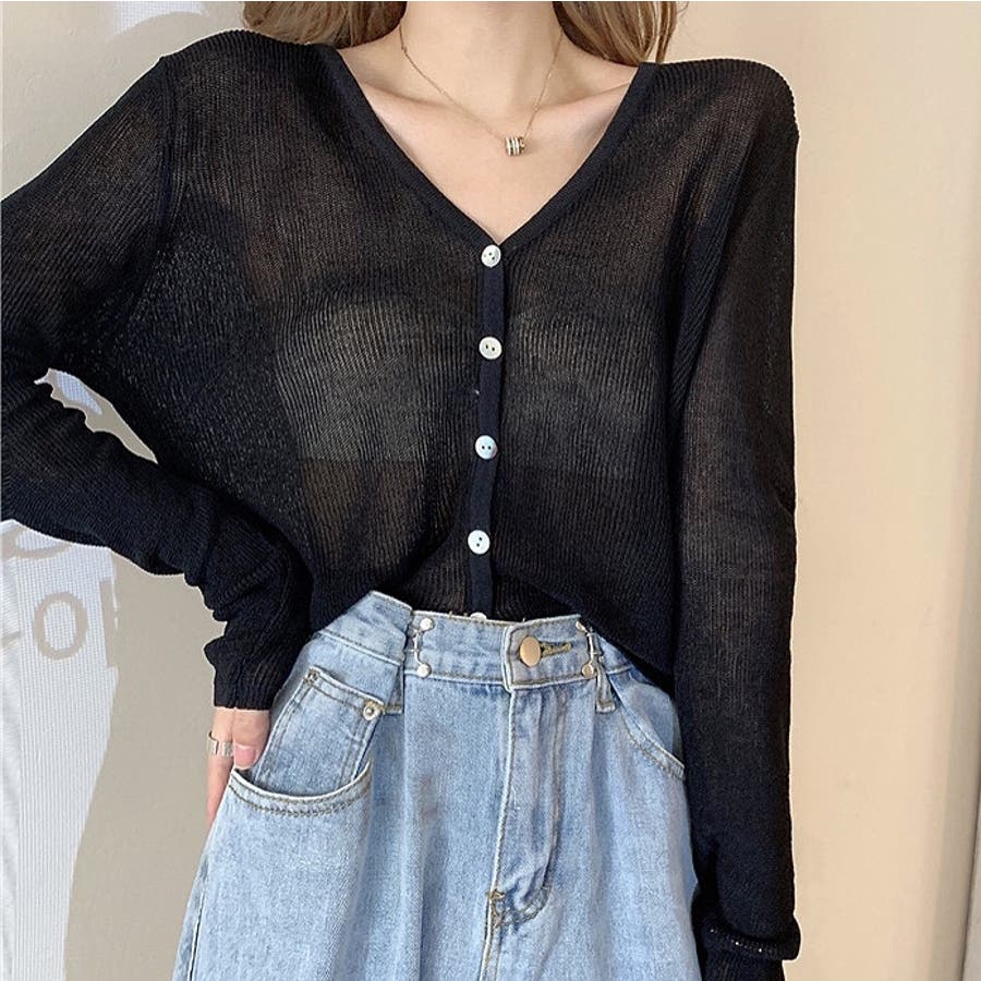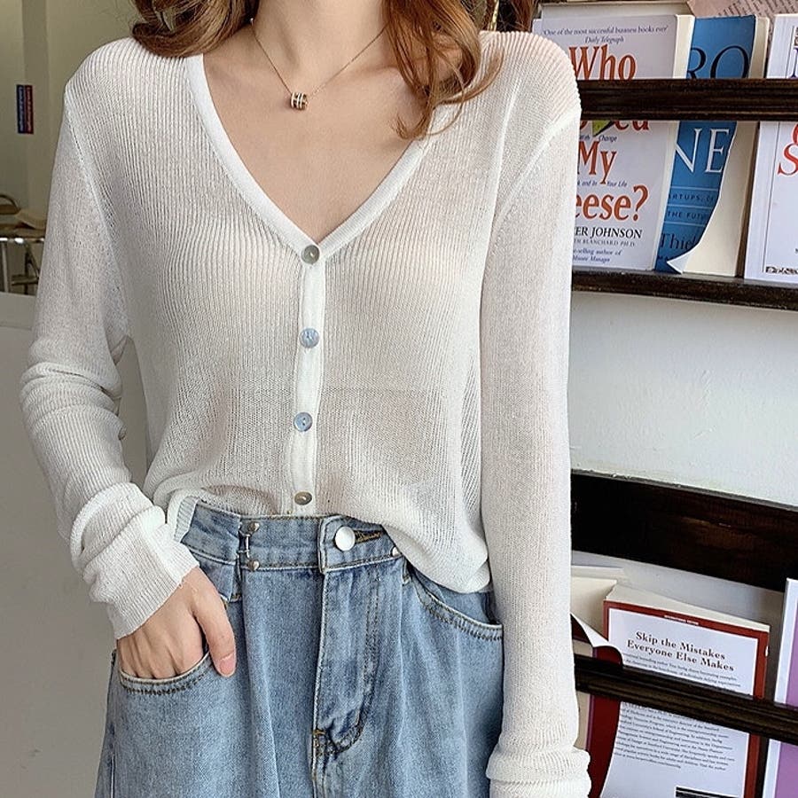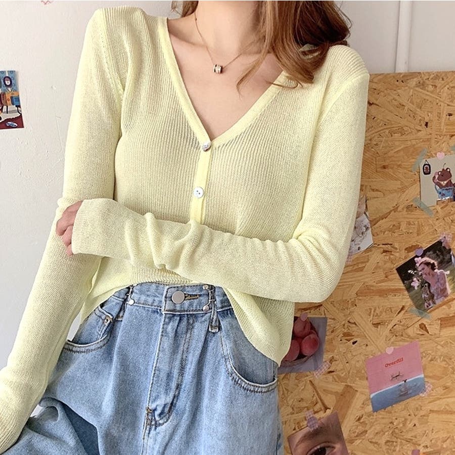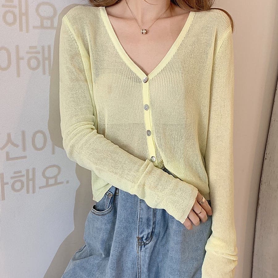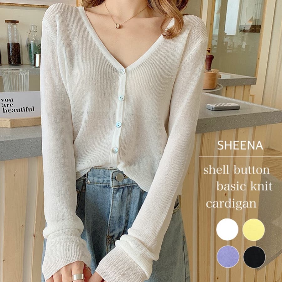 シェルボタンベーシックニットカーディガン 夏 韓国ファッション