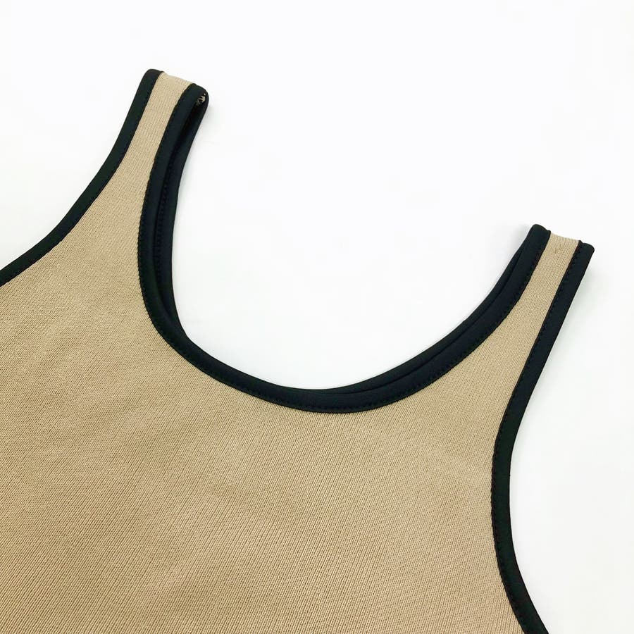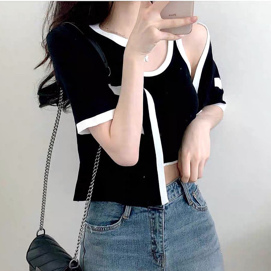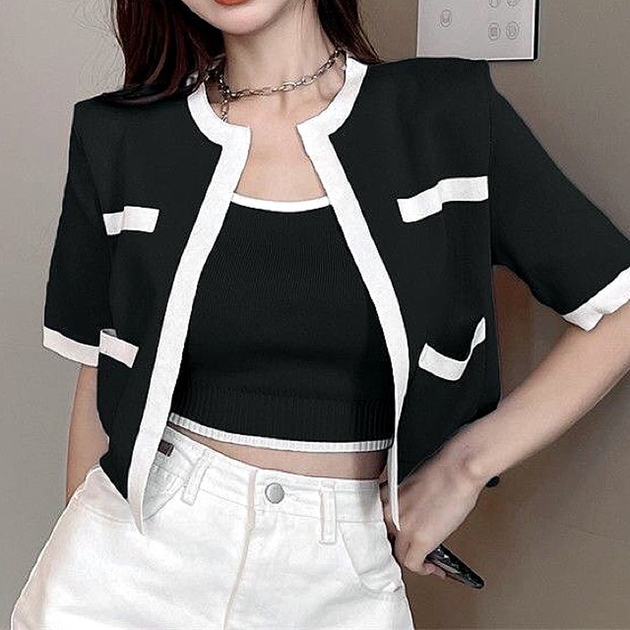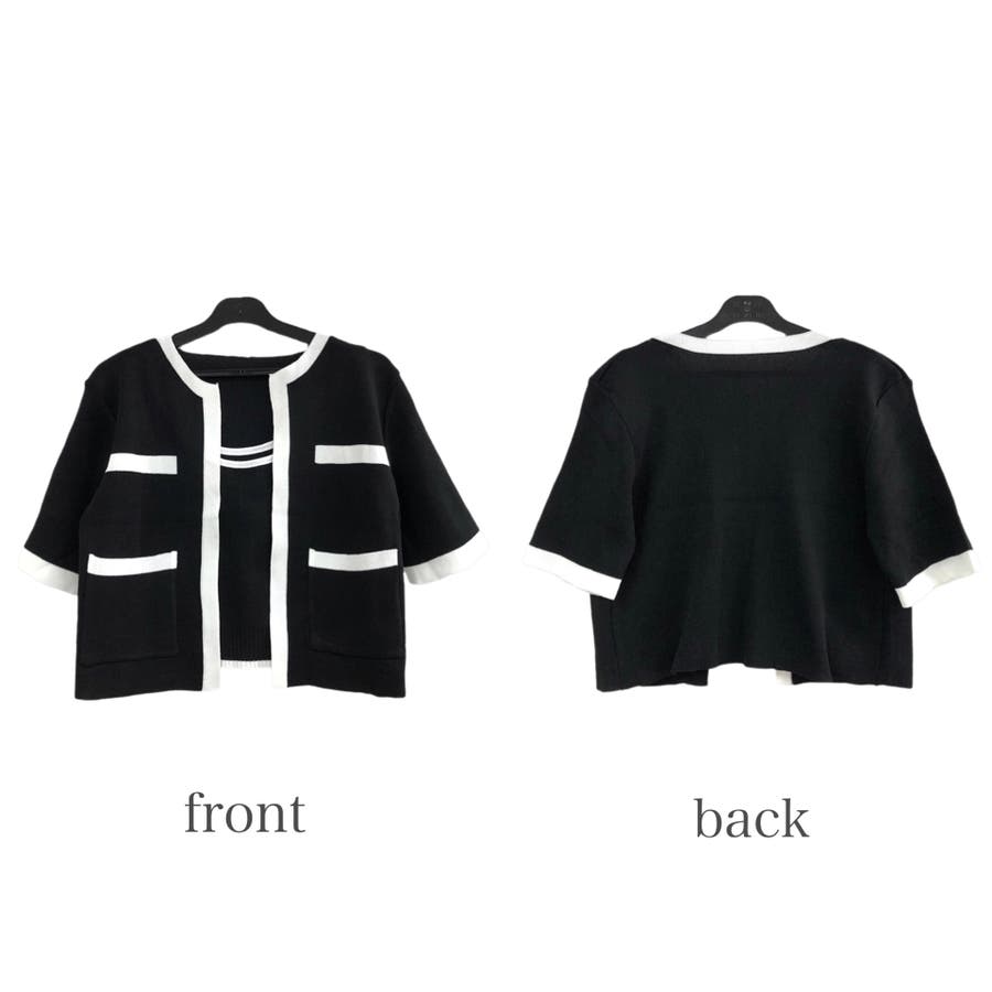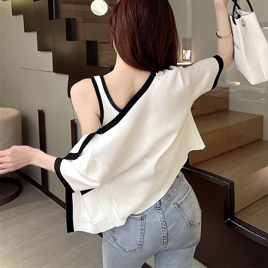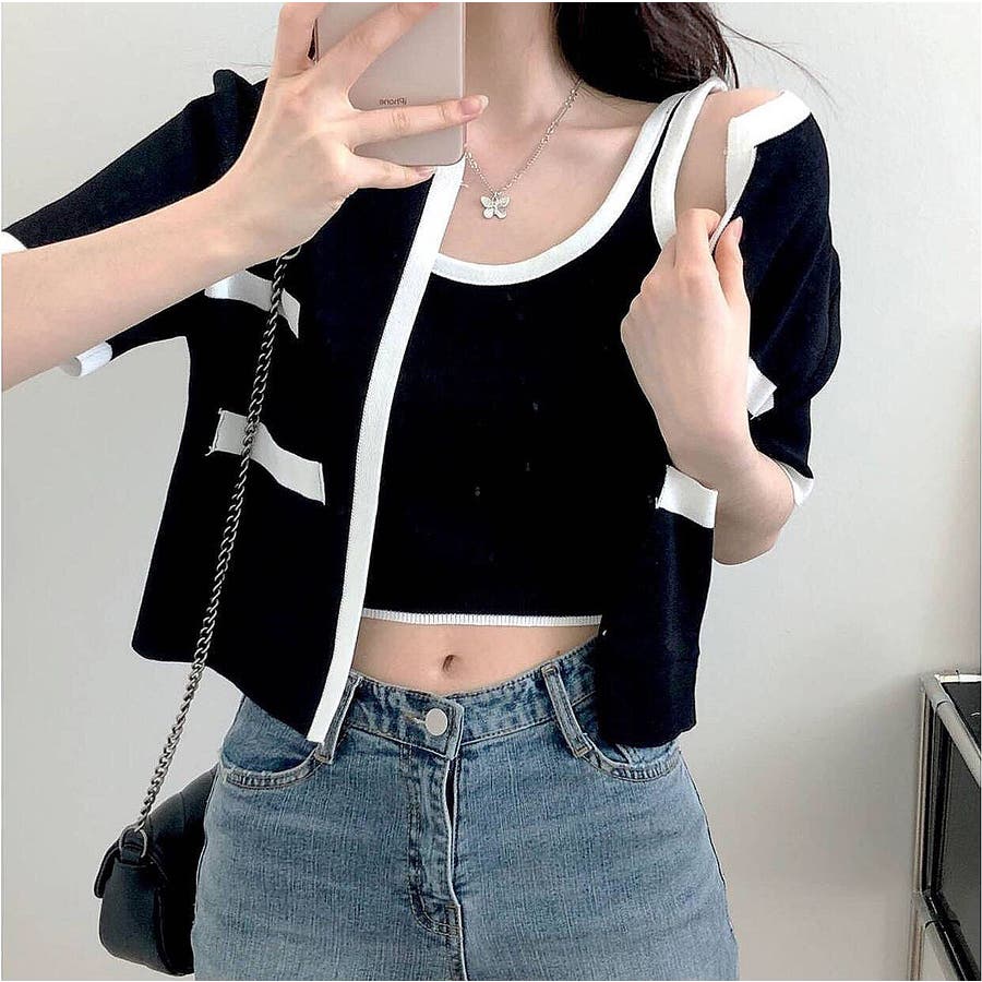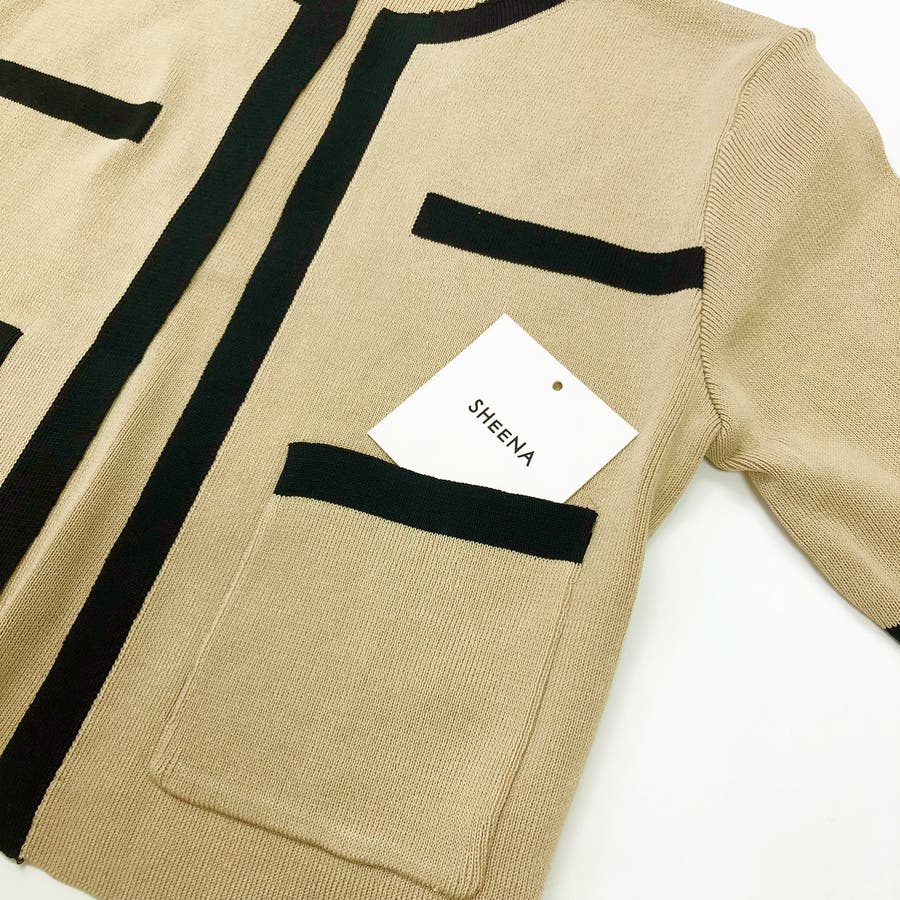 【ベージュ】バイカラー半袖サマーニットアンサンブル 夏 韓国