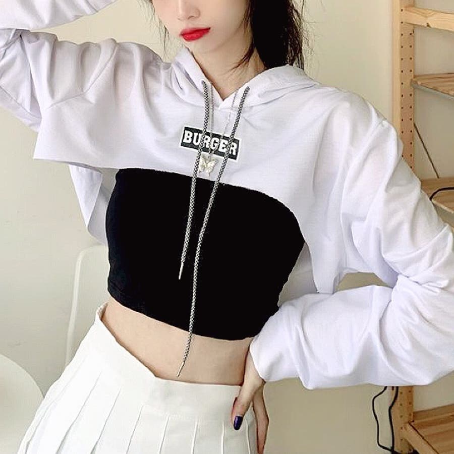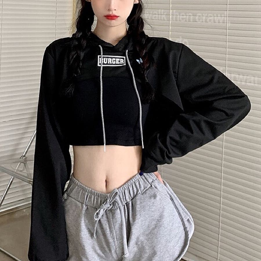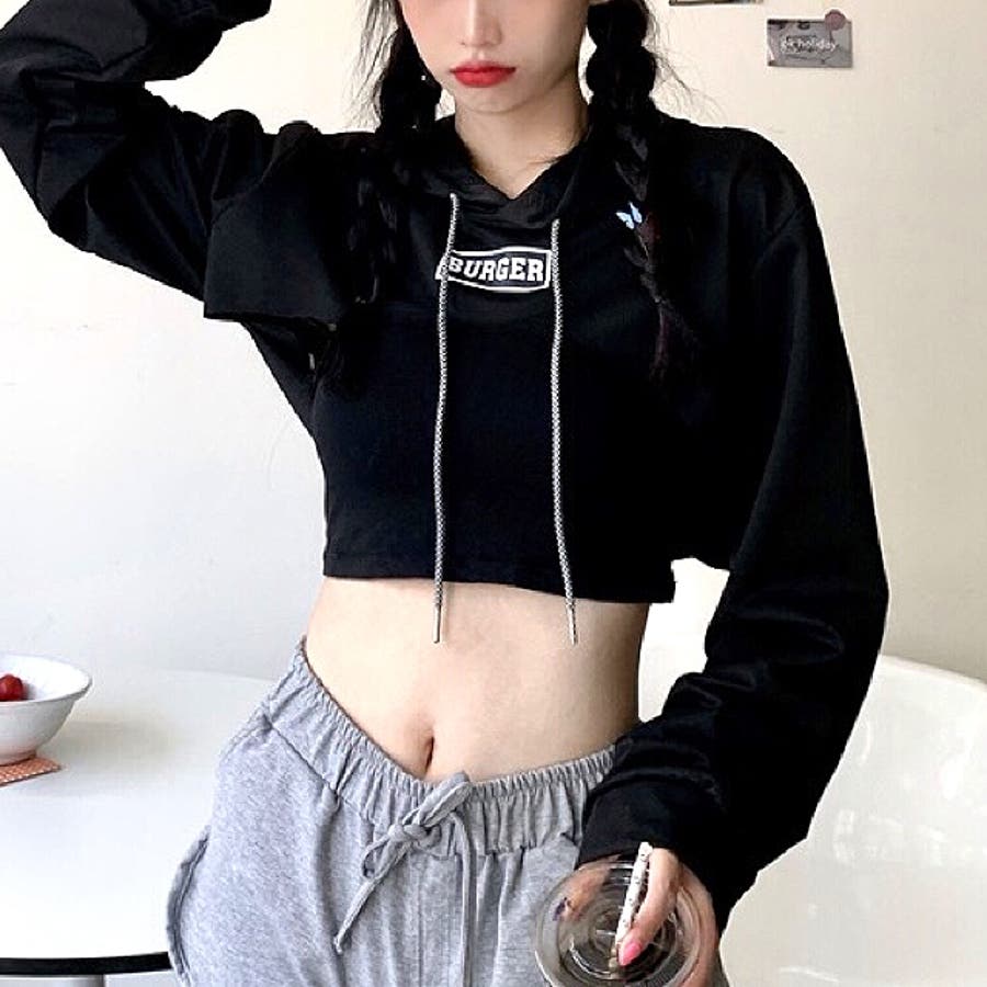 スーパーショートロゴプリントパーカー 春 秋