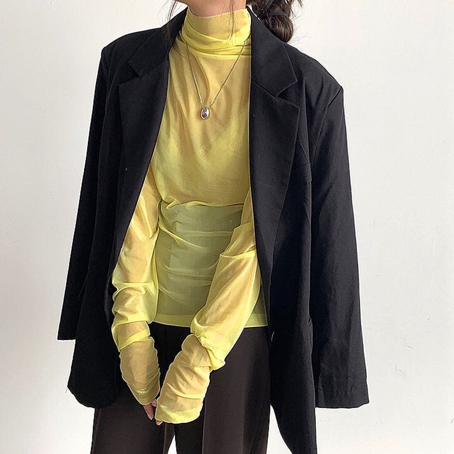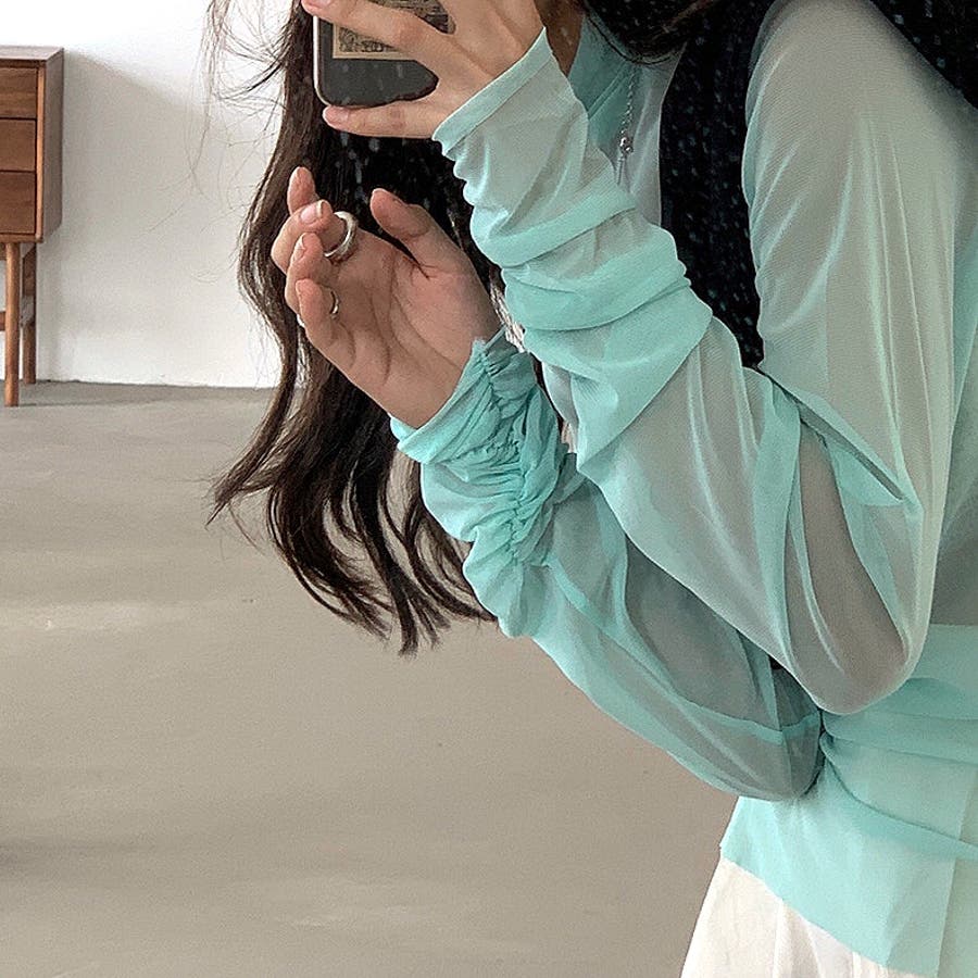 投稿日:2024.02.25シースルーのトップスを探していてとても可愛いのが見つかりました。袖のギャザーもすごく可愛くて、長さもちょうど良くたくさん着ようと思います