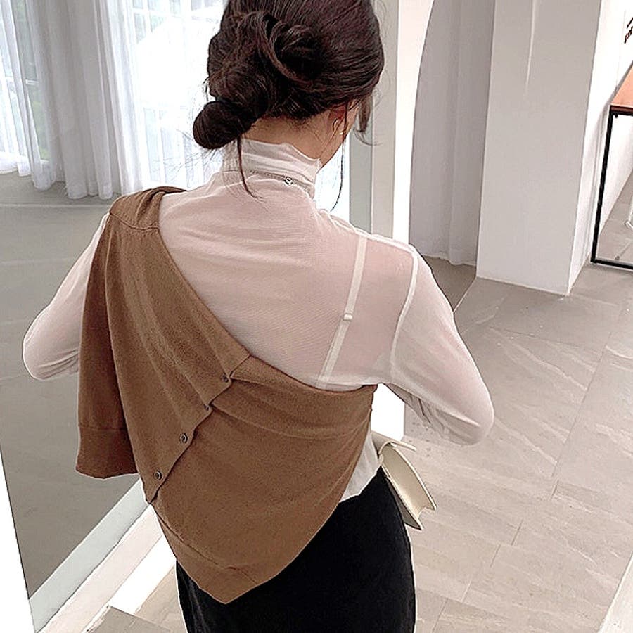 投稿日:2024.04.11首元が少しきつい感じがあるので気持ちもう少し緩い方が好きですが、デザインも透け感もシルエットも最高です。