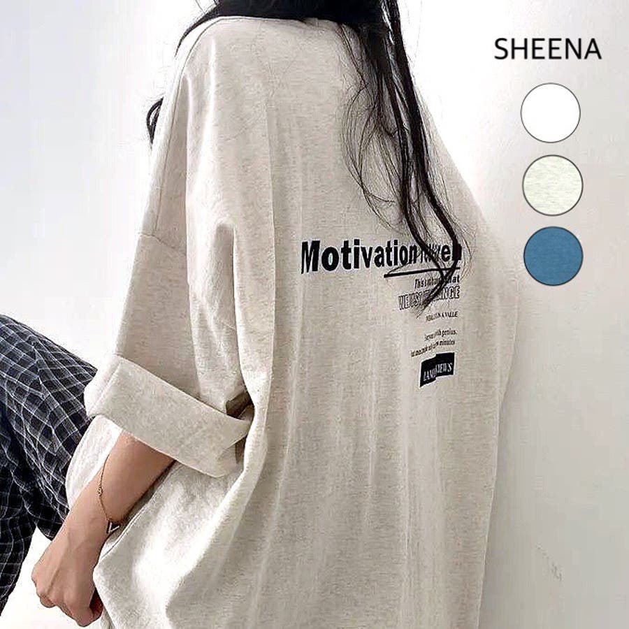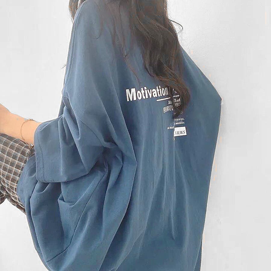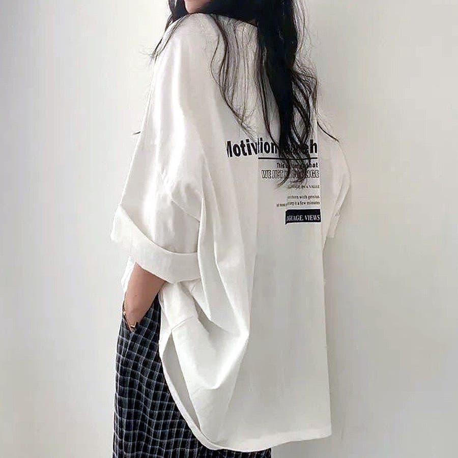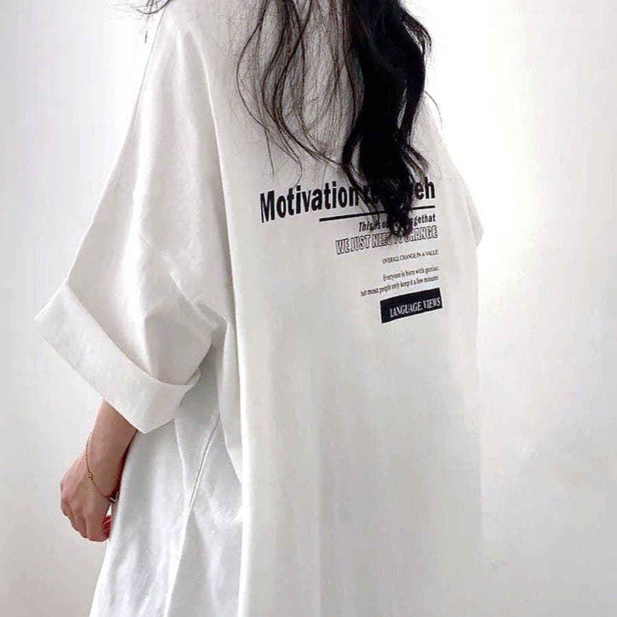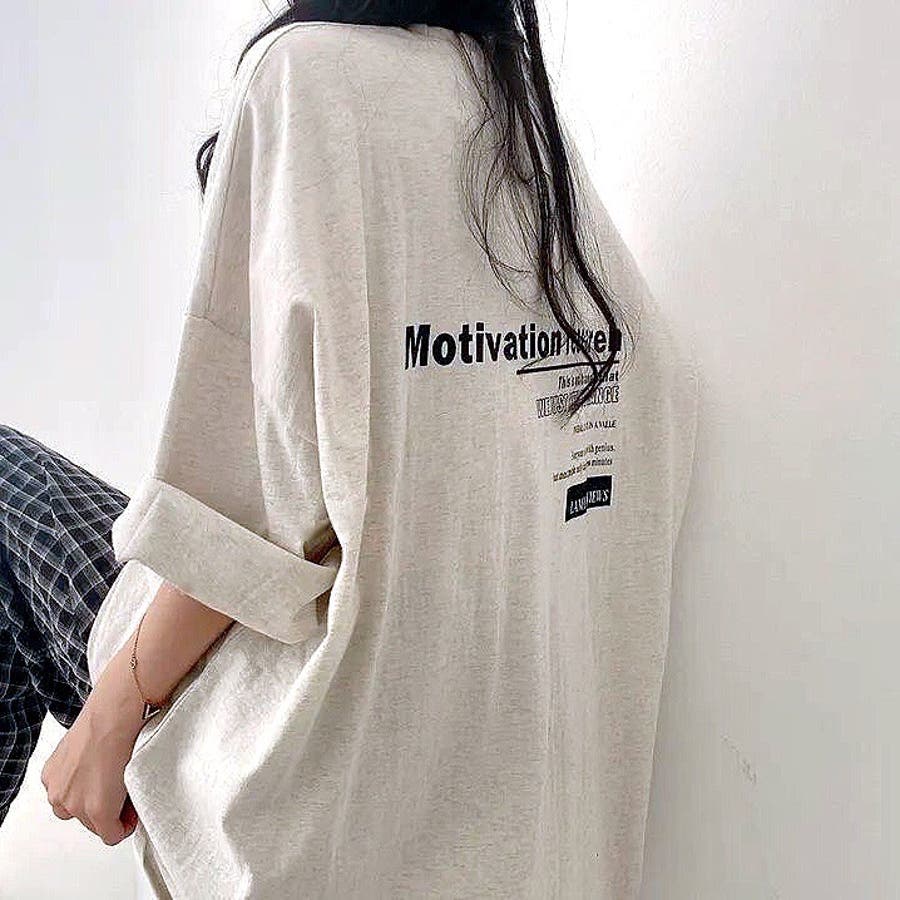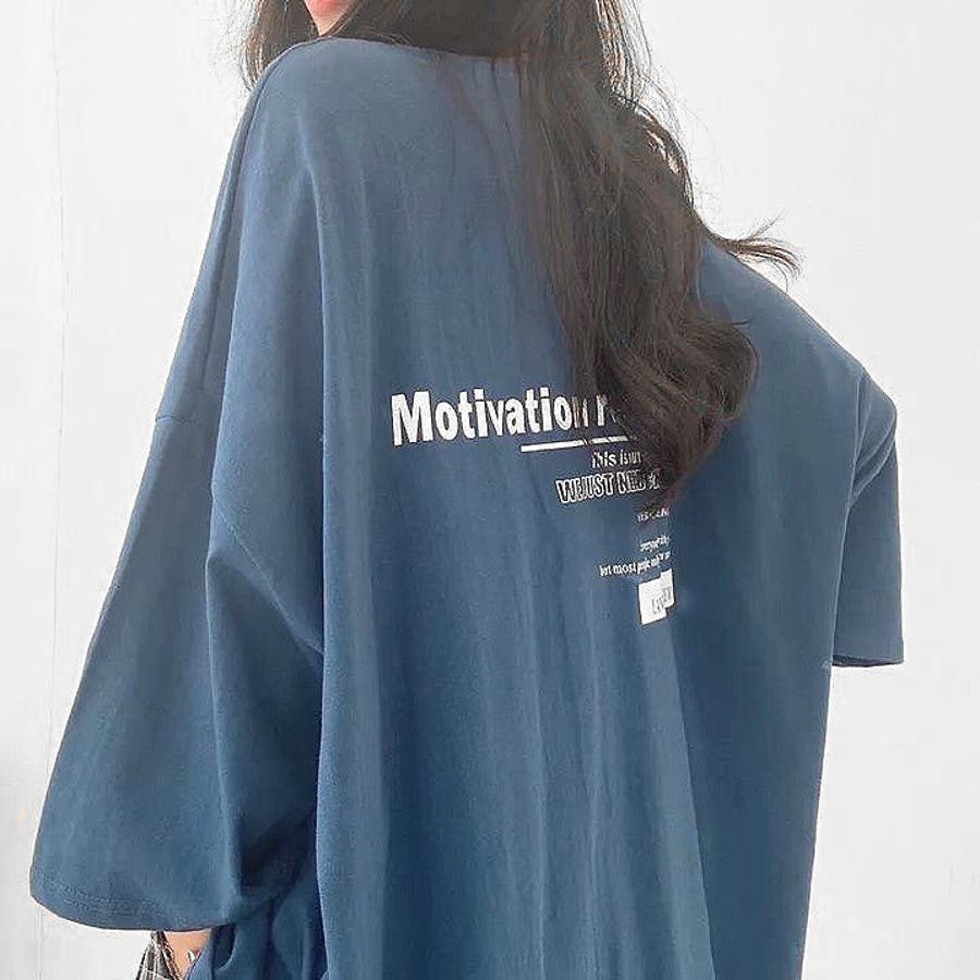 MotivationロゴプリントオーバーサイズTシャツ 春 夏