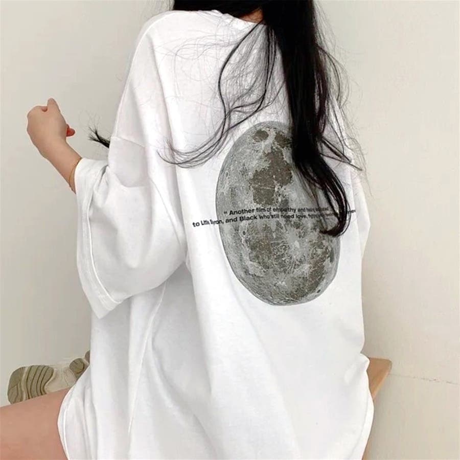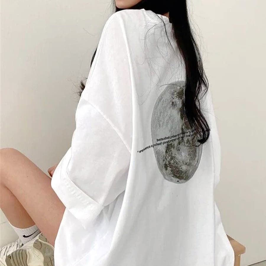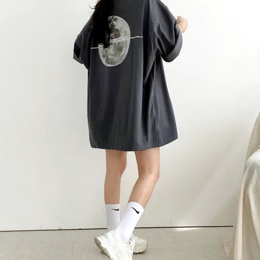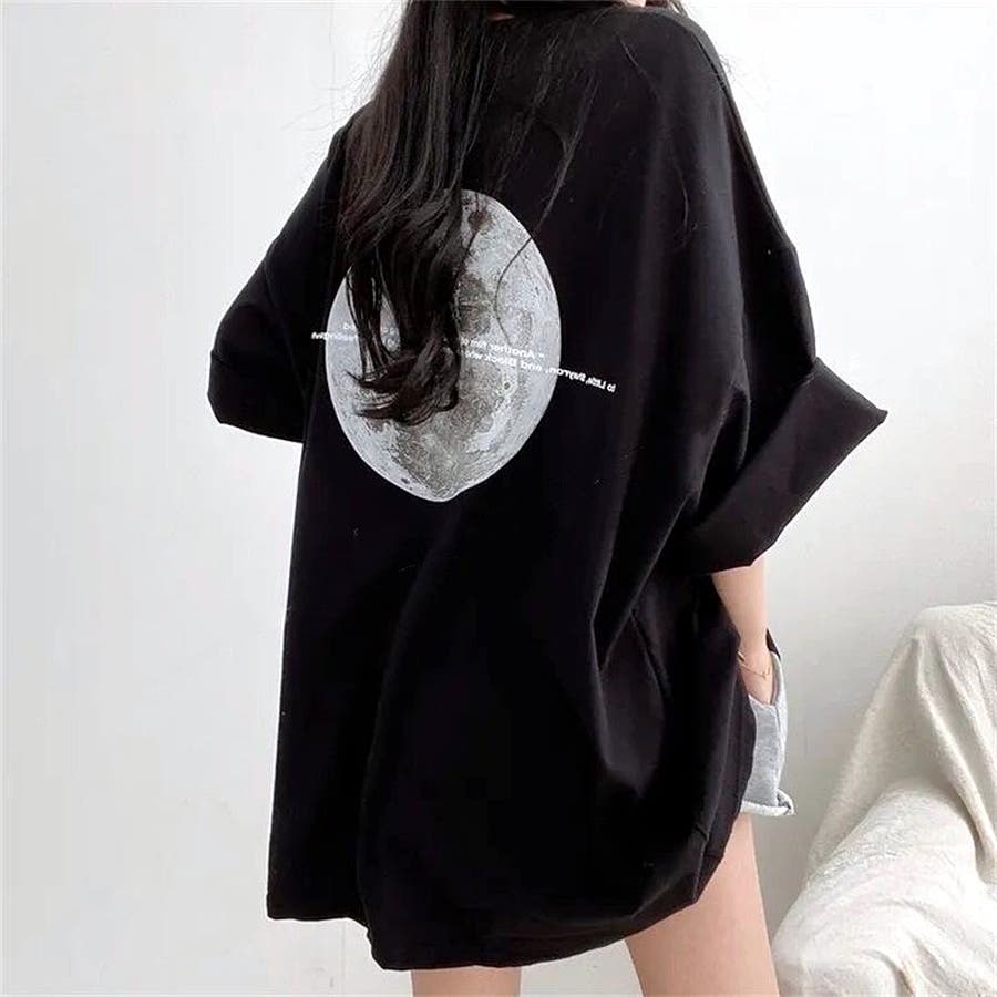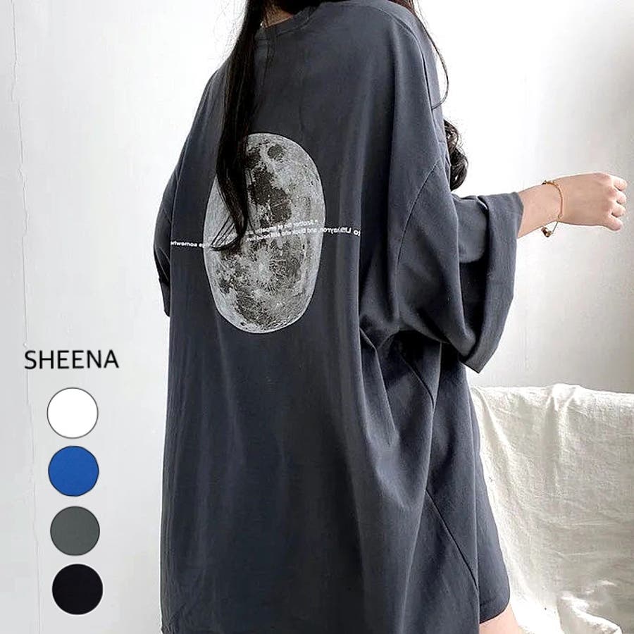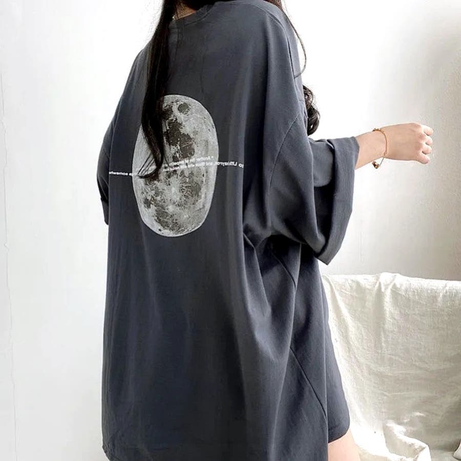 フルムーンプリントオーバーサイズTシャツ 春 夏