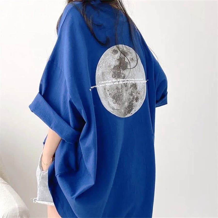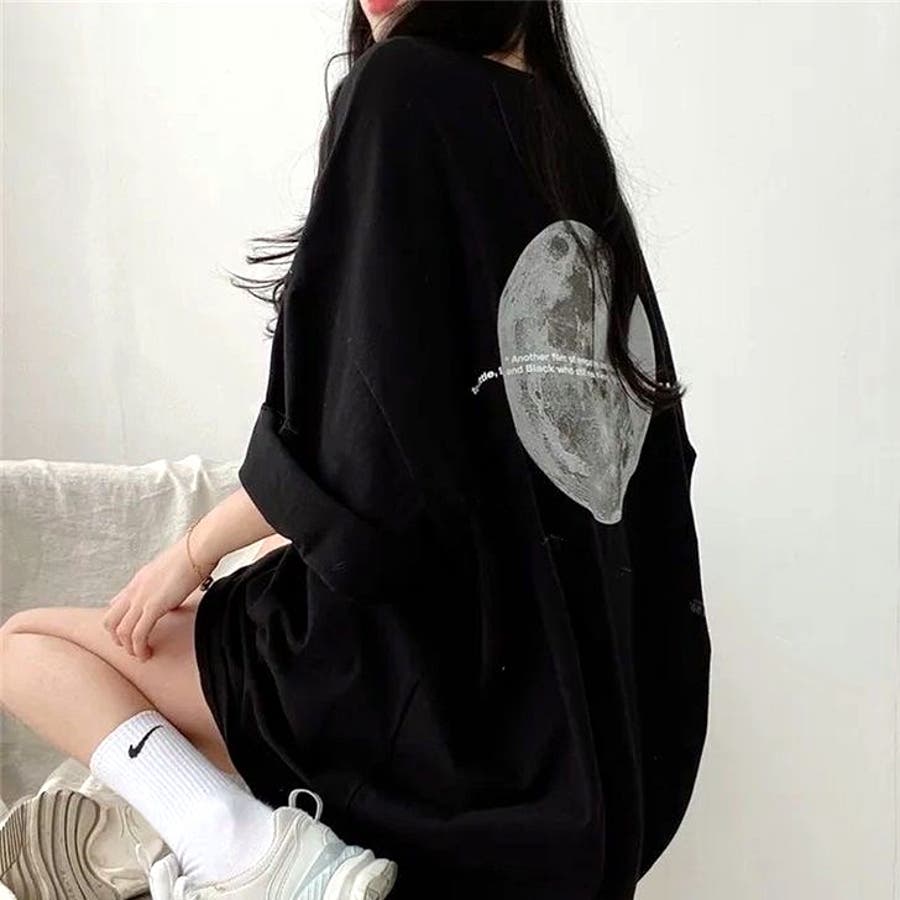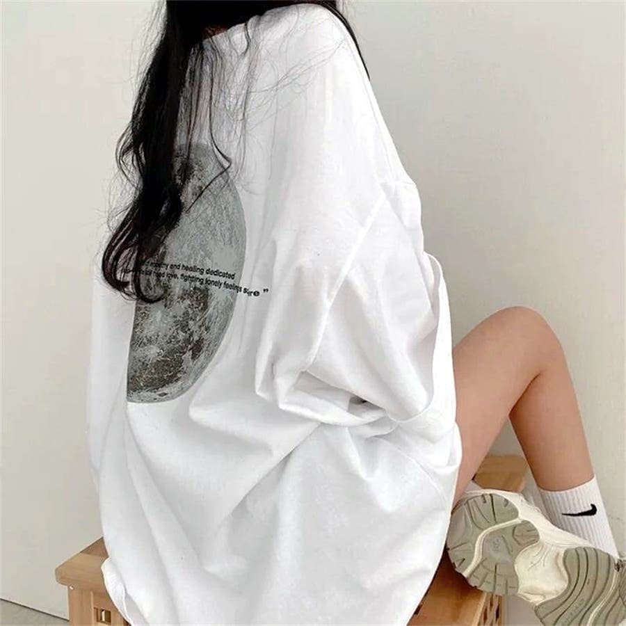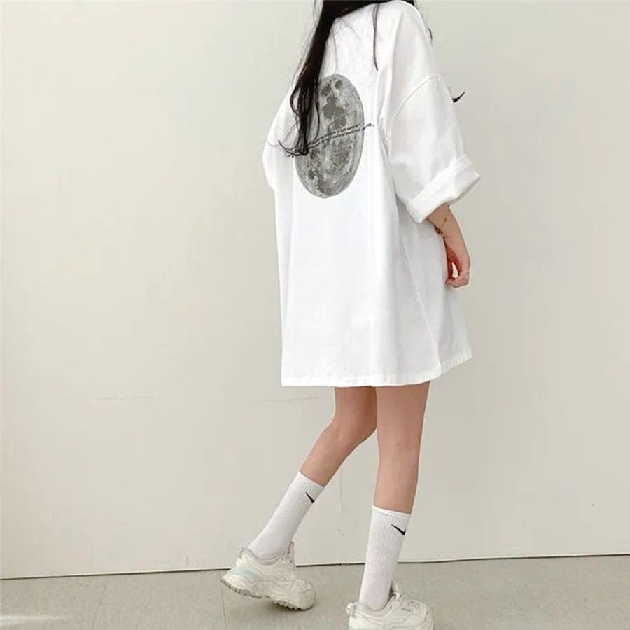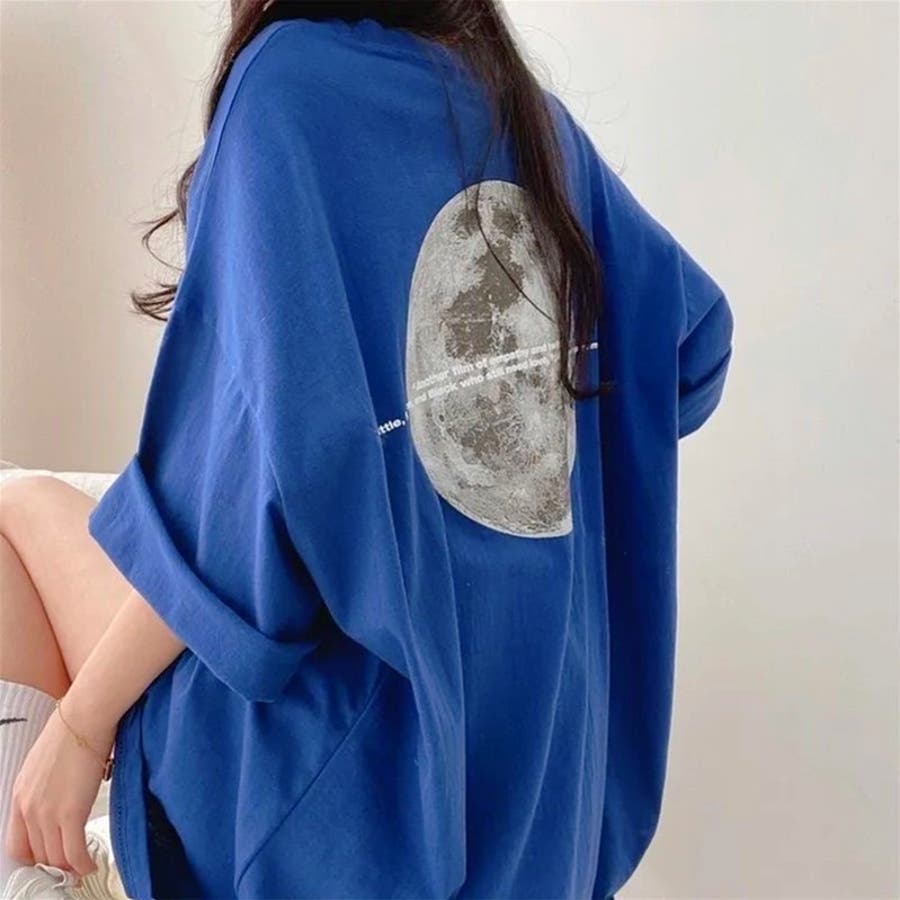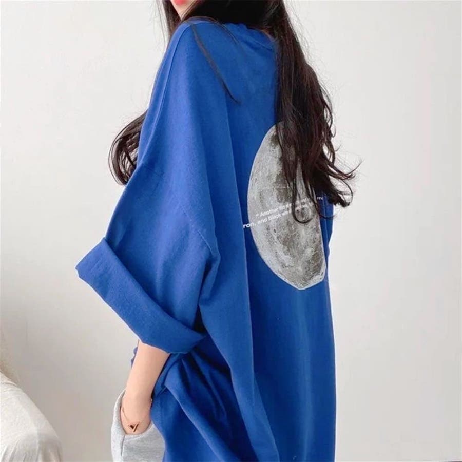 フルムーンプリントオーバーサイズTシャツ 春 夏