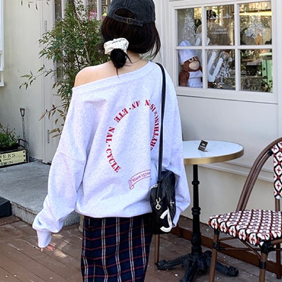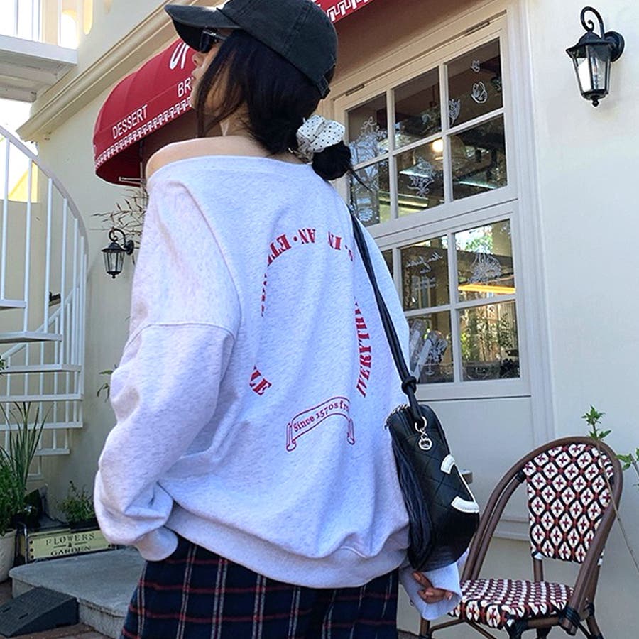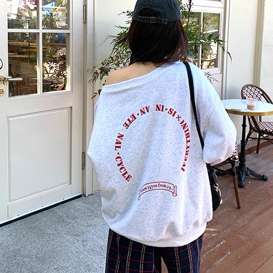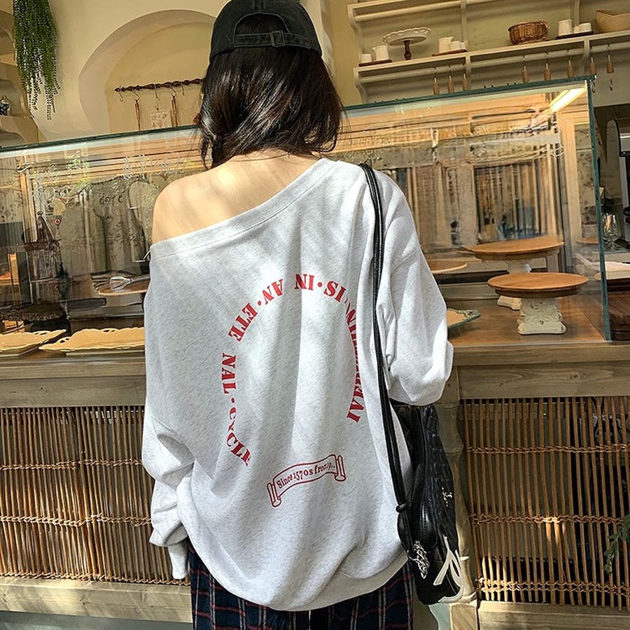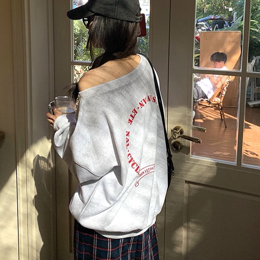 バックサークルロゴプリントオフショルダースウェットトレーナー 春 秋