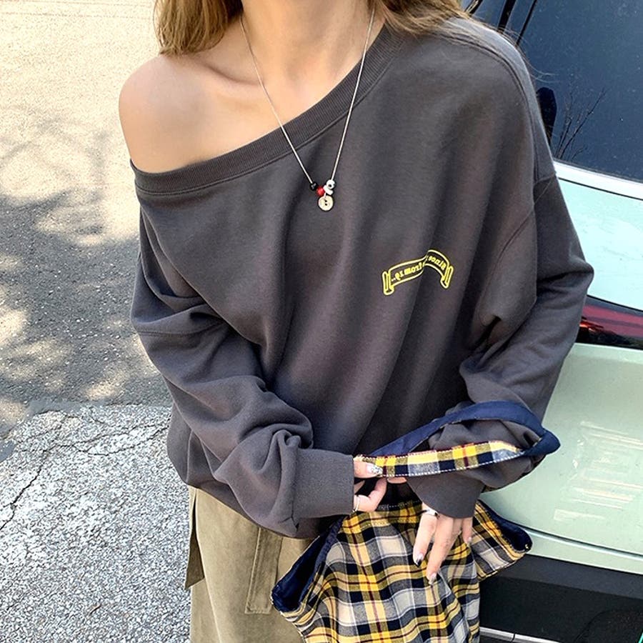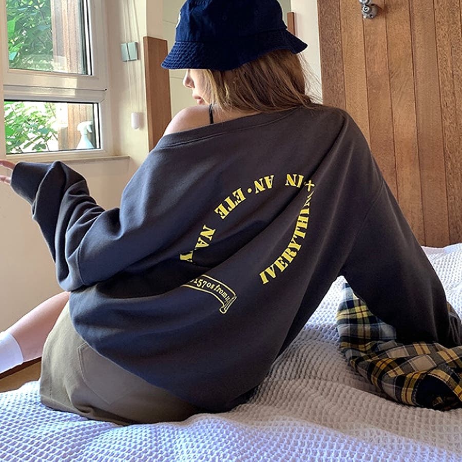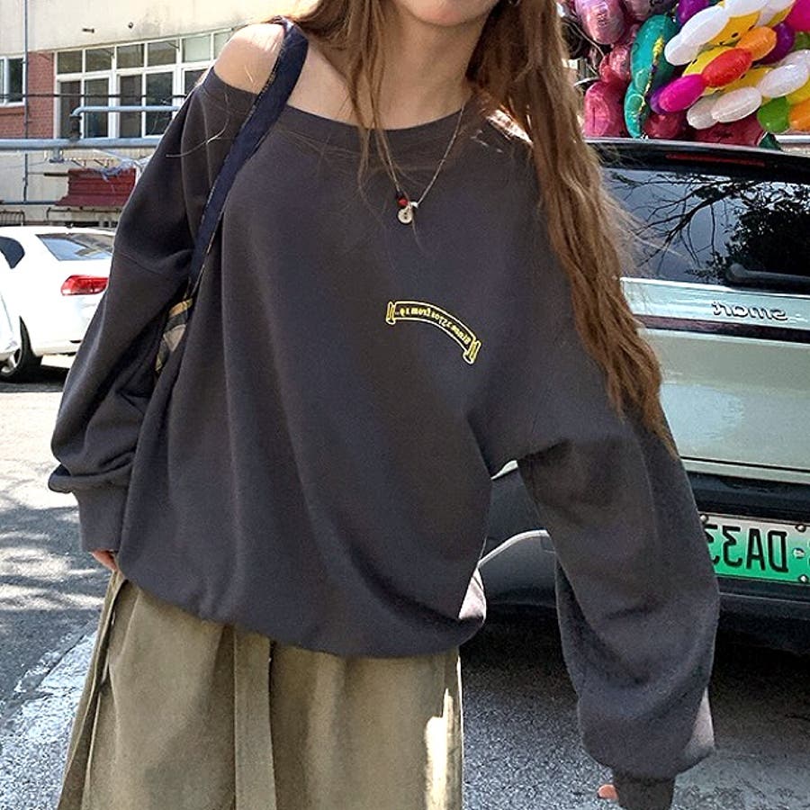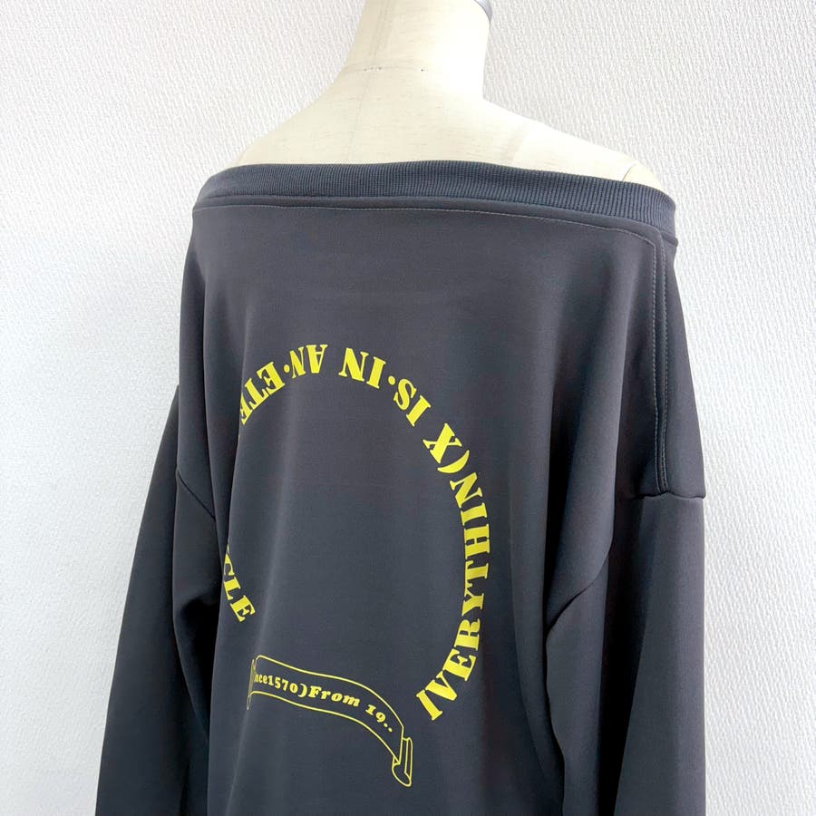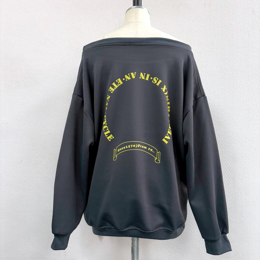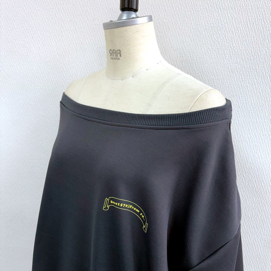バックサークルロゴプリントオフショルダースウェットトレーナー 春 秋
