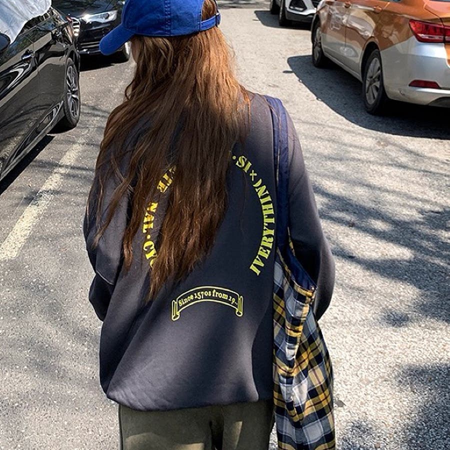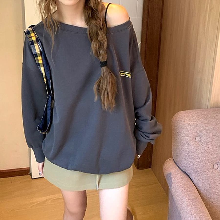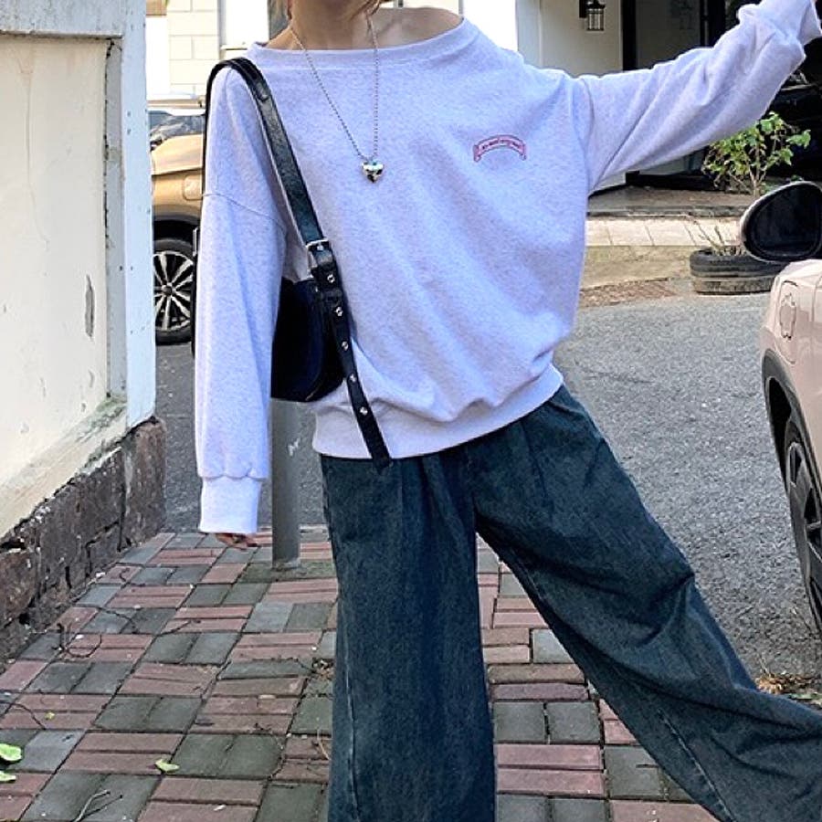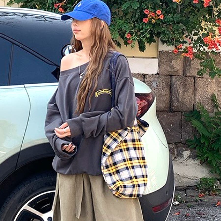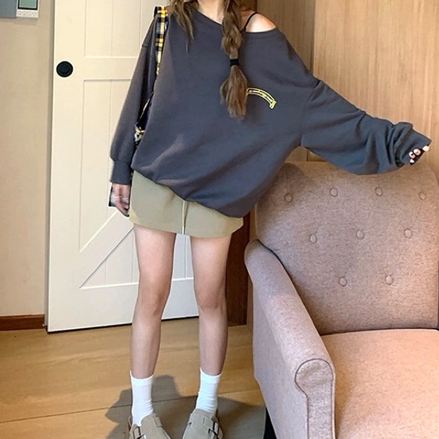 バックサークルロゴプリントオフショルダースウェットトレーナー 春 秋