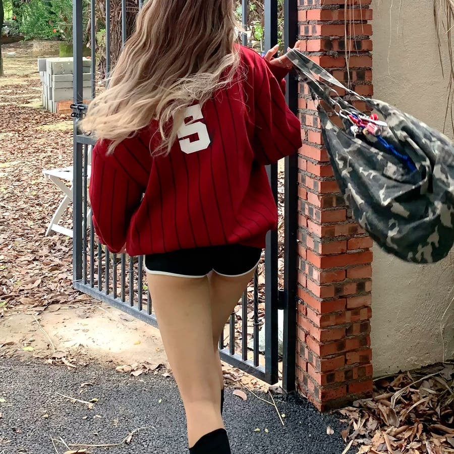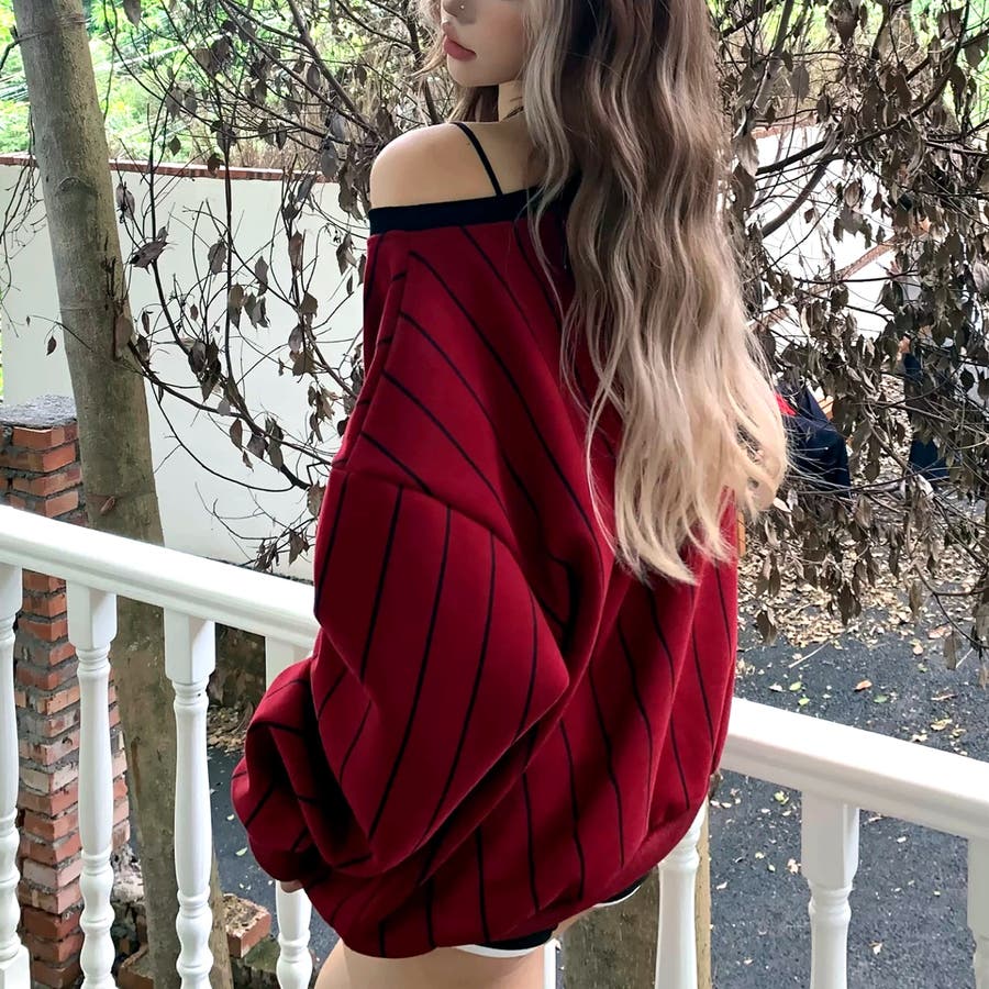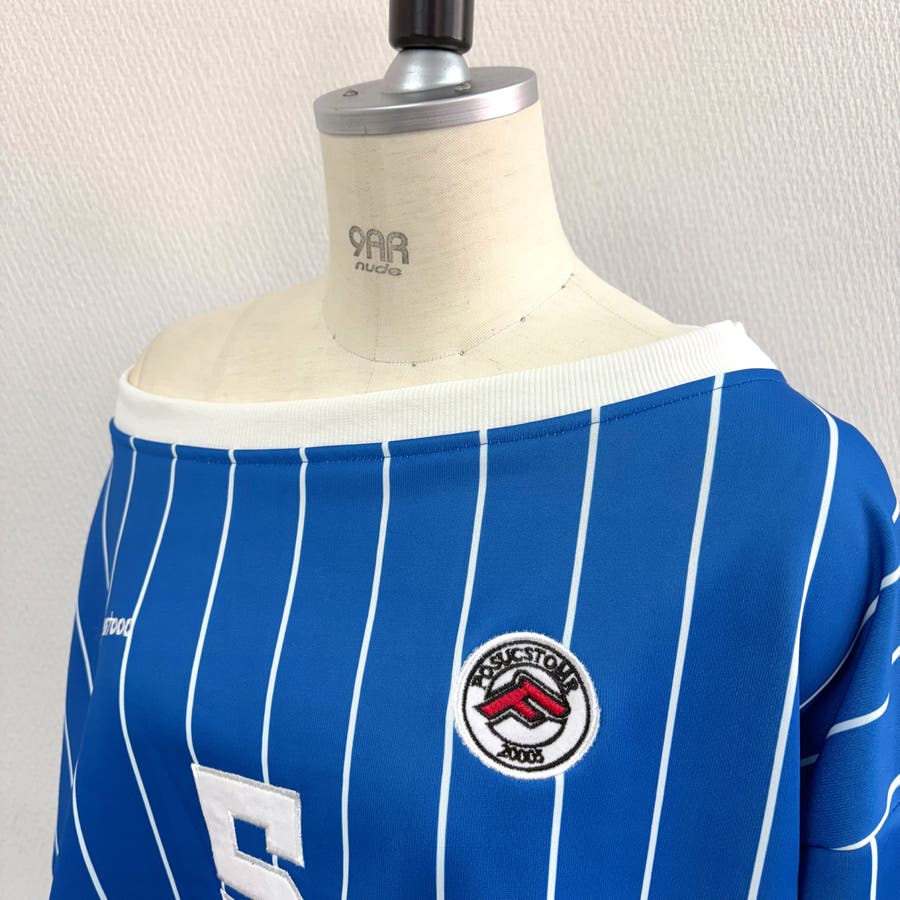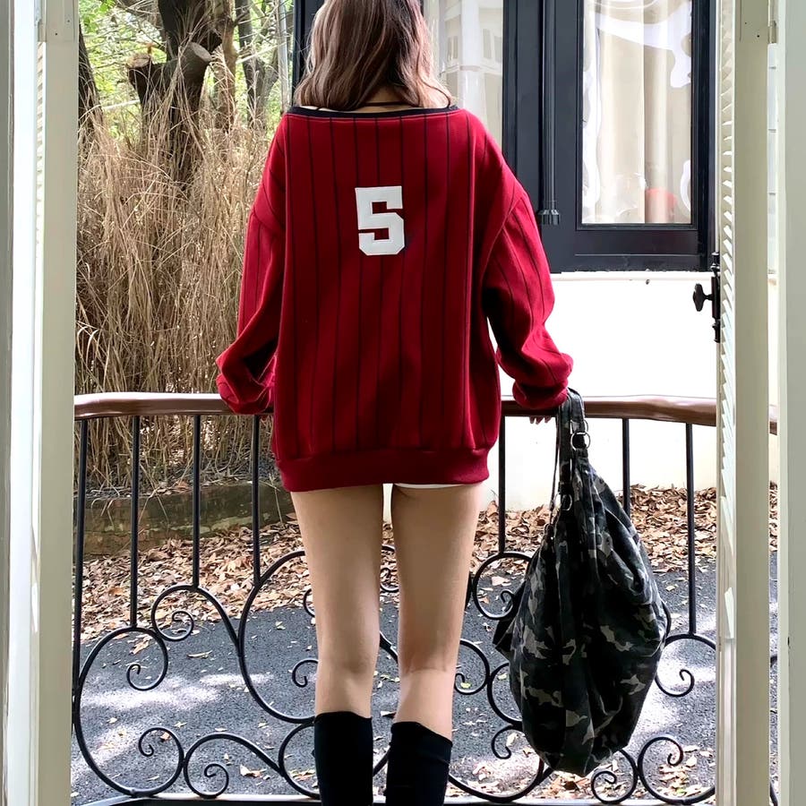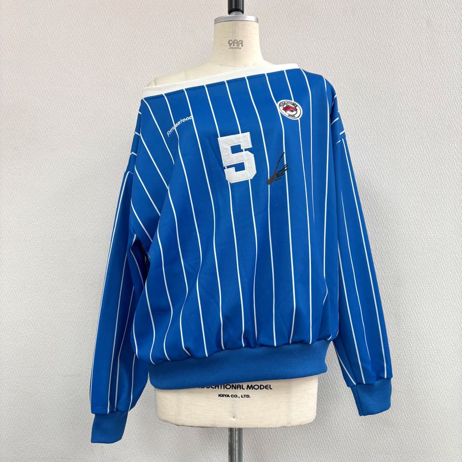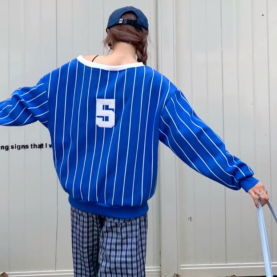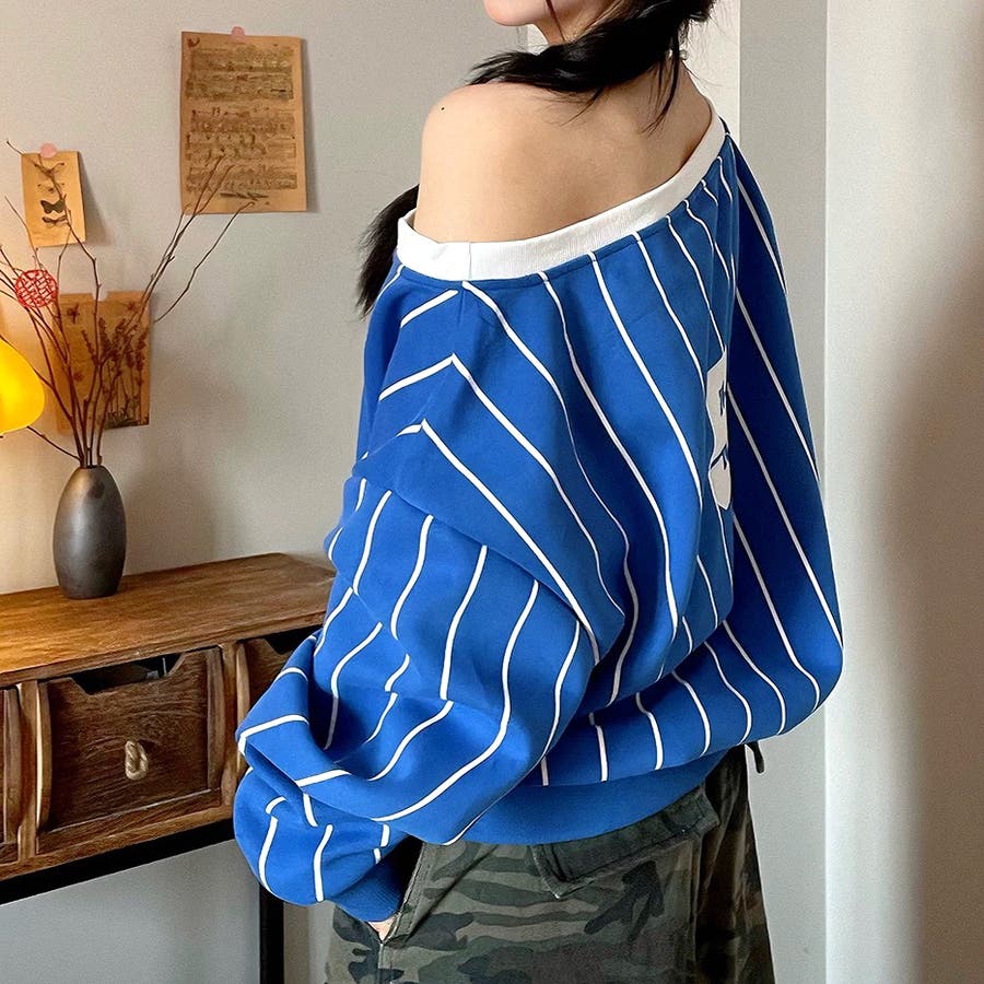 ピンストライプワンショルダーゲームシャツトレーナー 春 秋