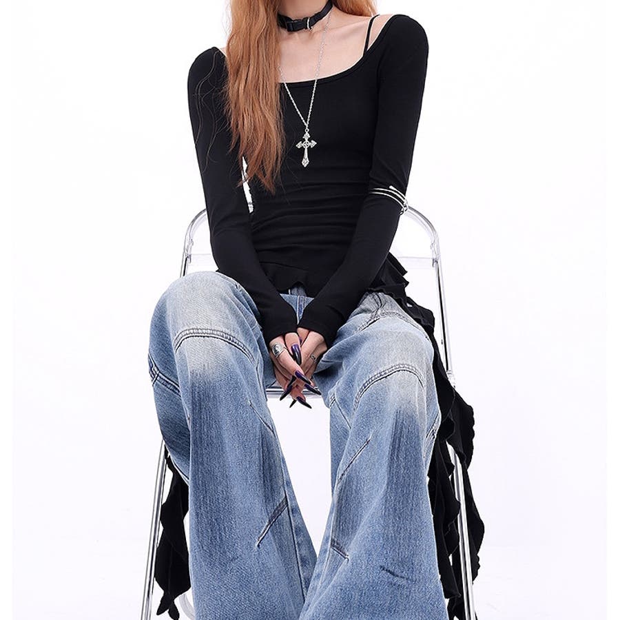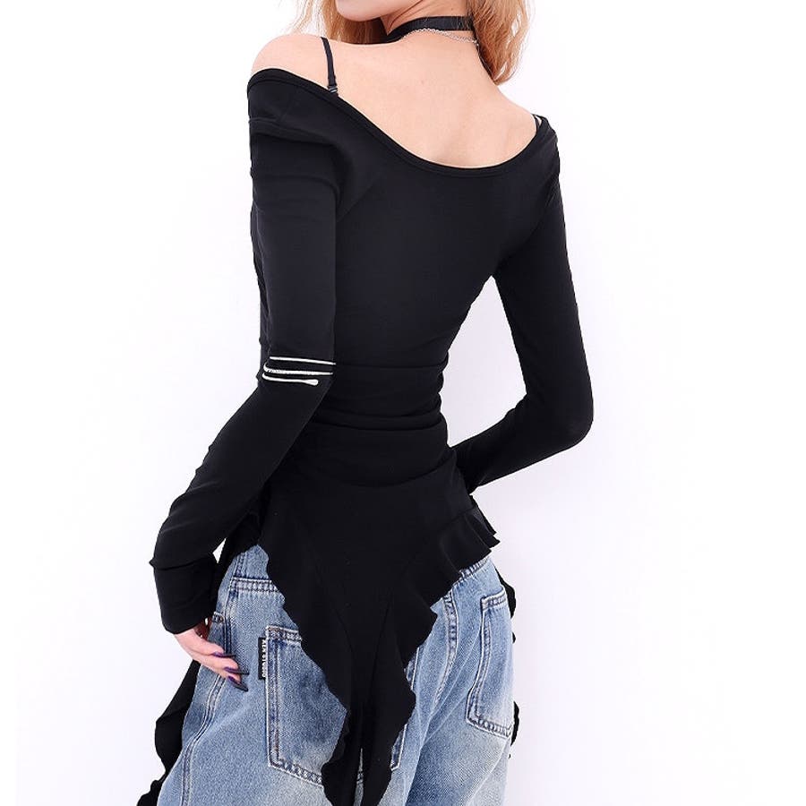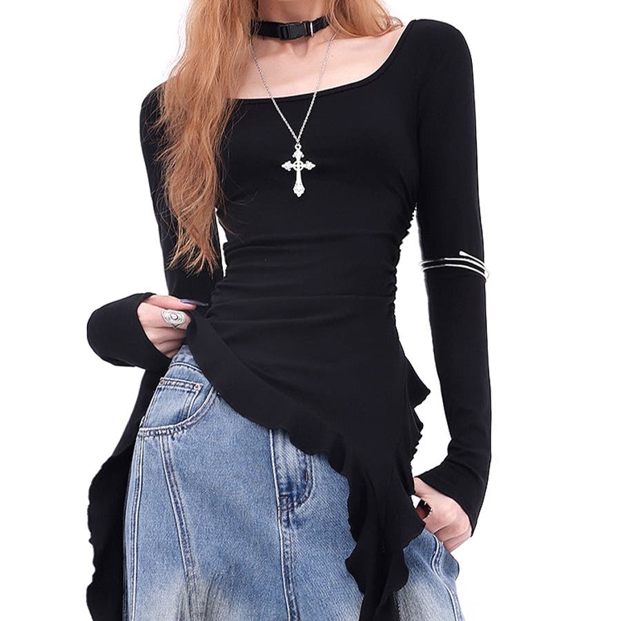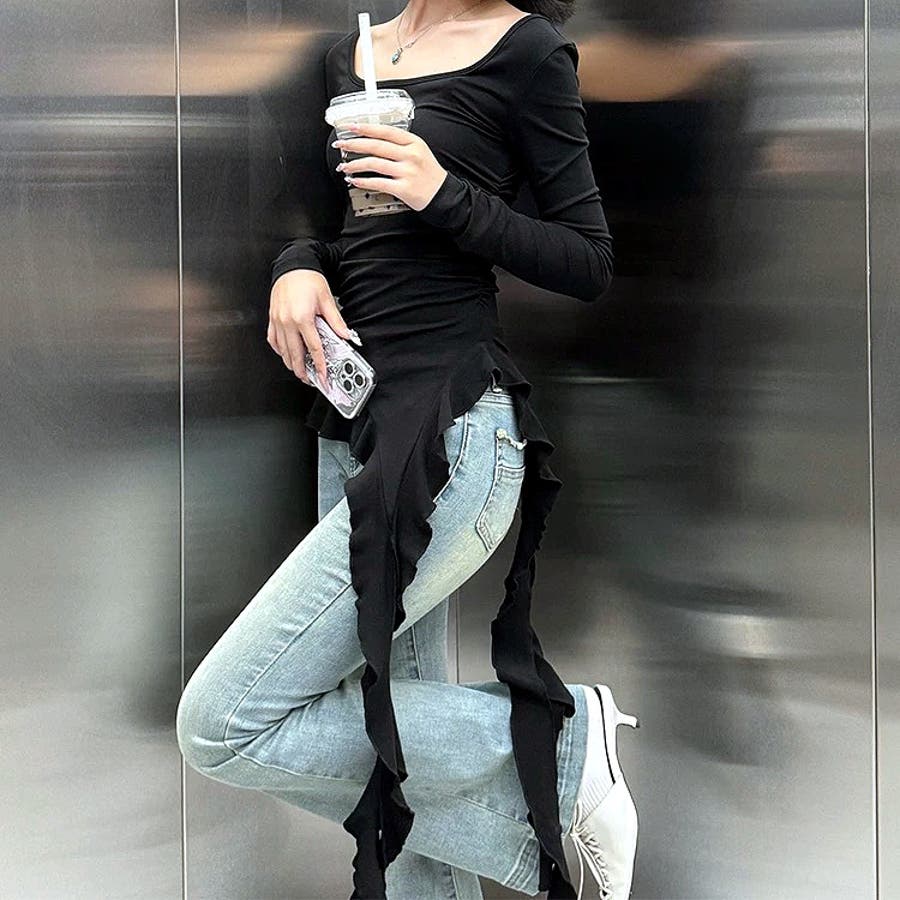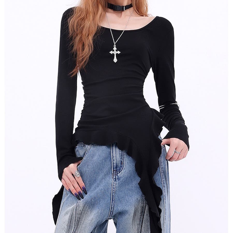 イレギュラーヘムフリルテレコトップス 春 秋