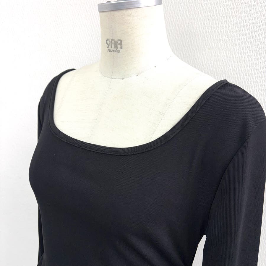抜け感のあるスクエアネックはネックレスやチョーカーなどのアクセサリーと相性ばっちり。