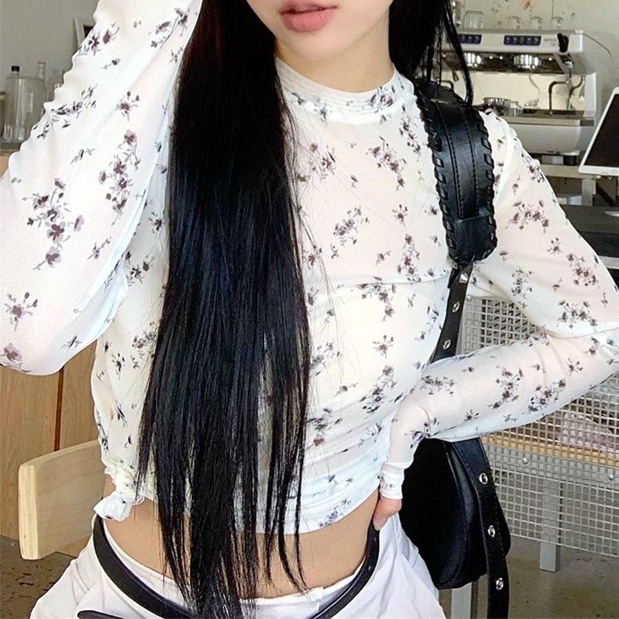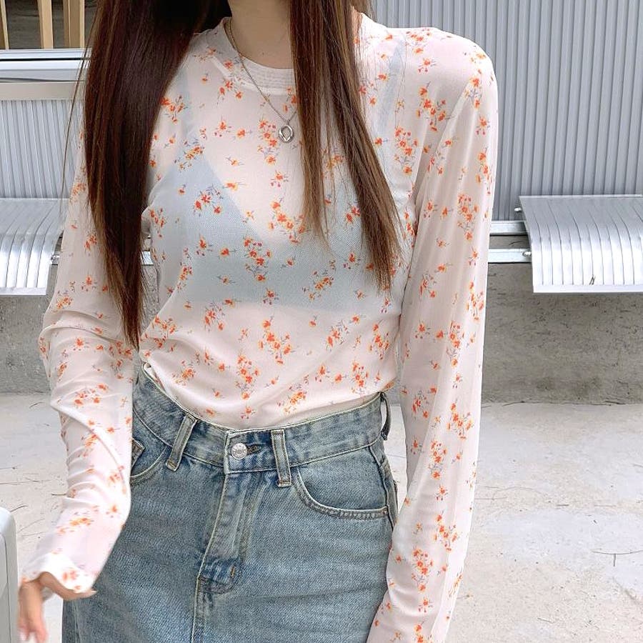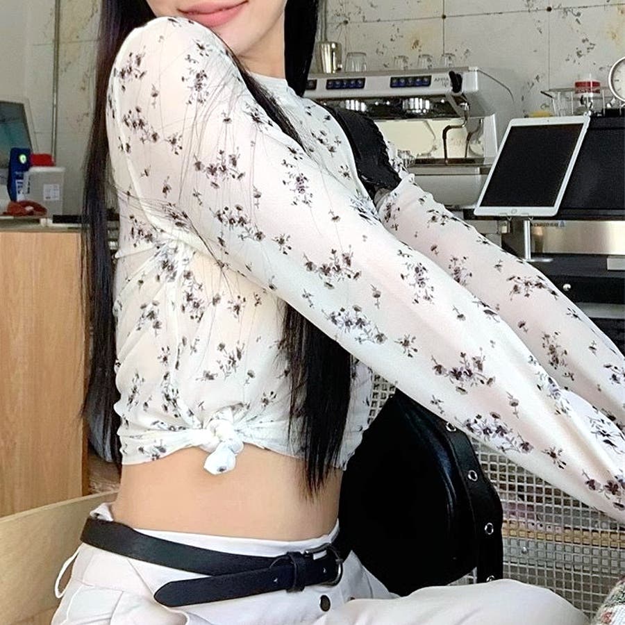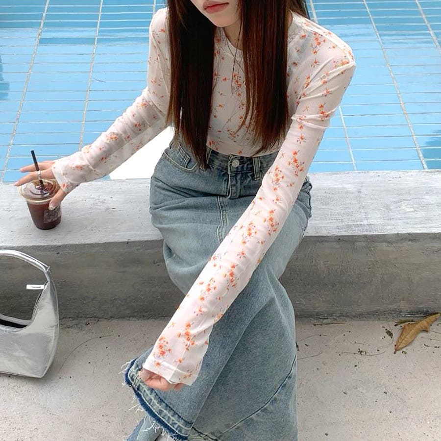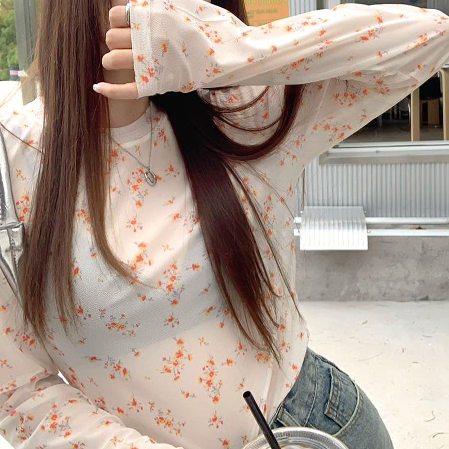 春夏新作 春 夏 秋 長袖 シアー レイヤード 花柄 小花柄 ミニフラワー ストレッチ カジュアル ストリート スポーティー 韓国 韓国ファッション トレンド OL 主婦 きれいめ 学生 ギャル Y2K 海外ガール シティガール 着回し シンプル 10代 20代 30代 40代 50代