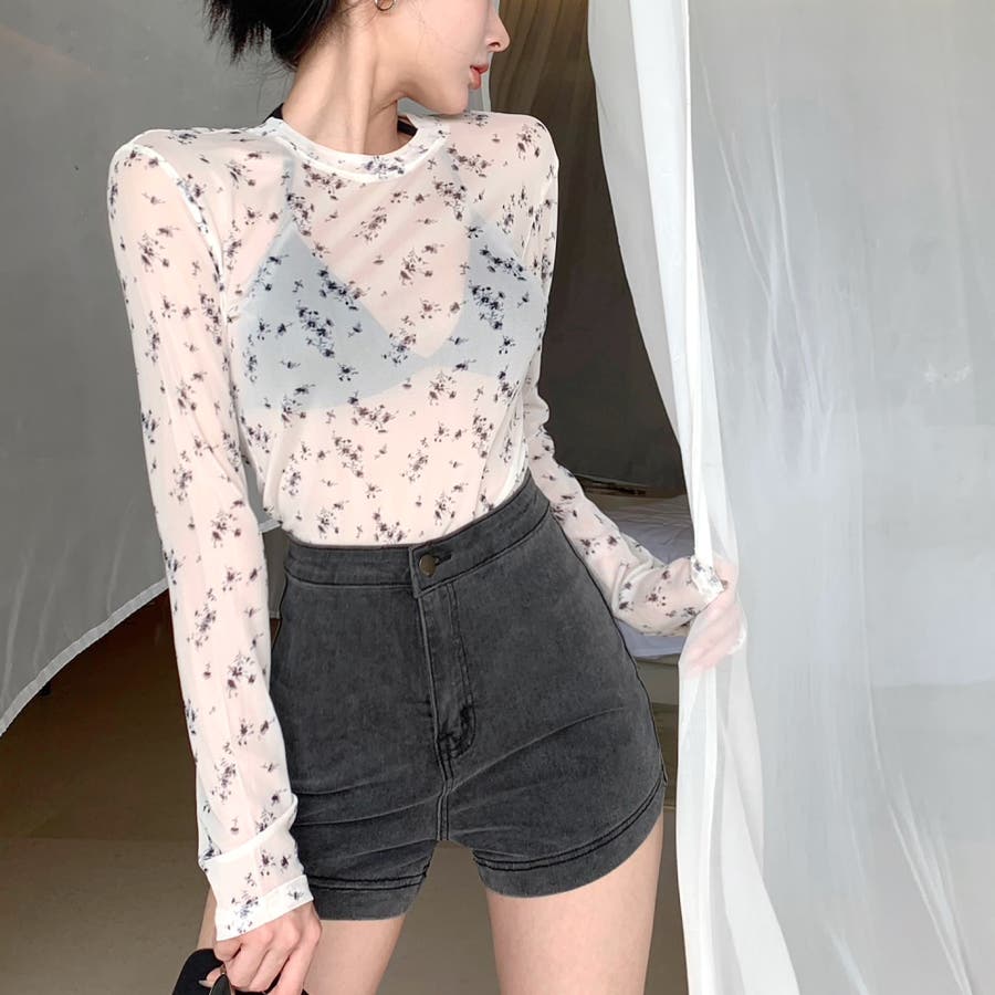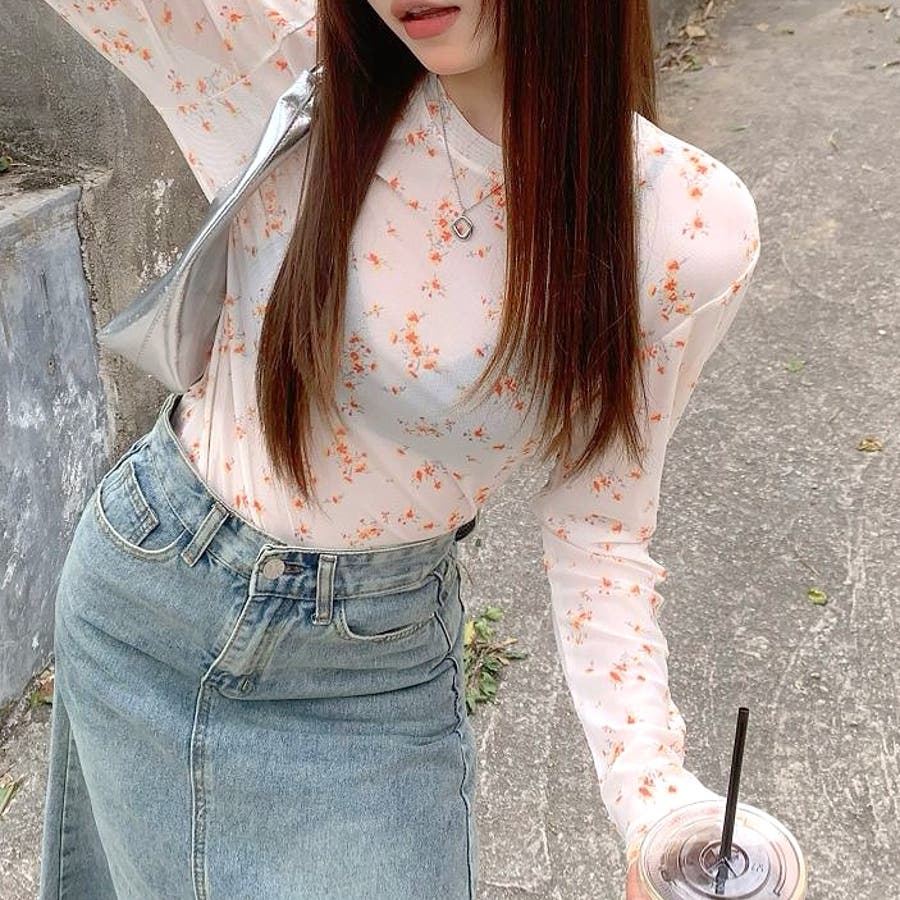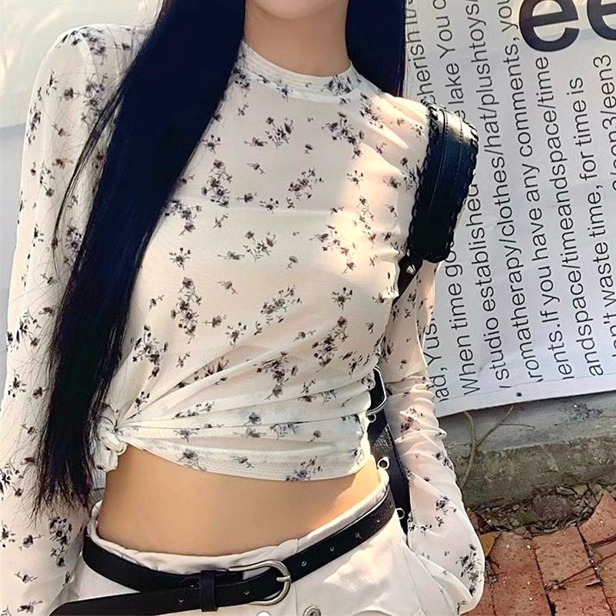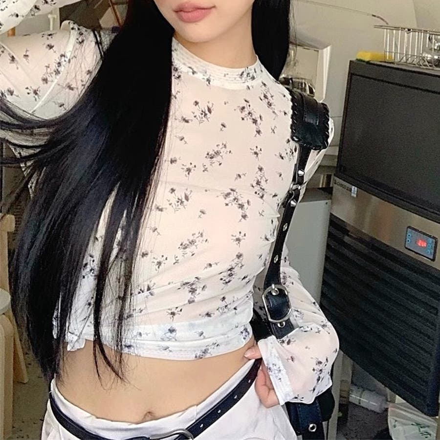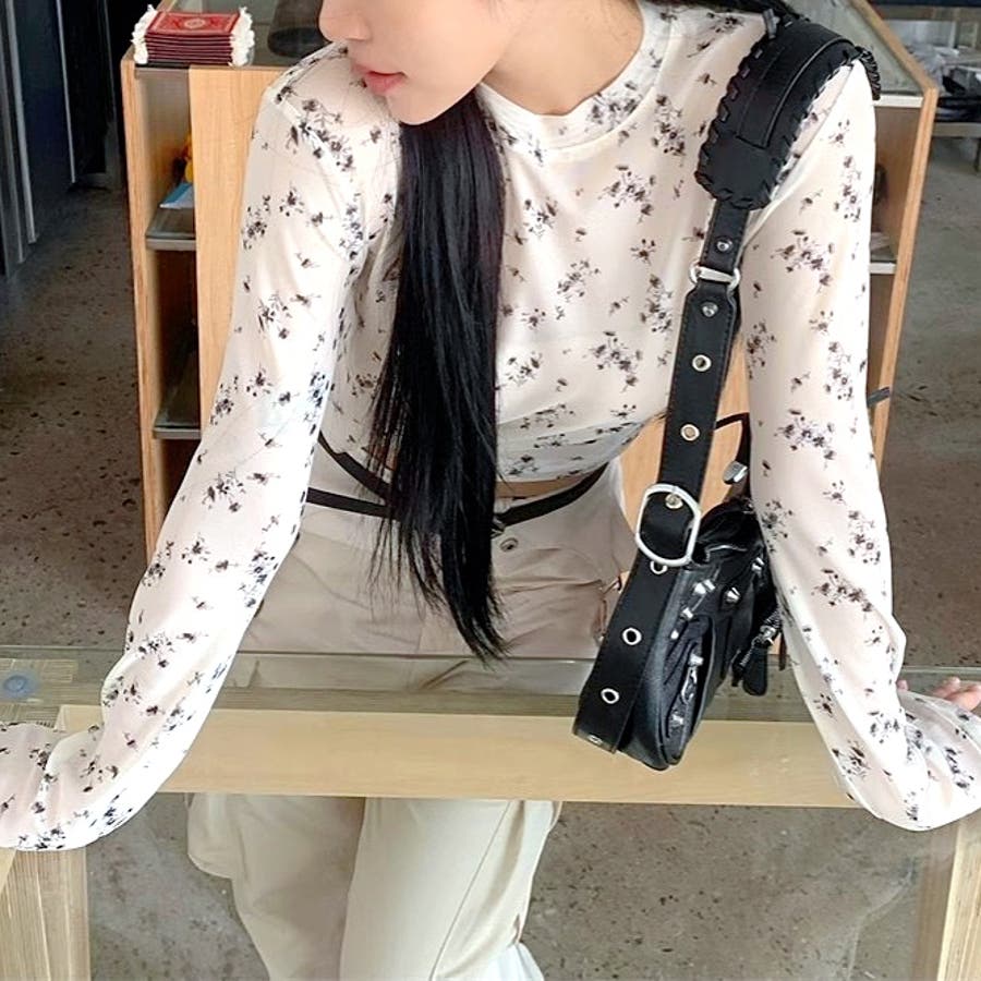 春夏新作 春 夏 秋 長袖 シアー レイヤード 花柄 小花柄 ミニフラワー ストレッチ カジュアル ストリート スポーティー 韓国 韓国ファッション トレンド OL 主婦 きれいめ 学生 ギャル Y2K 海外ガール シティガール 着回し シンプル 10代 20代 30代 40代 50代