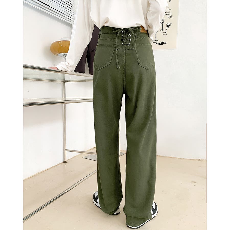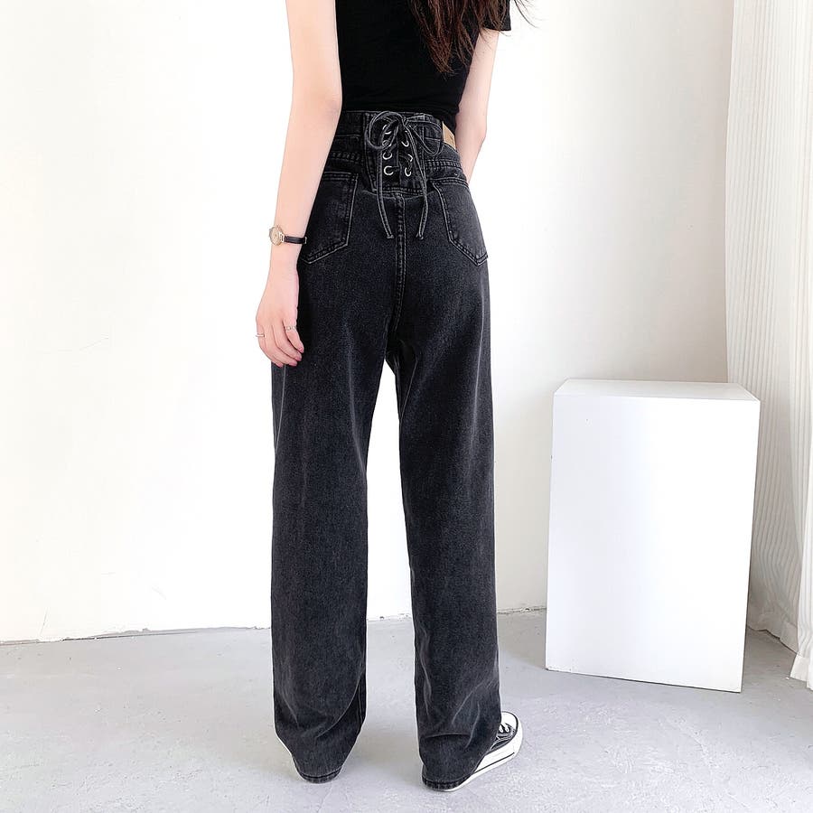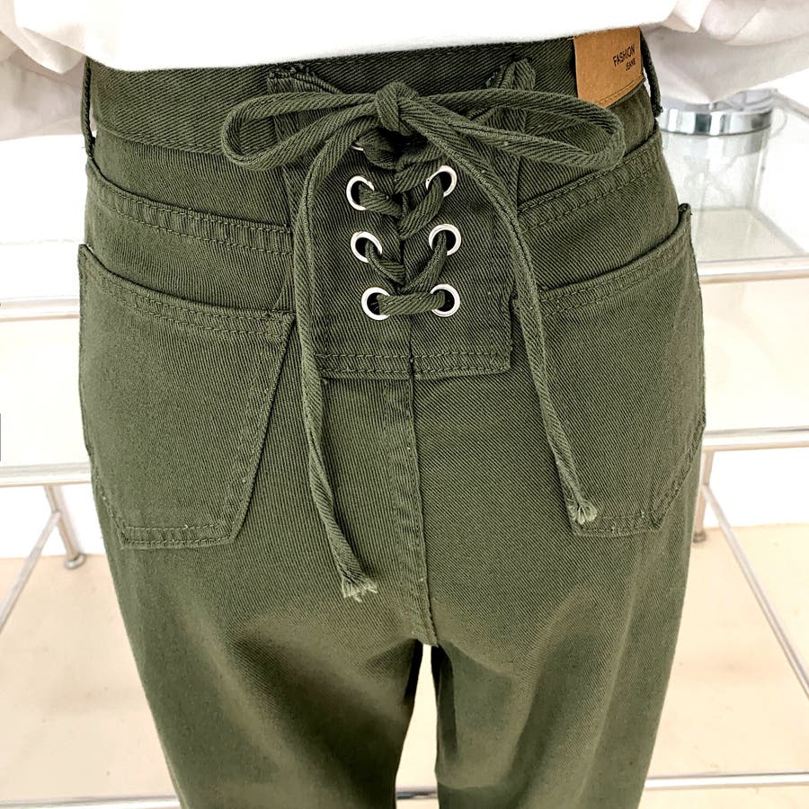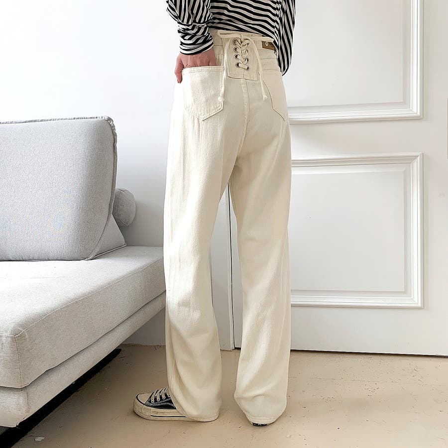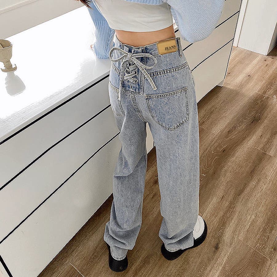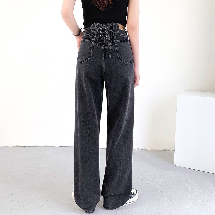 バックレースアップデニムワイドパンツ 春 夏