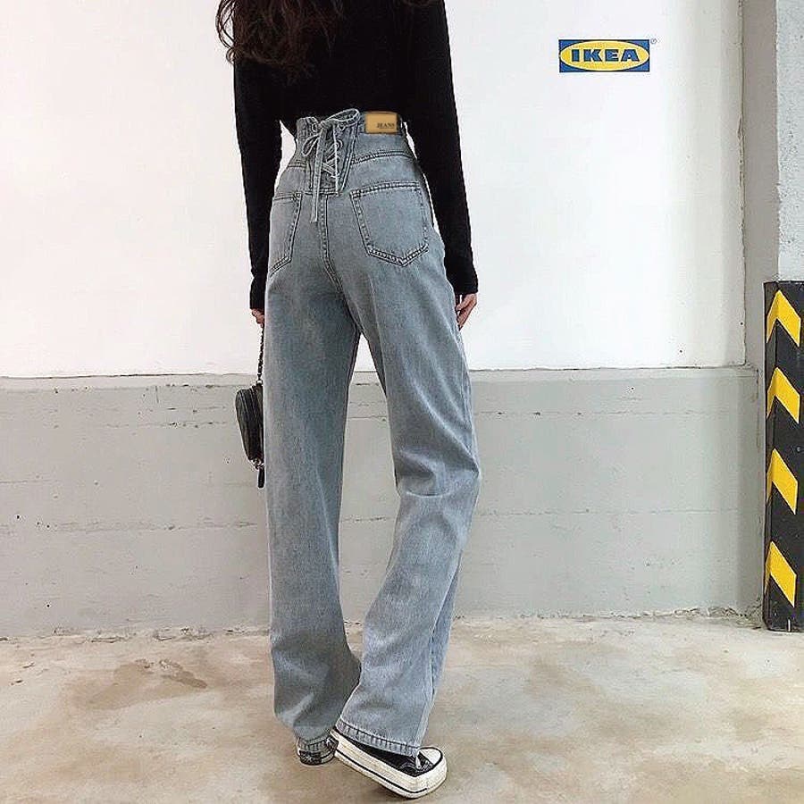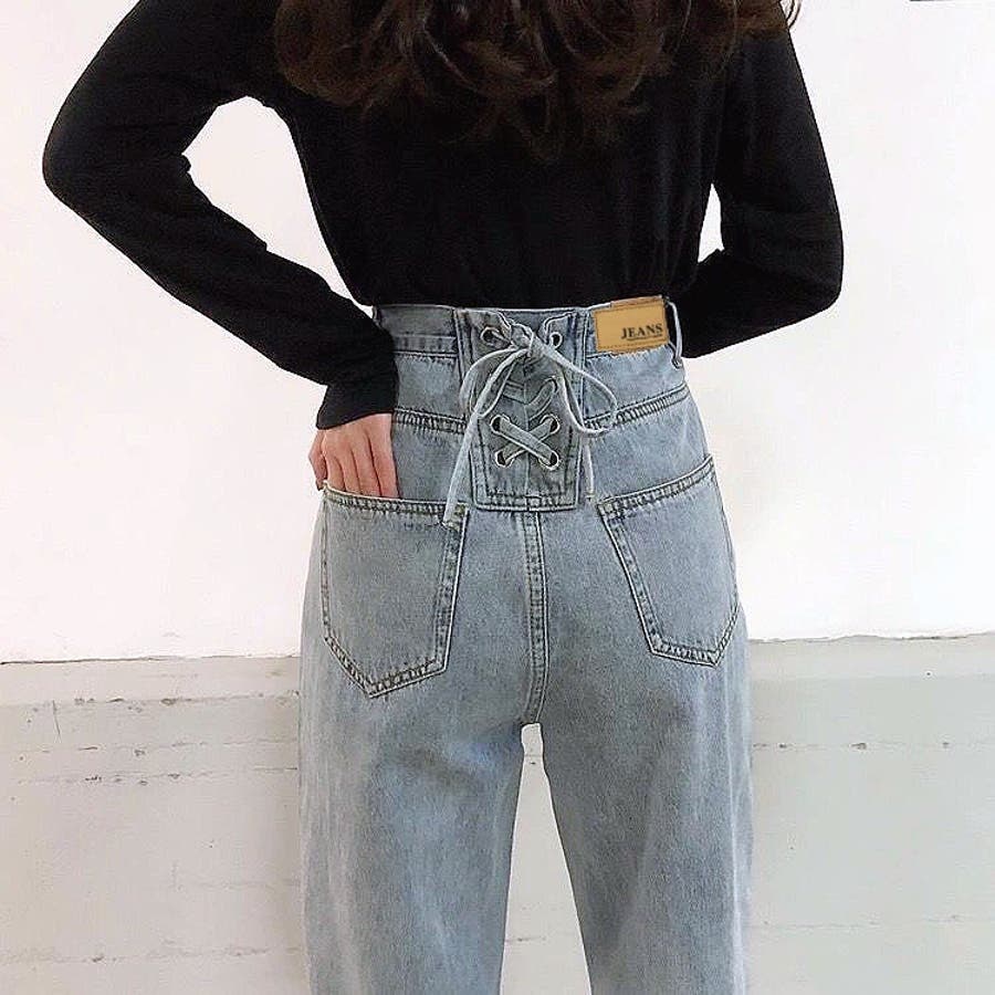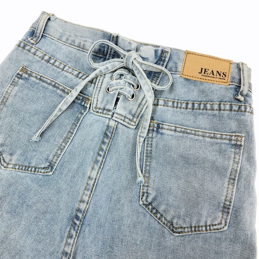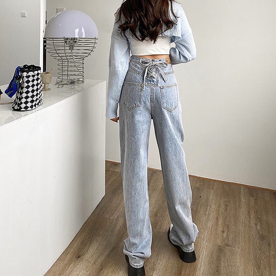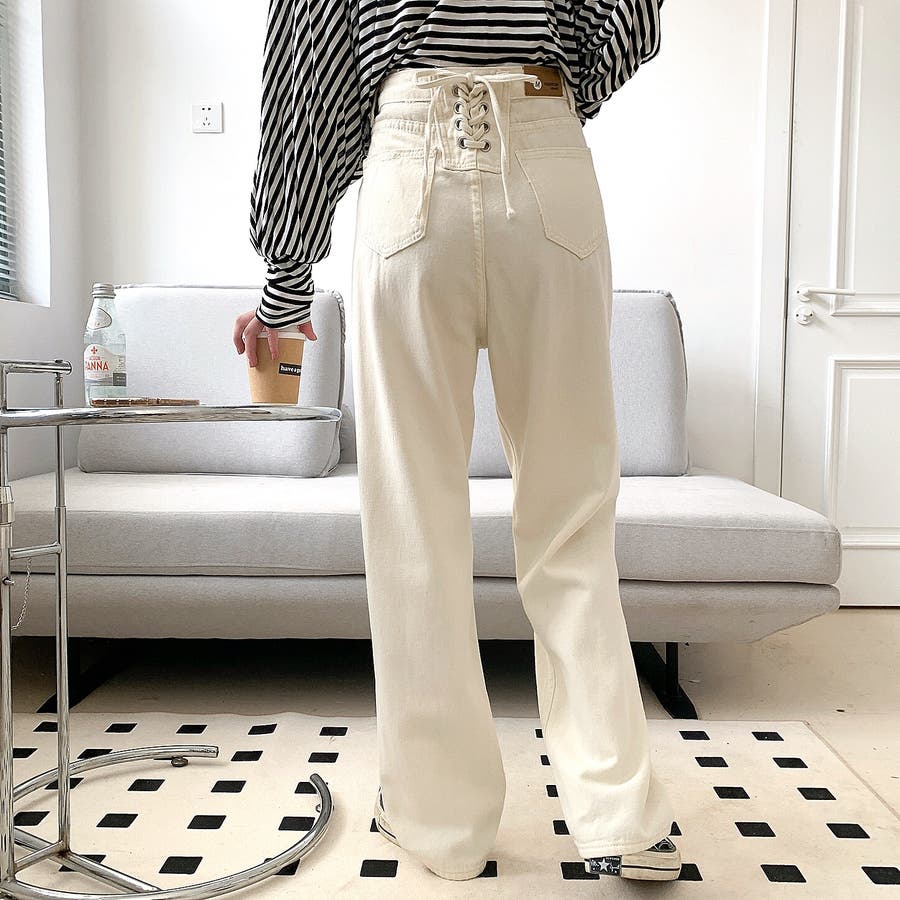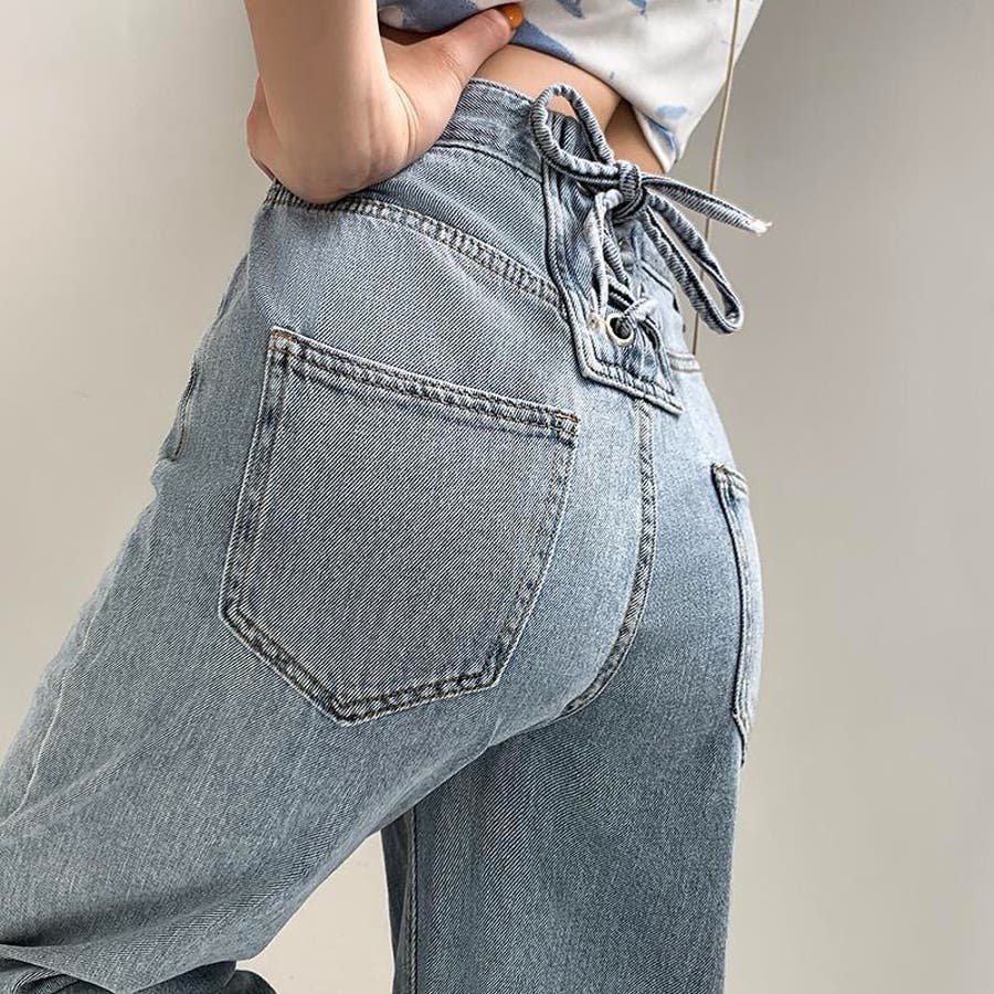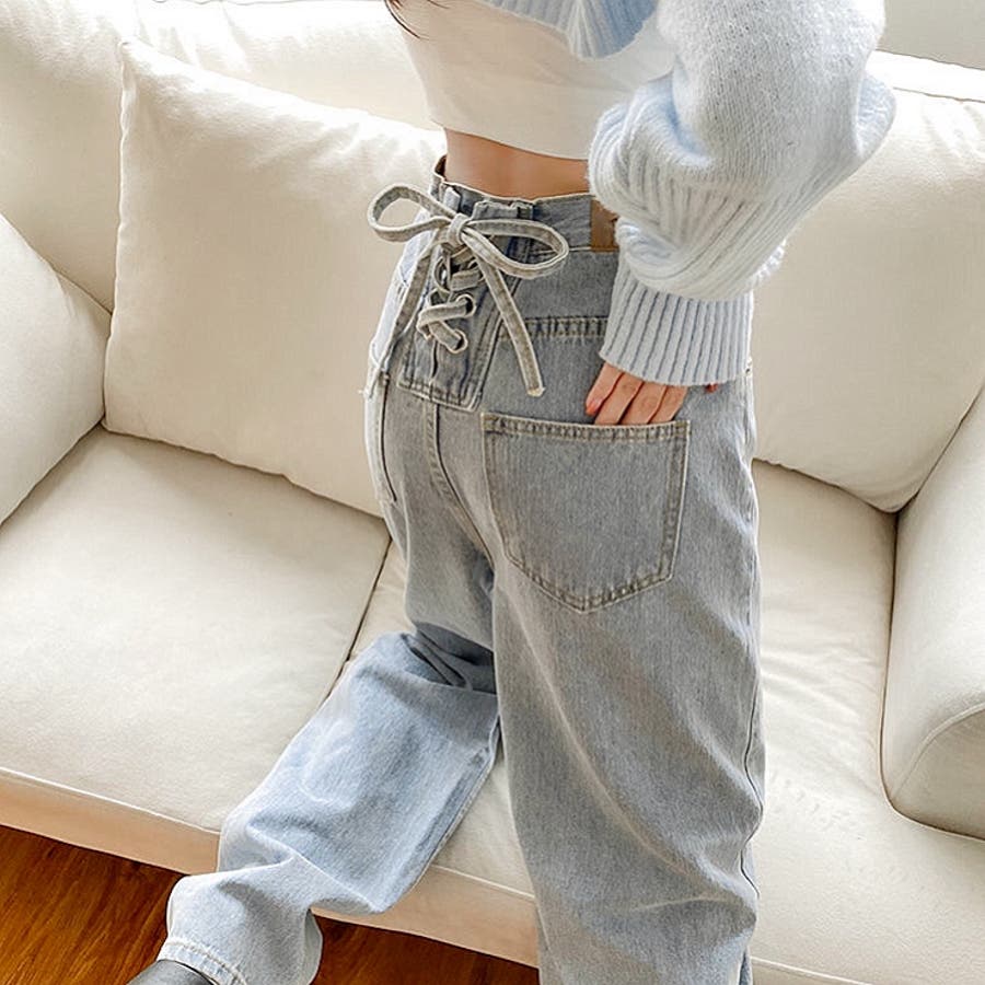 バックレースアップデニムワイドパンツ 春 夏