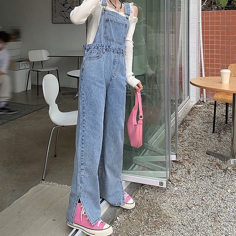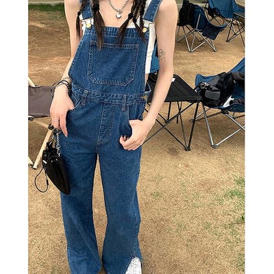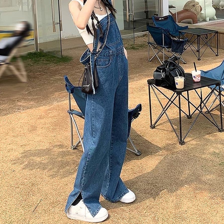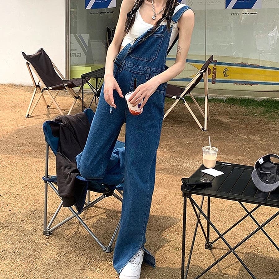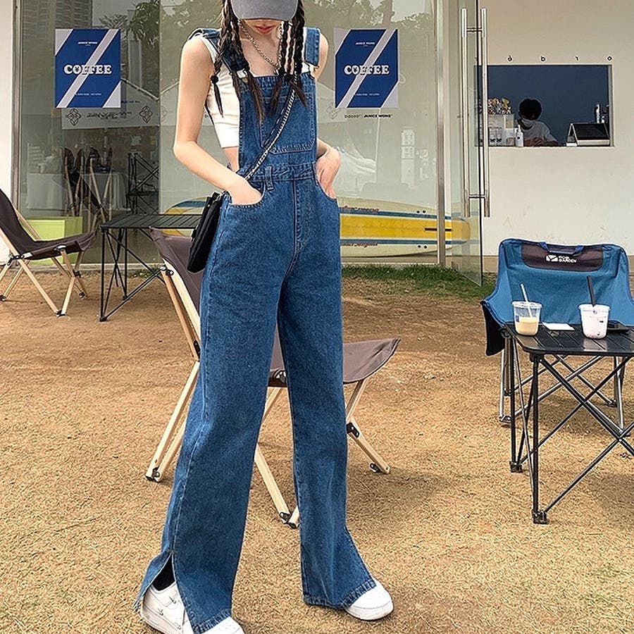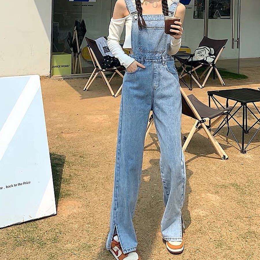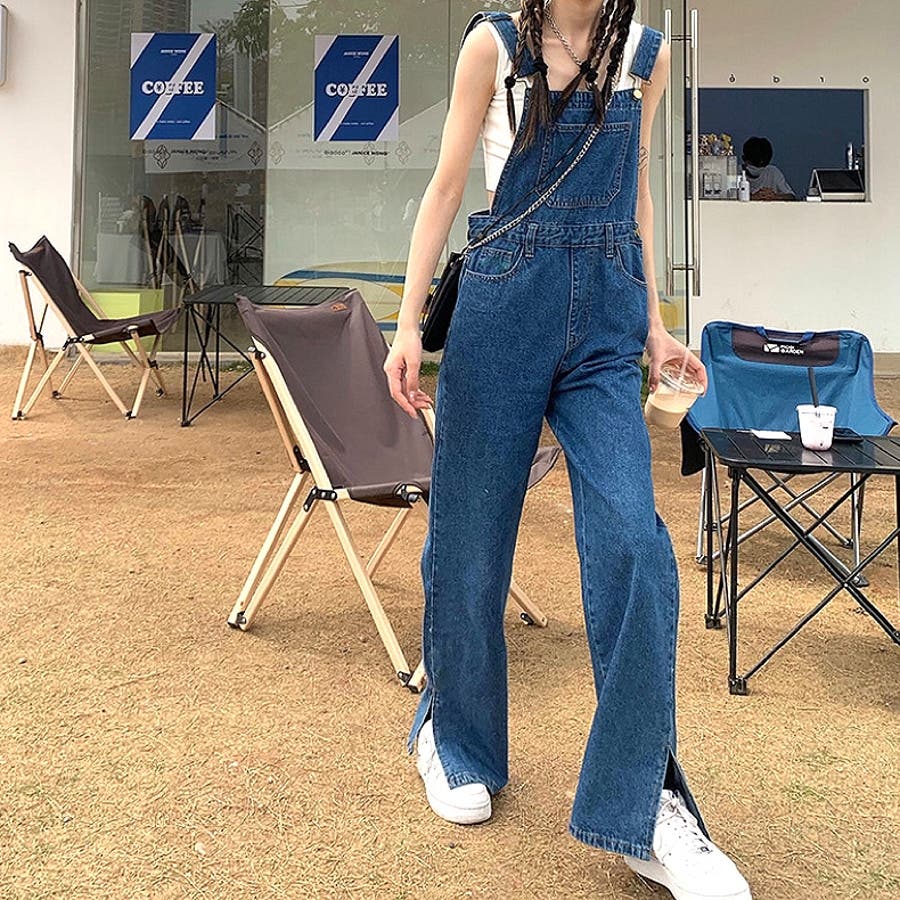 裾スリットデニムサロペット 春 夏
