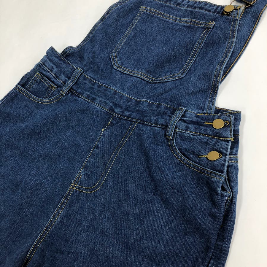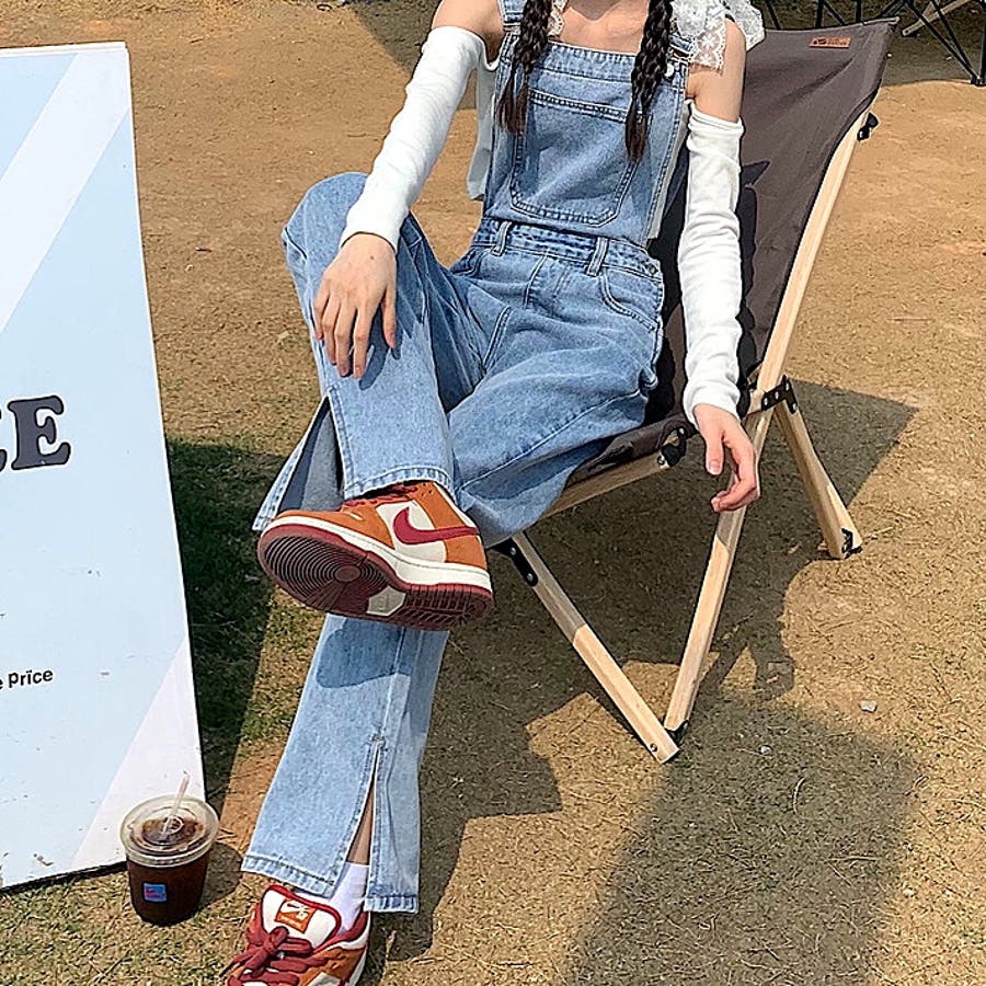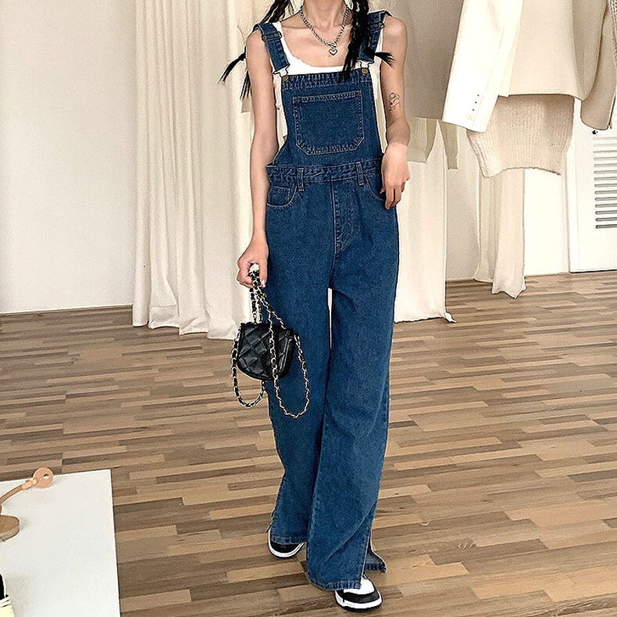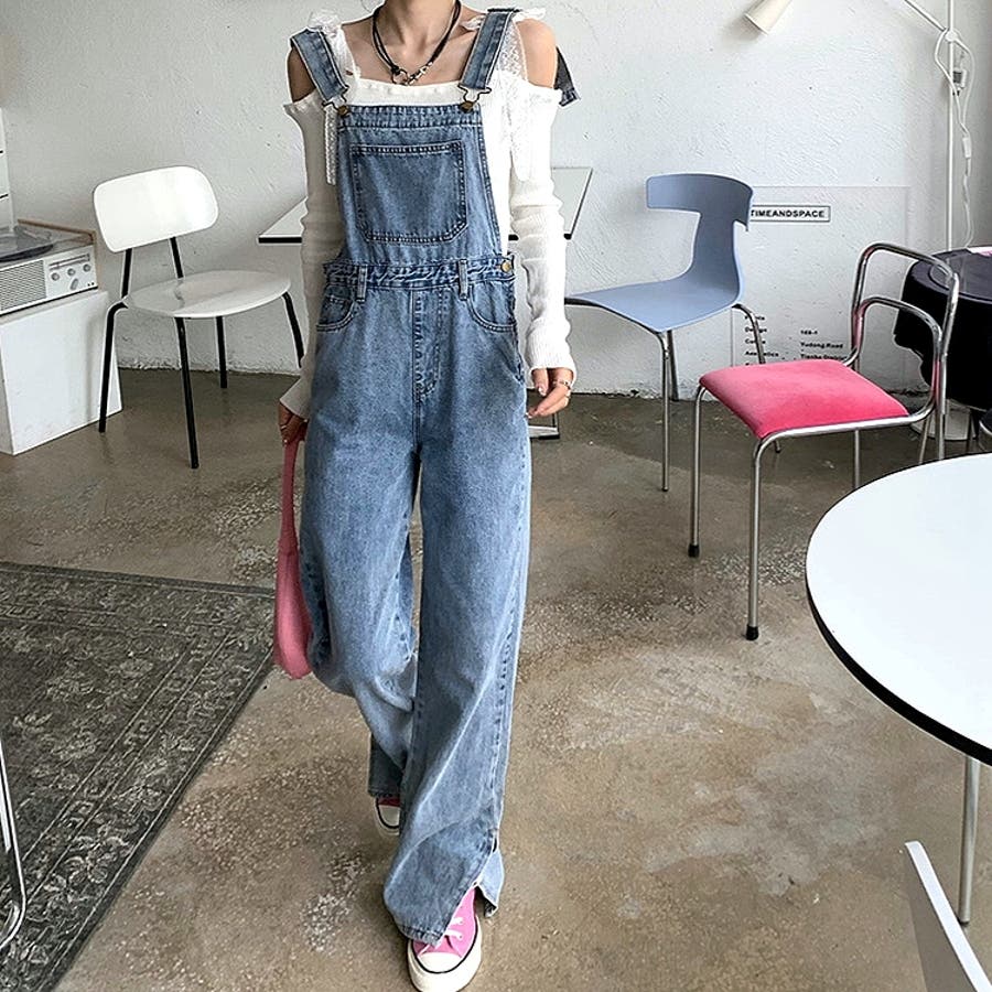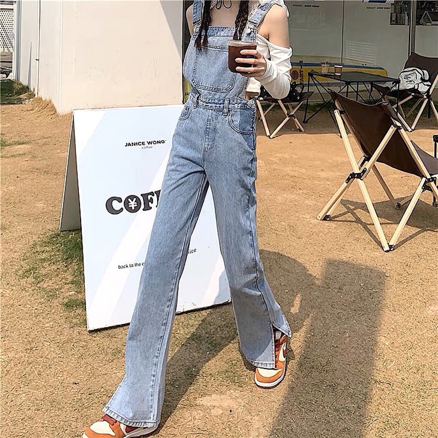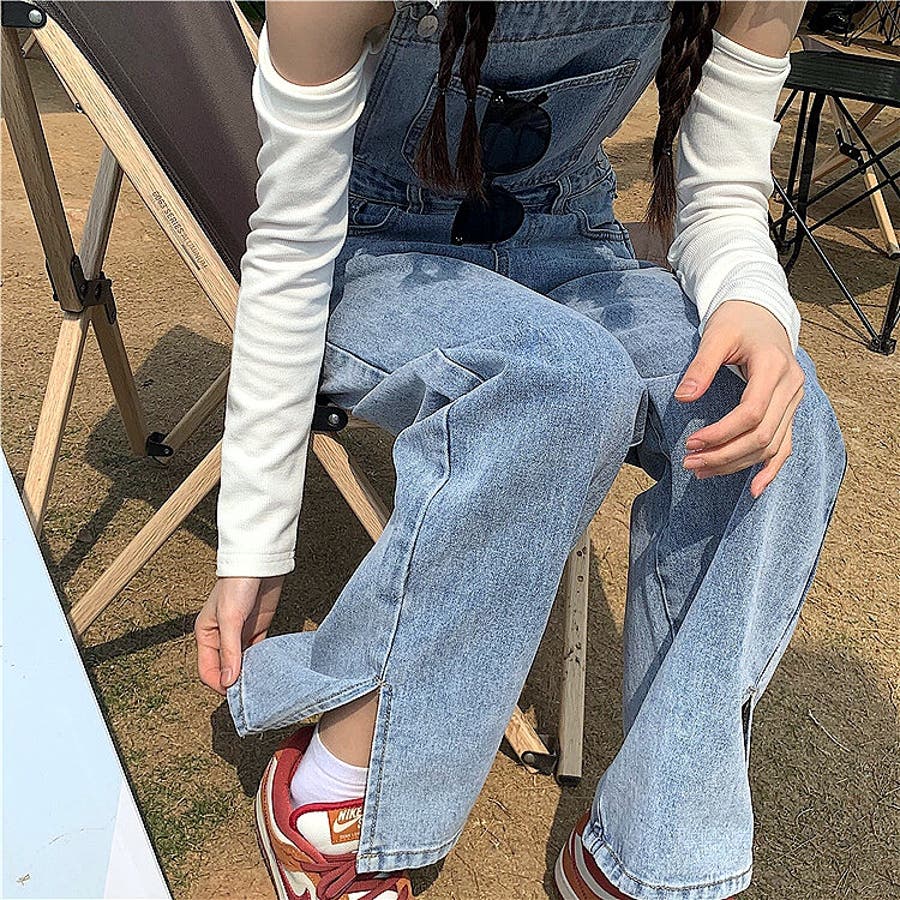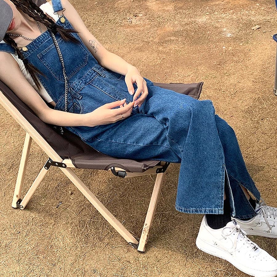 裾スリットデニムサロペット 春 夏