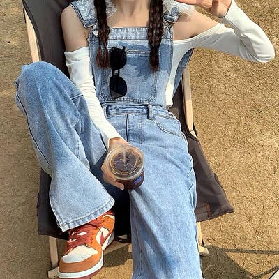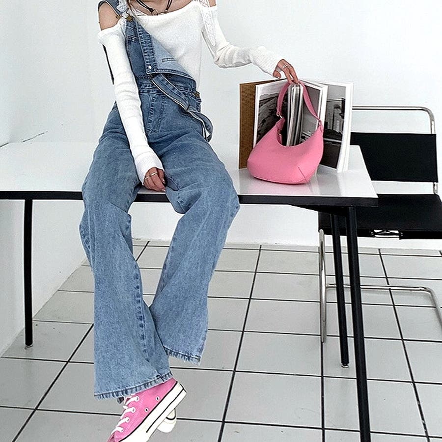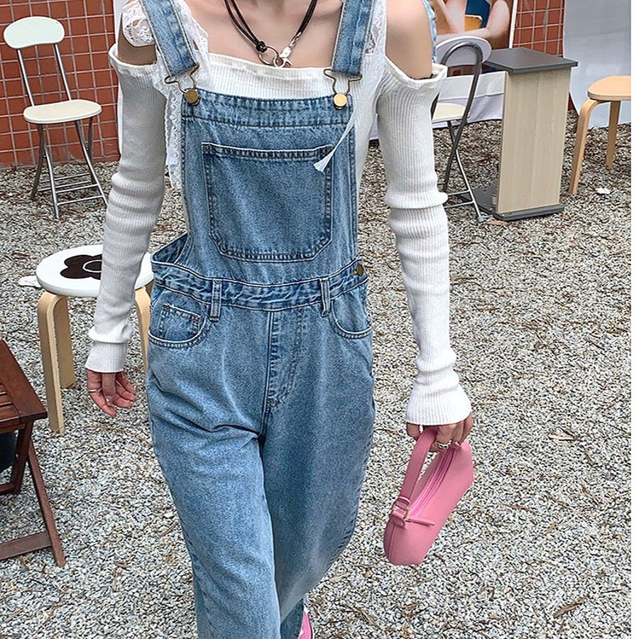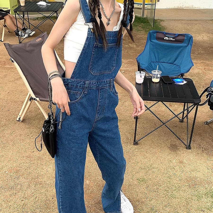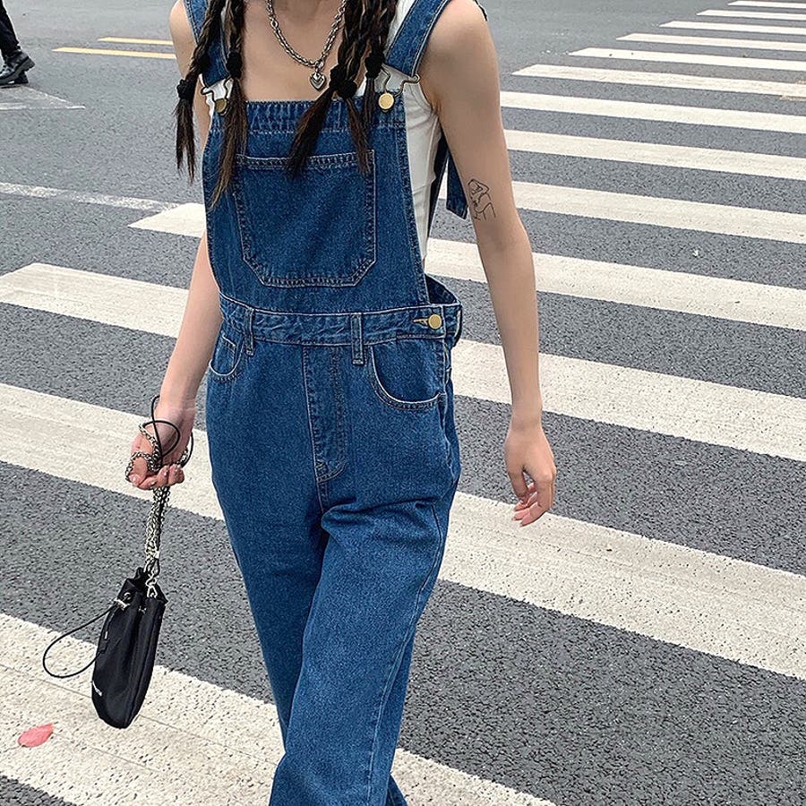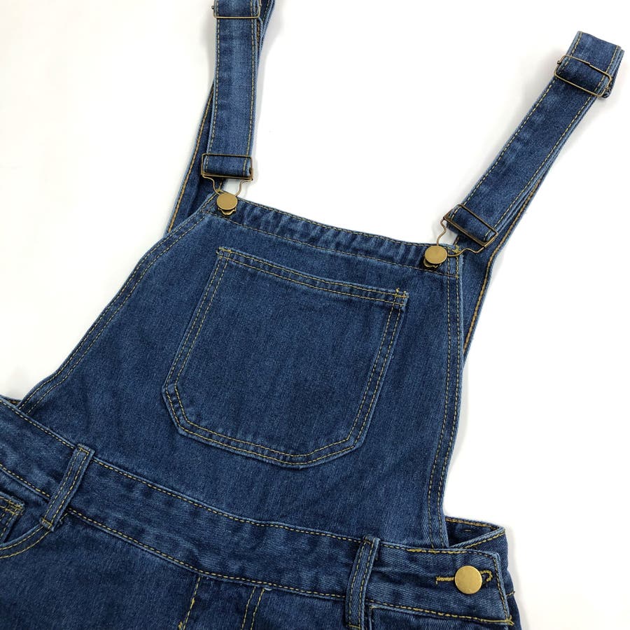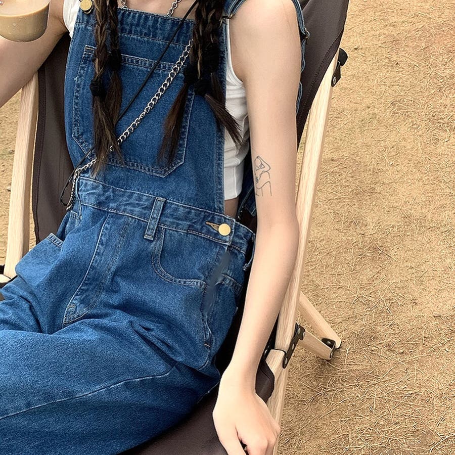 裾スリットデニムサロペット 春 夏