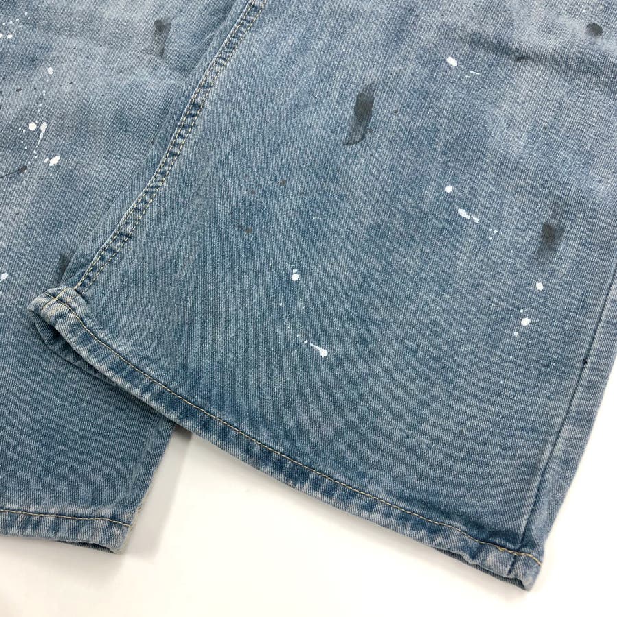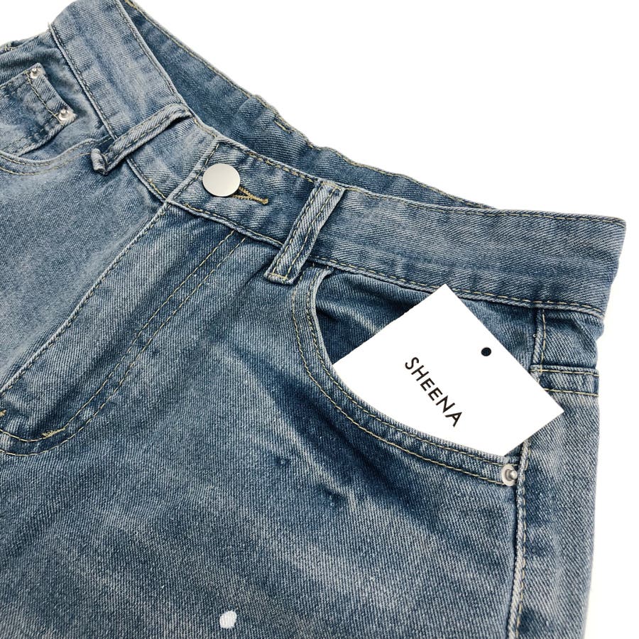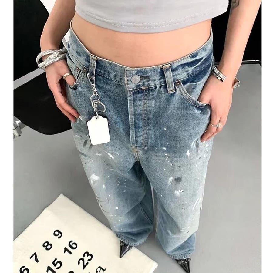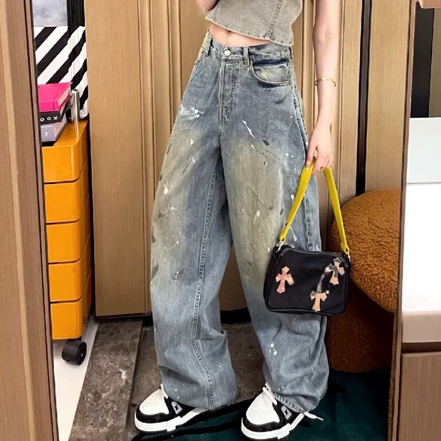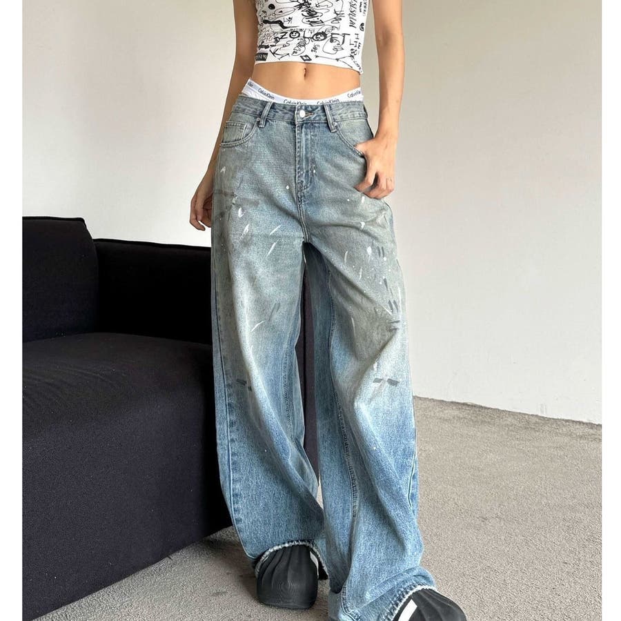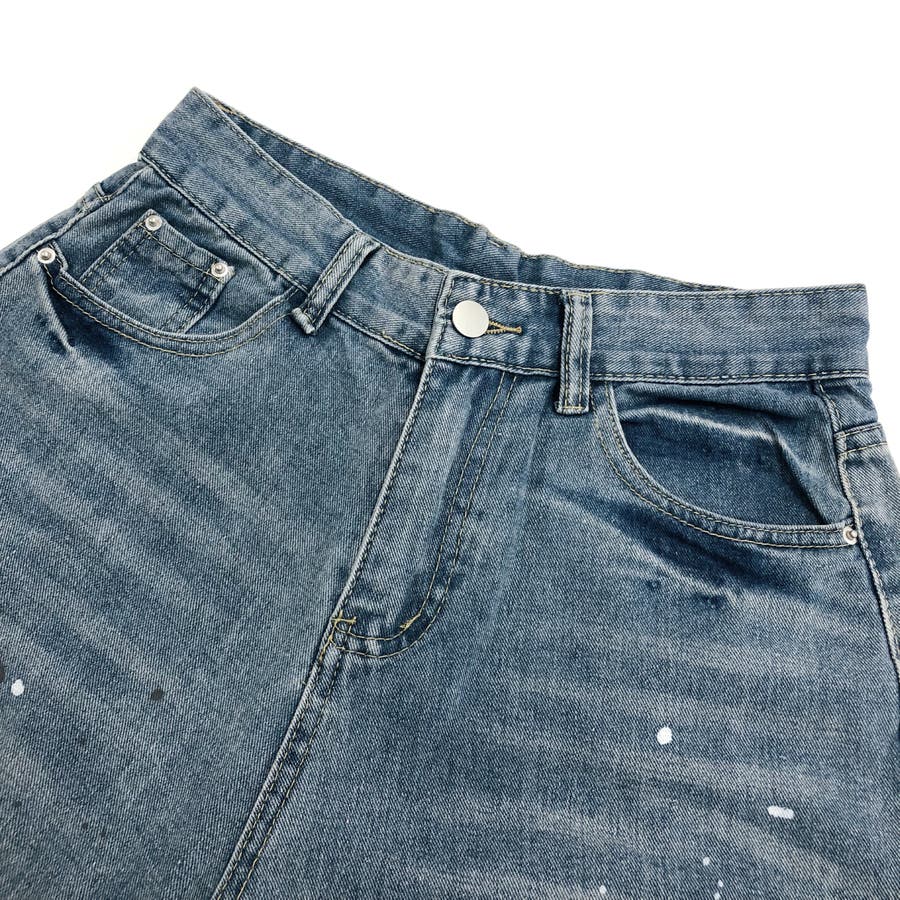 ペイント加工デニムワイドパンツ 春 夏