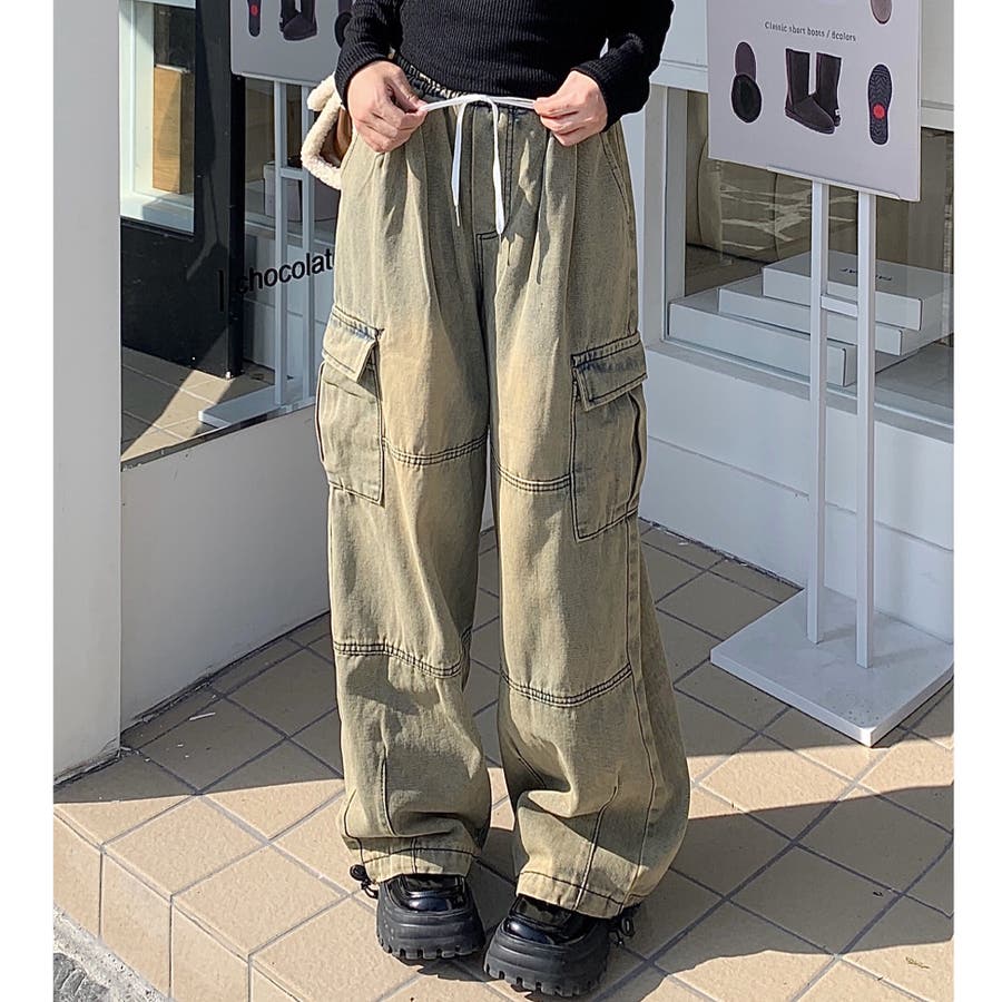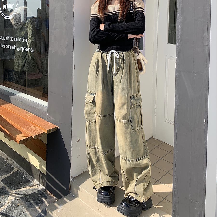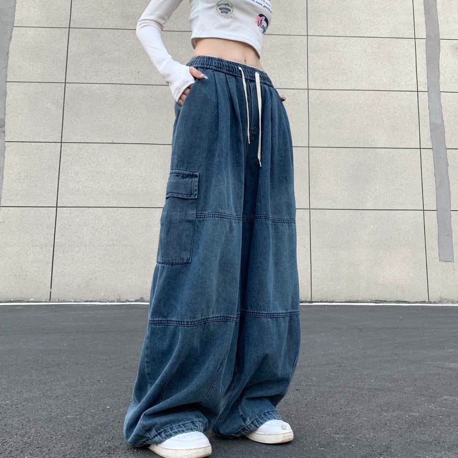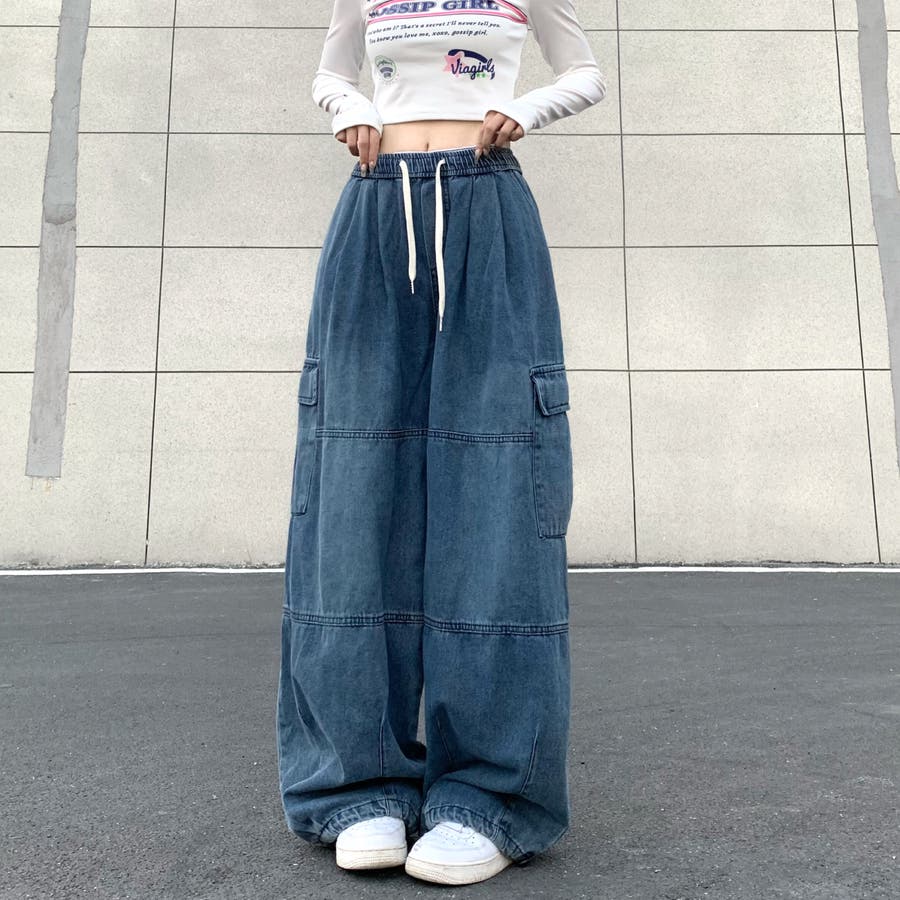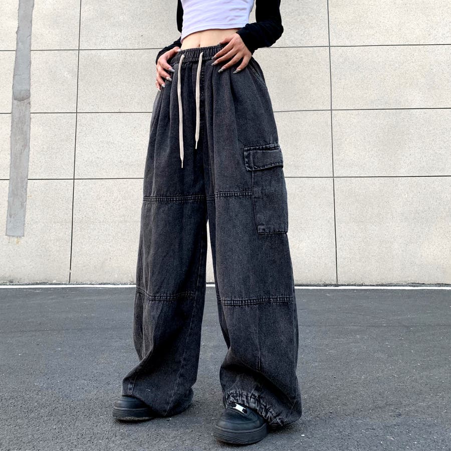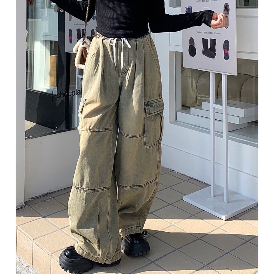 ヴィンテージデニムワイドイージーパンツ 春 夏