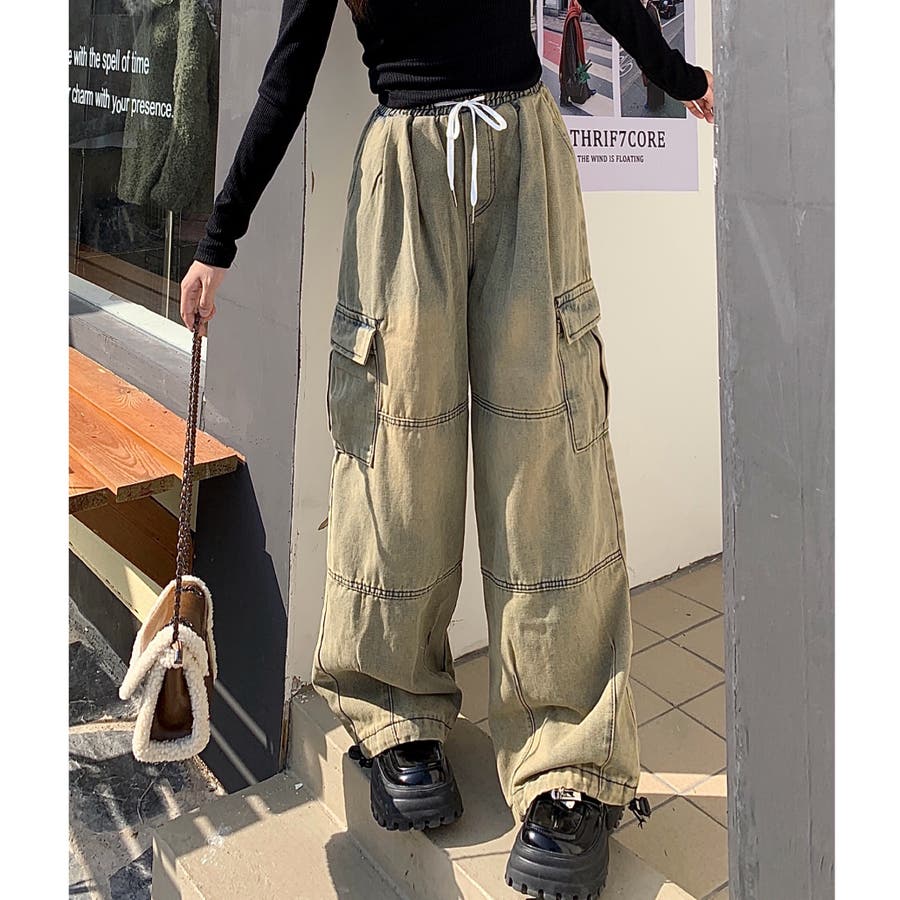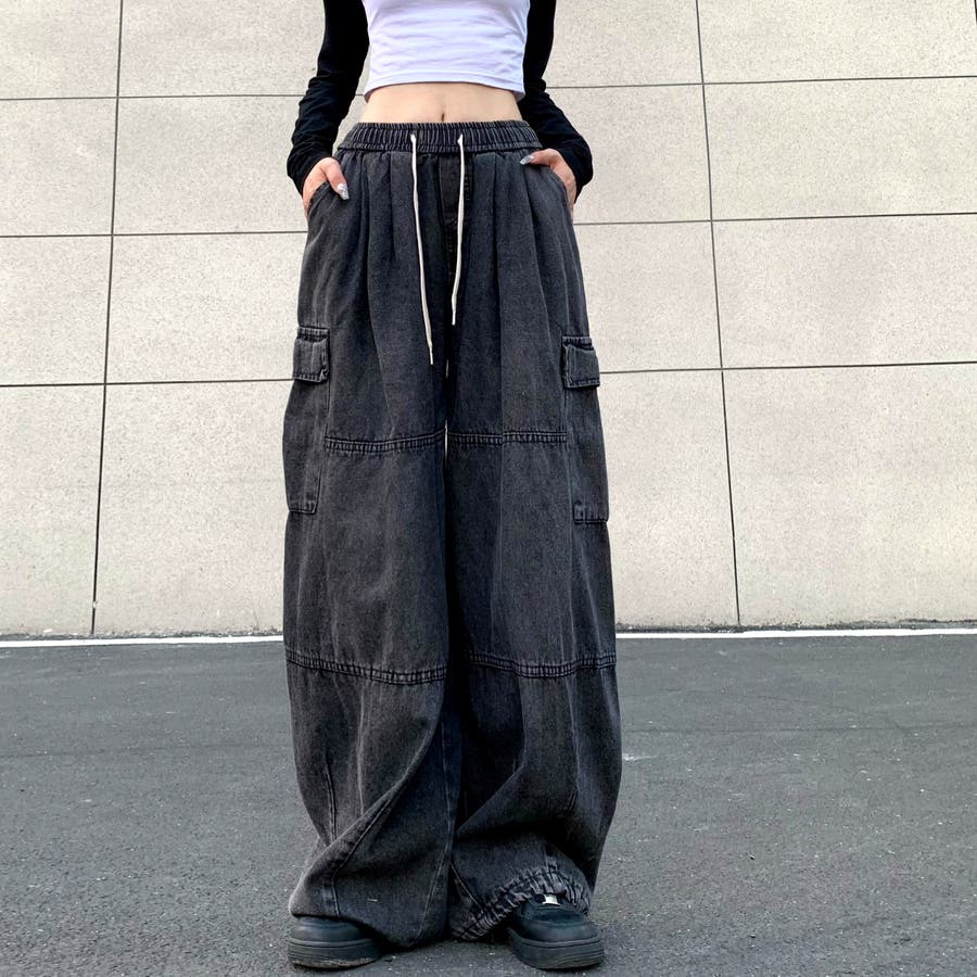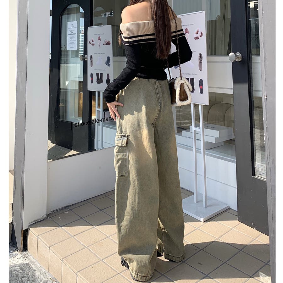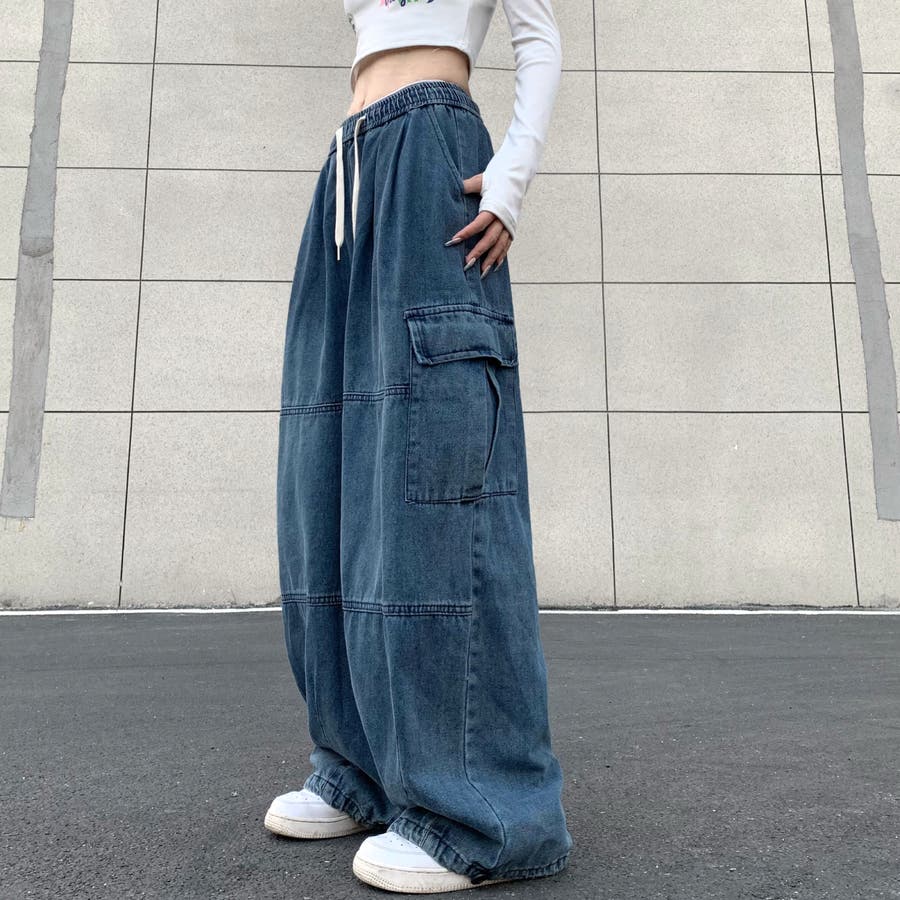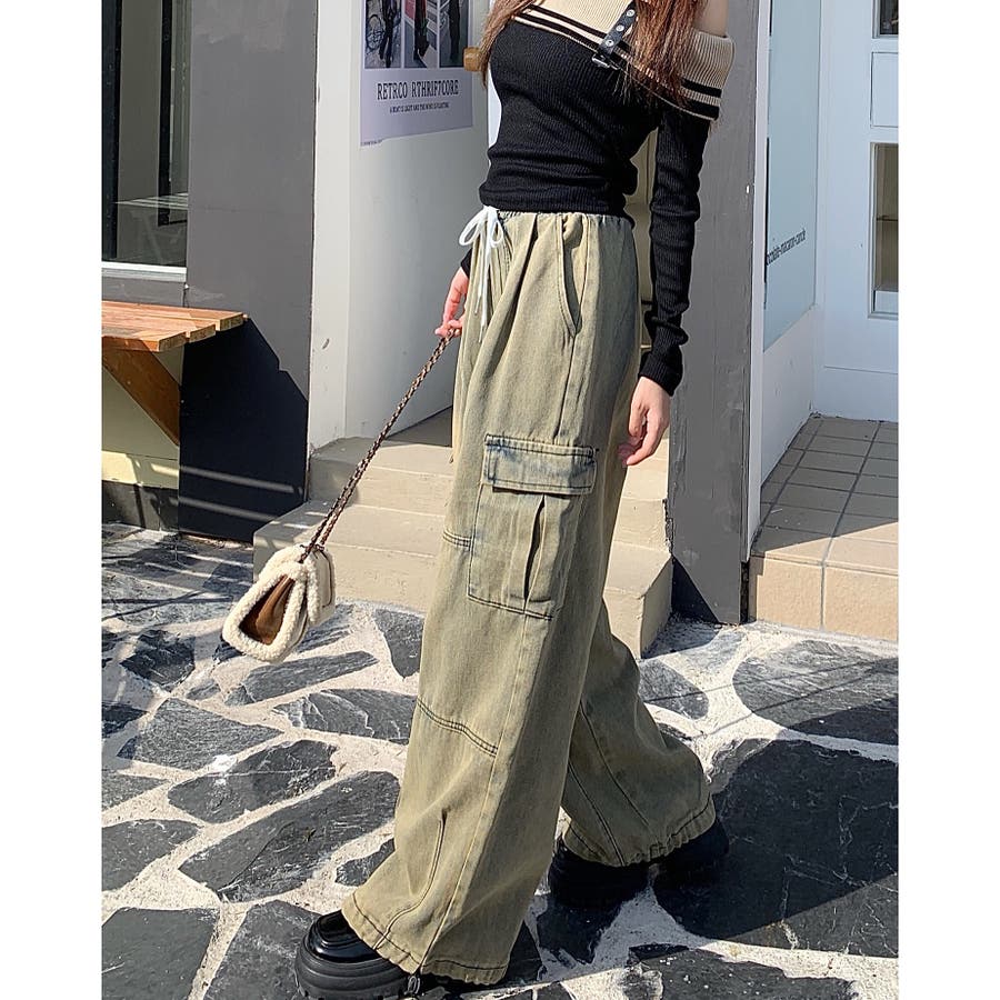 ヴィンテージデニムワイドイージーパンツ 春 夏