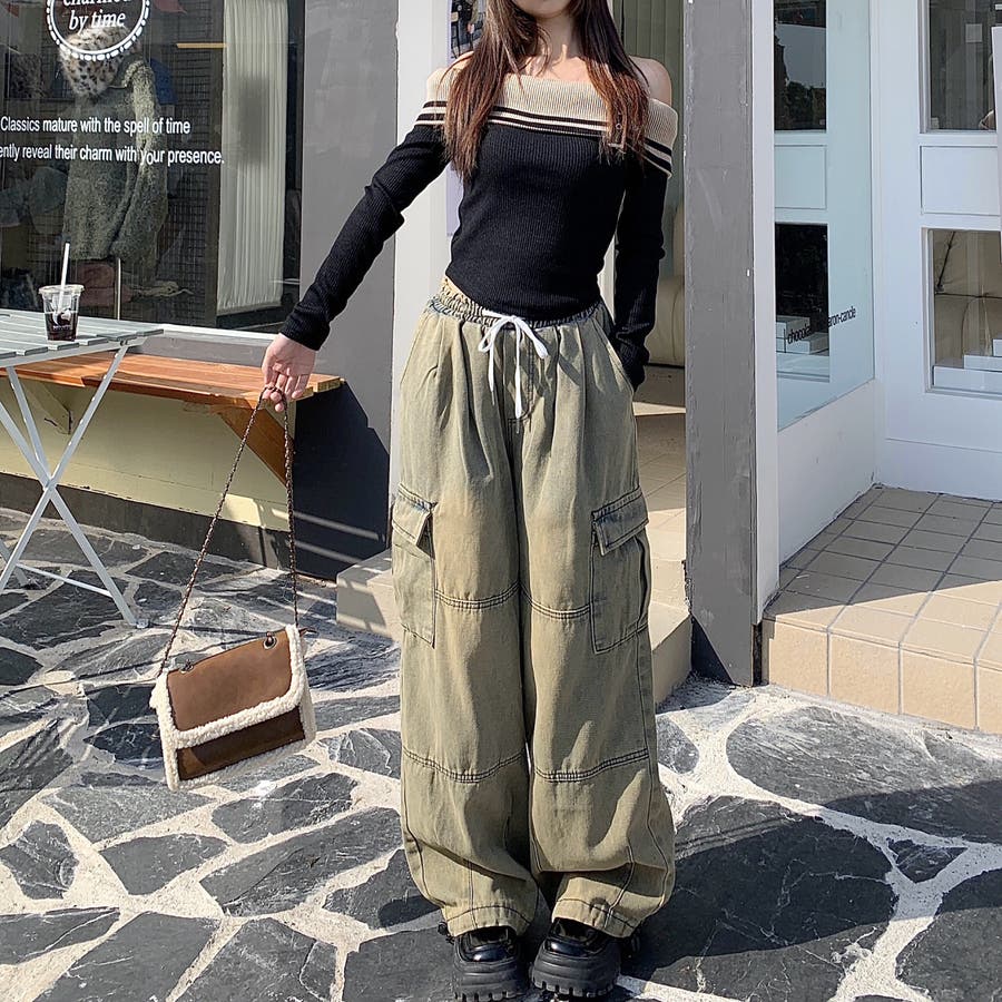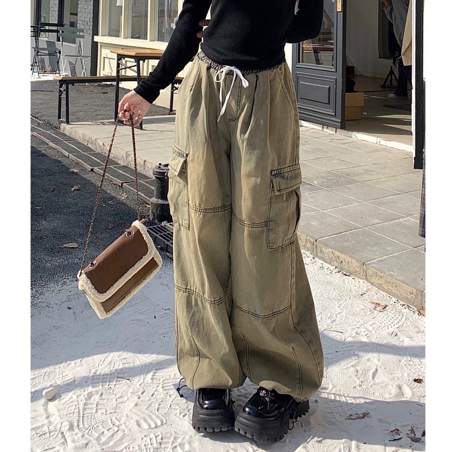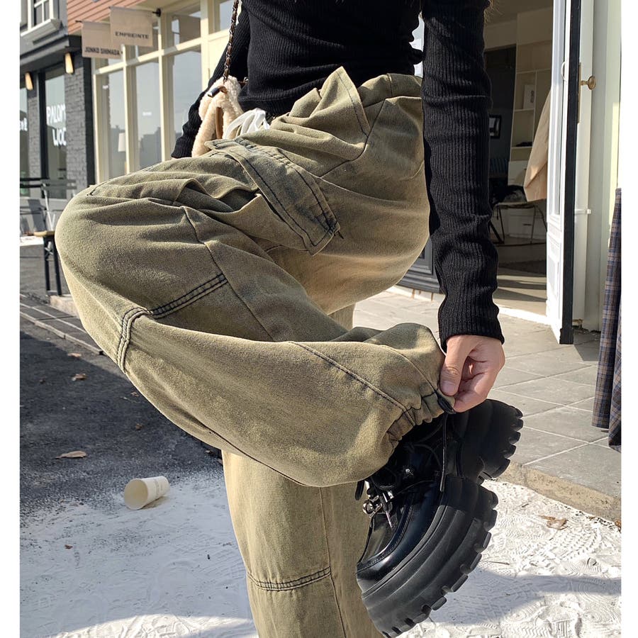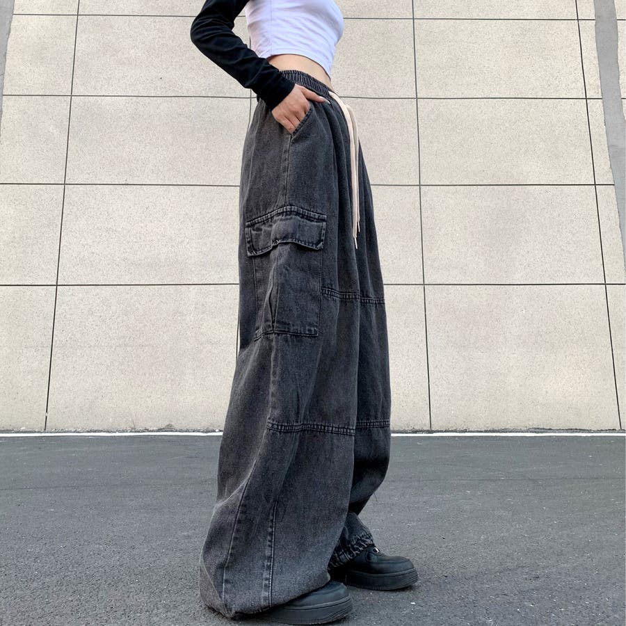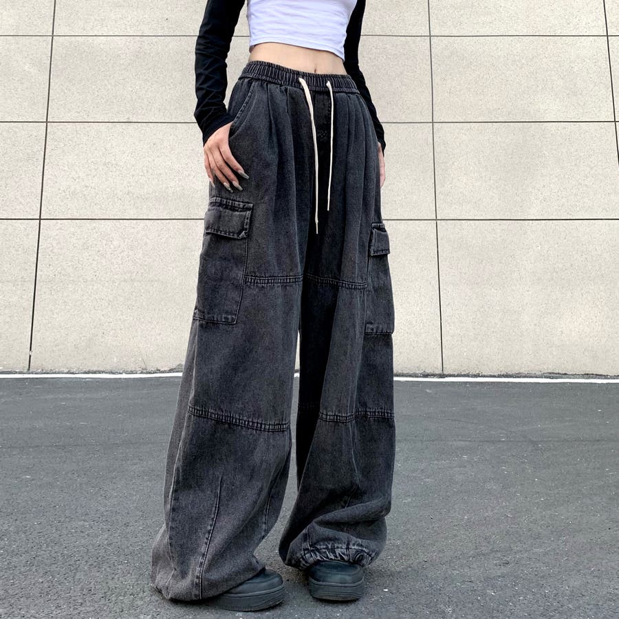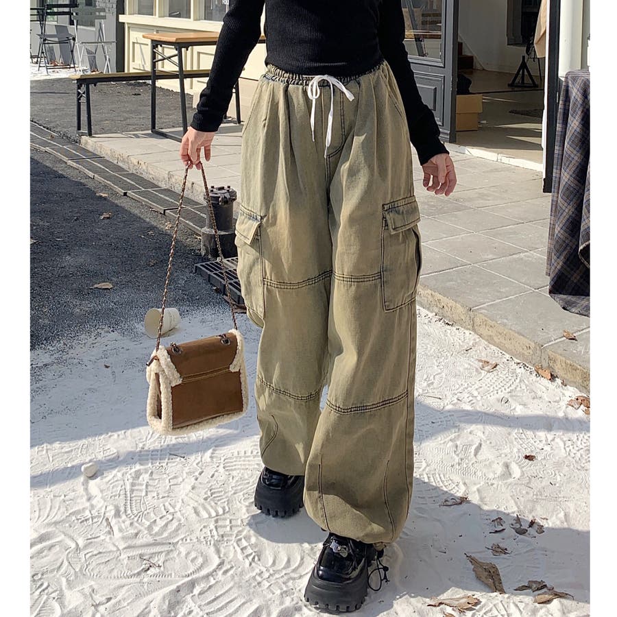 ヴィンテージデニムワイドイージーパンツ 春 夏