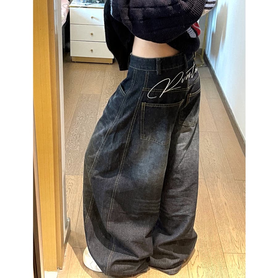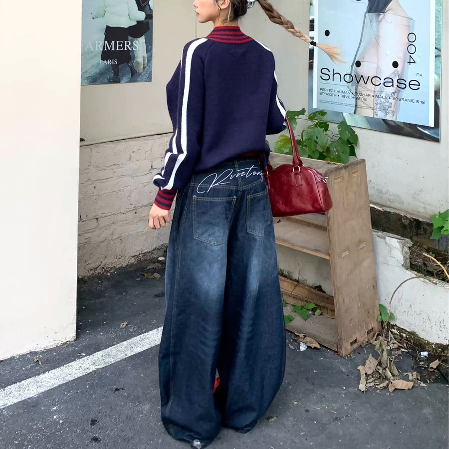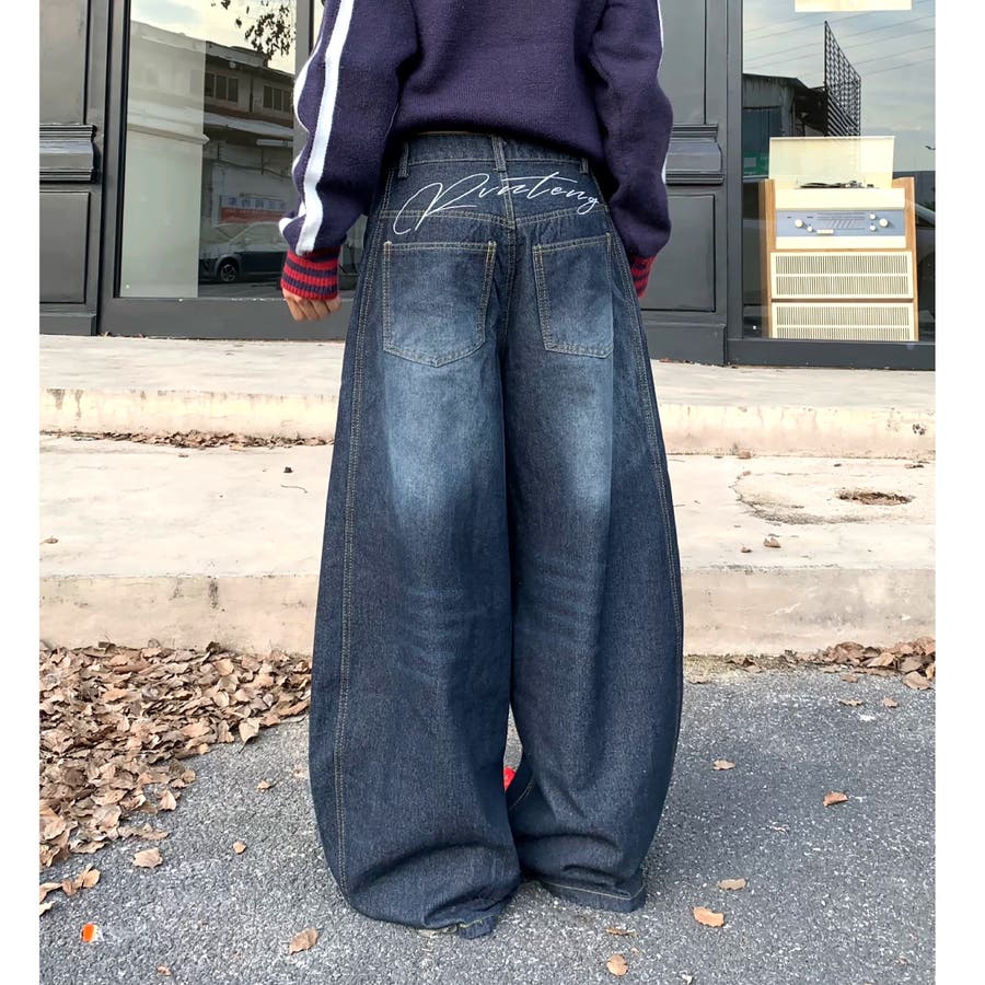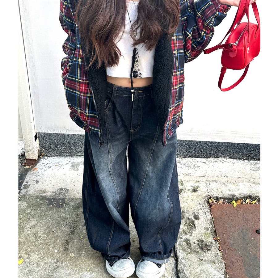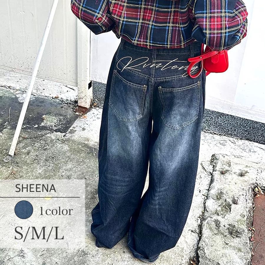 バック刺しゅうロゴルーズワイドデニムパンツ 春 夏
