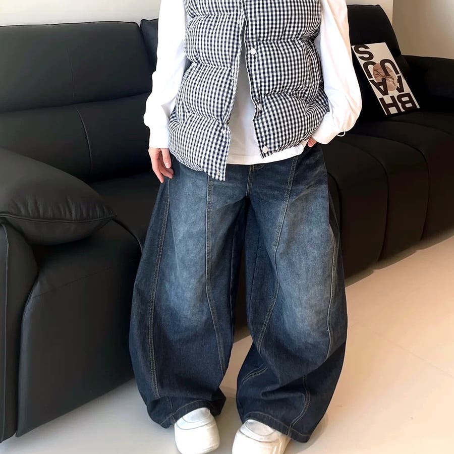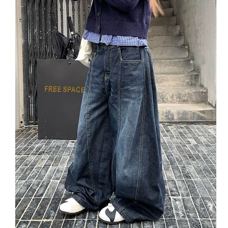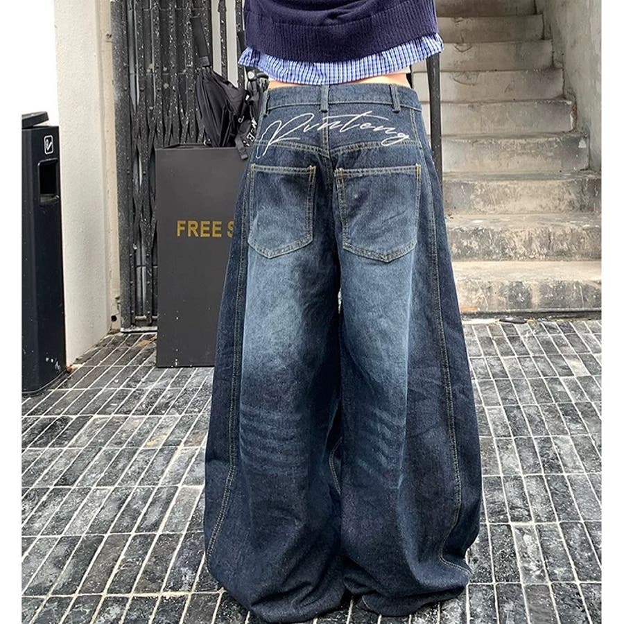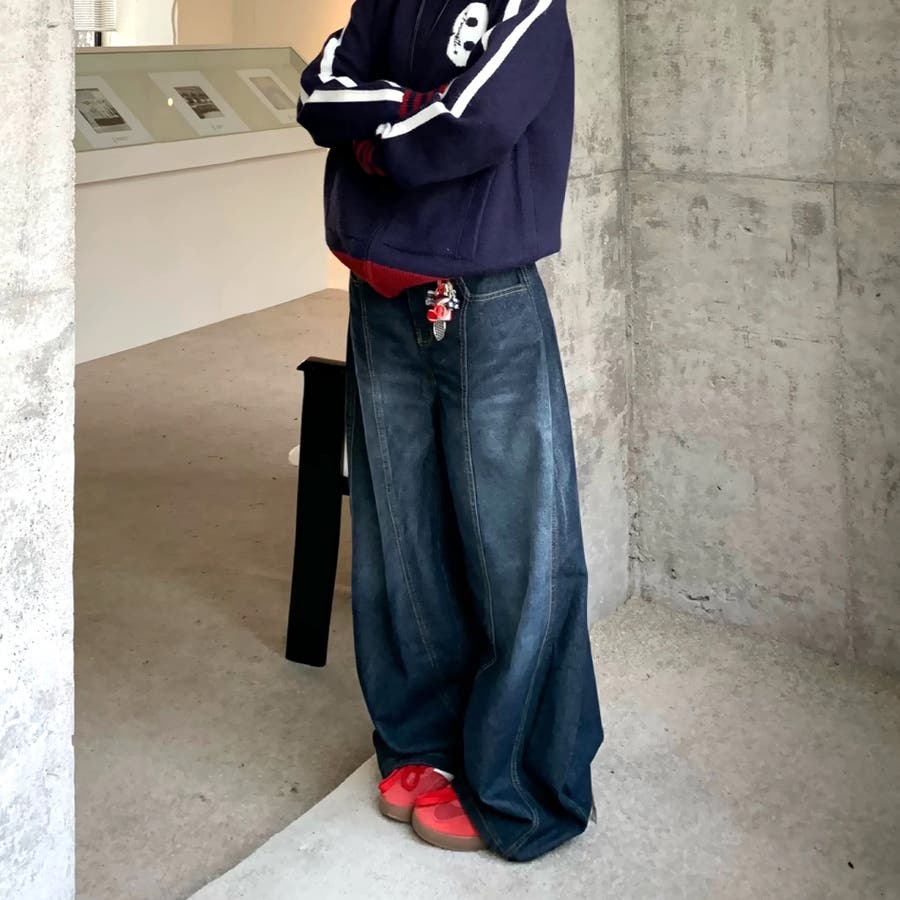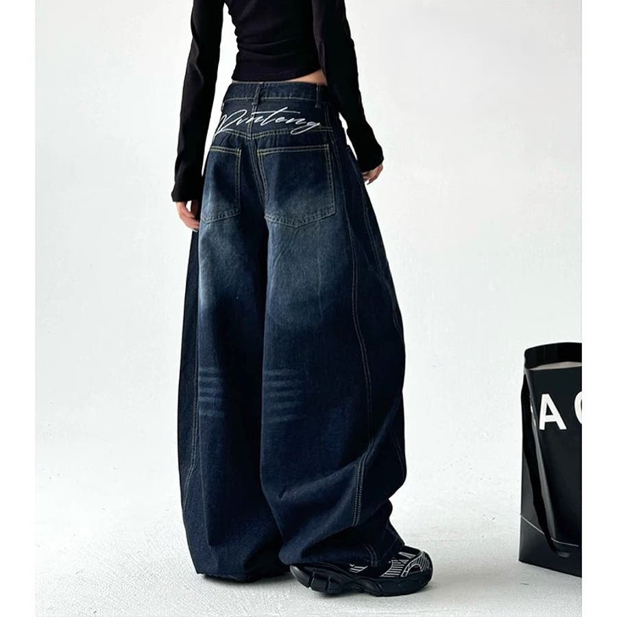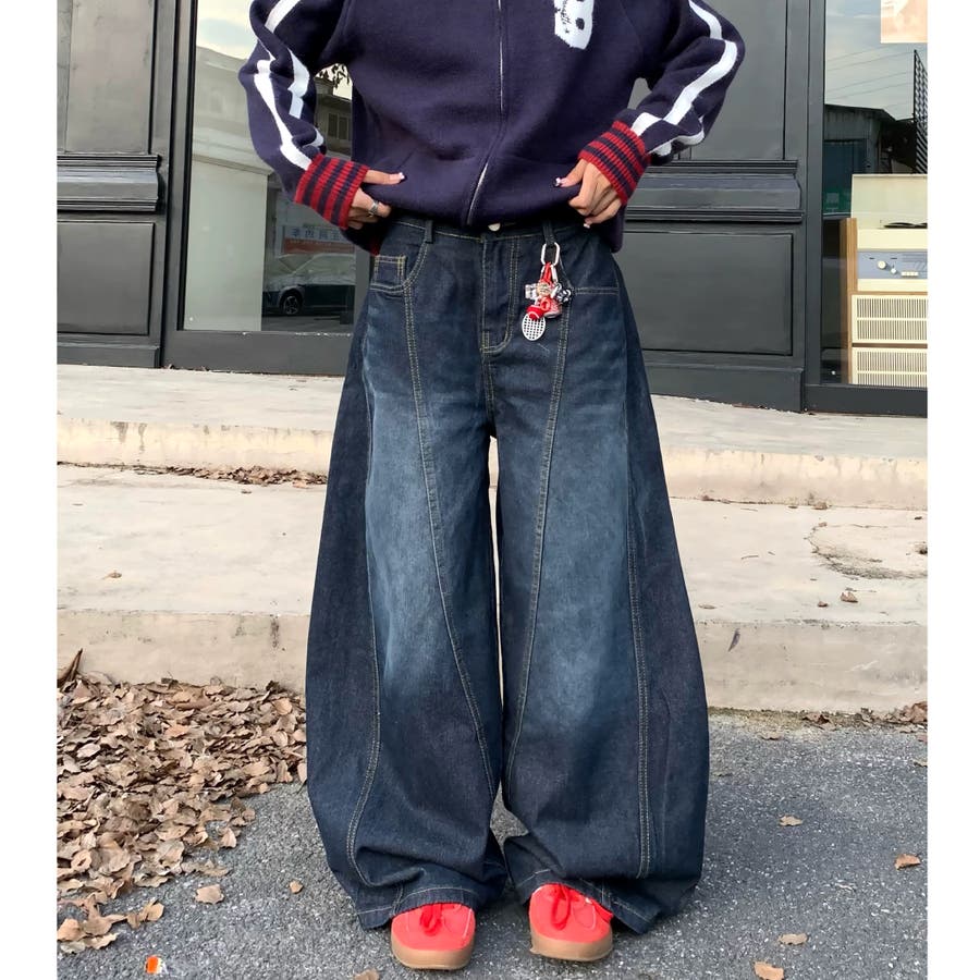 バック刺しゅうロゴルーズワイドデニムパンツ 春 夏