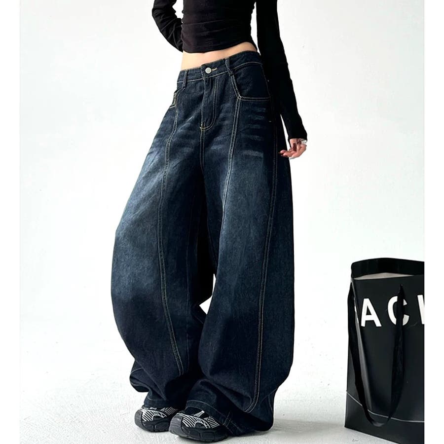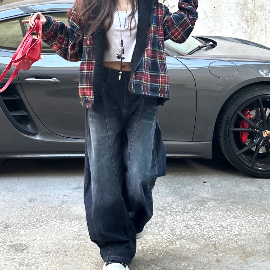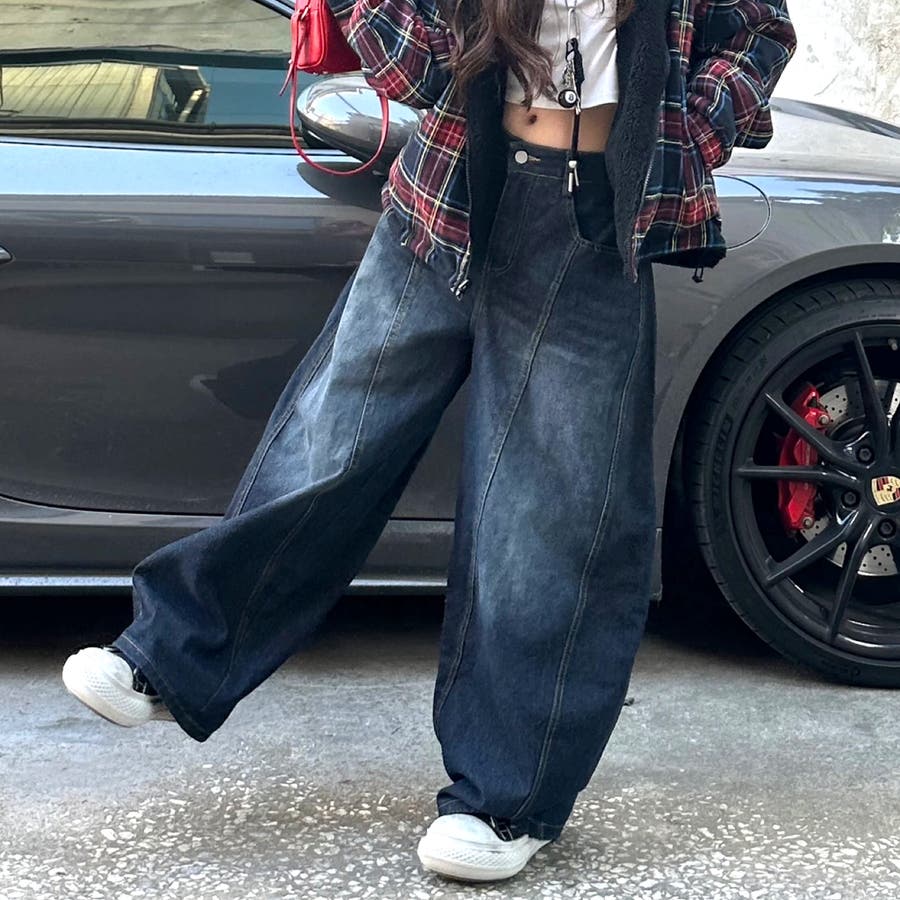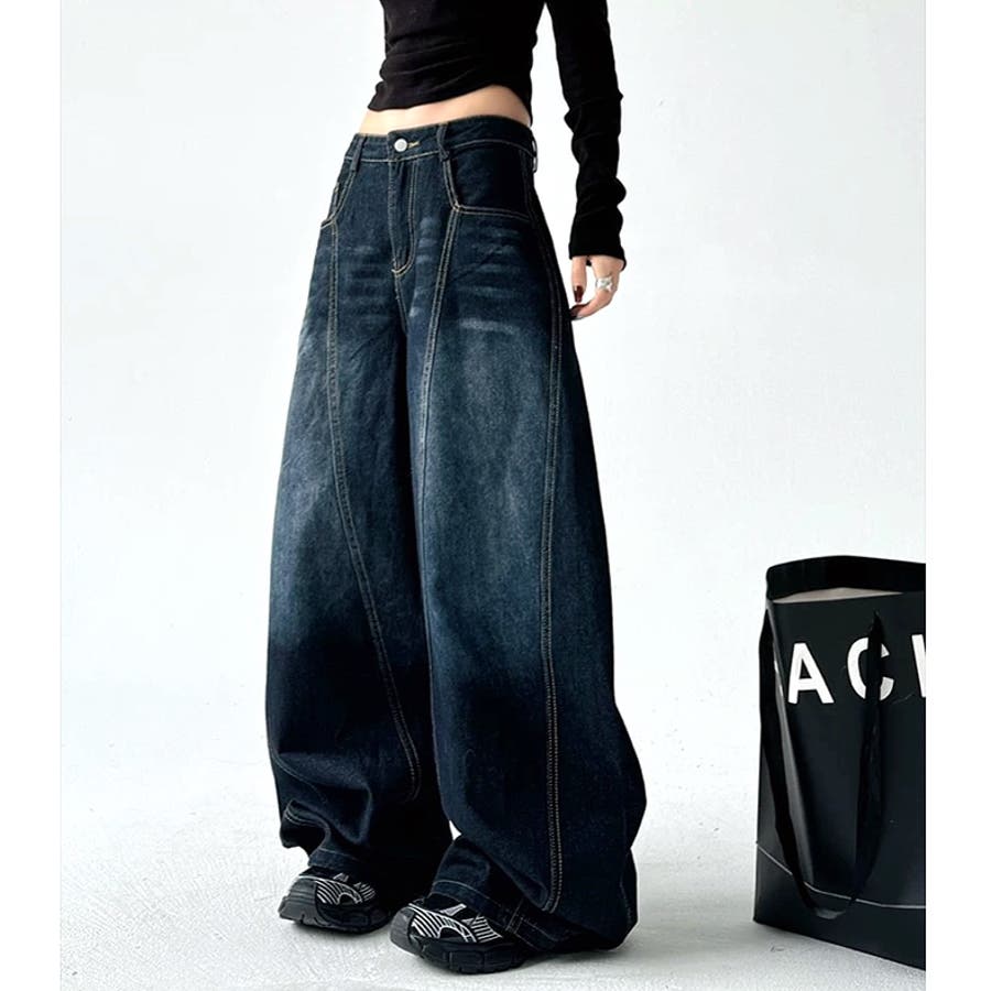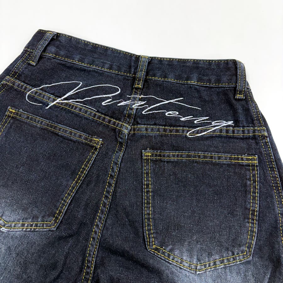 バック刺しゅうロゴルーズワイドデニムパンツ 春 夏