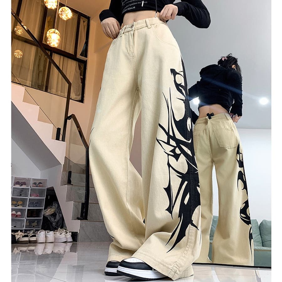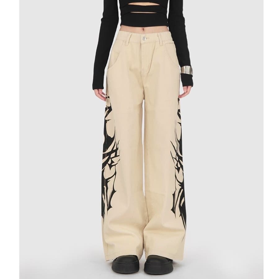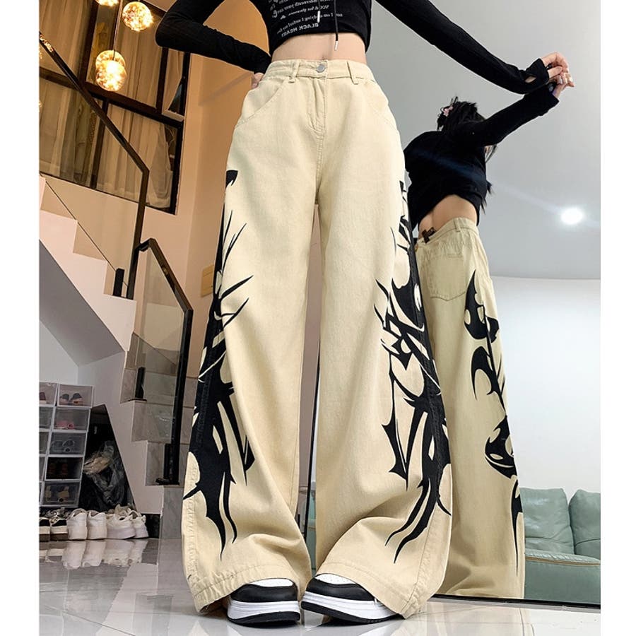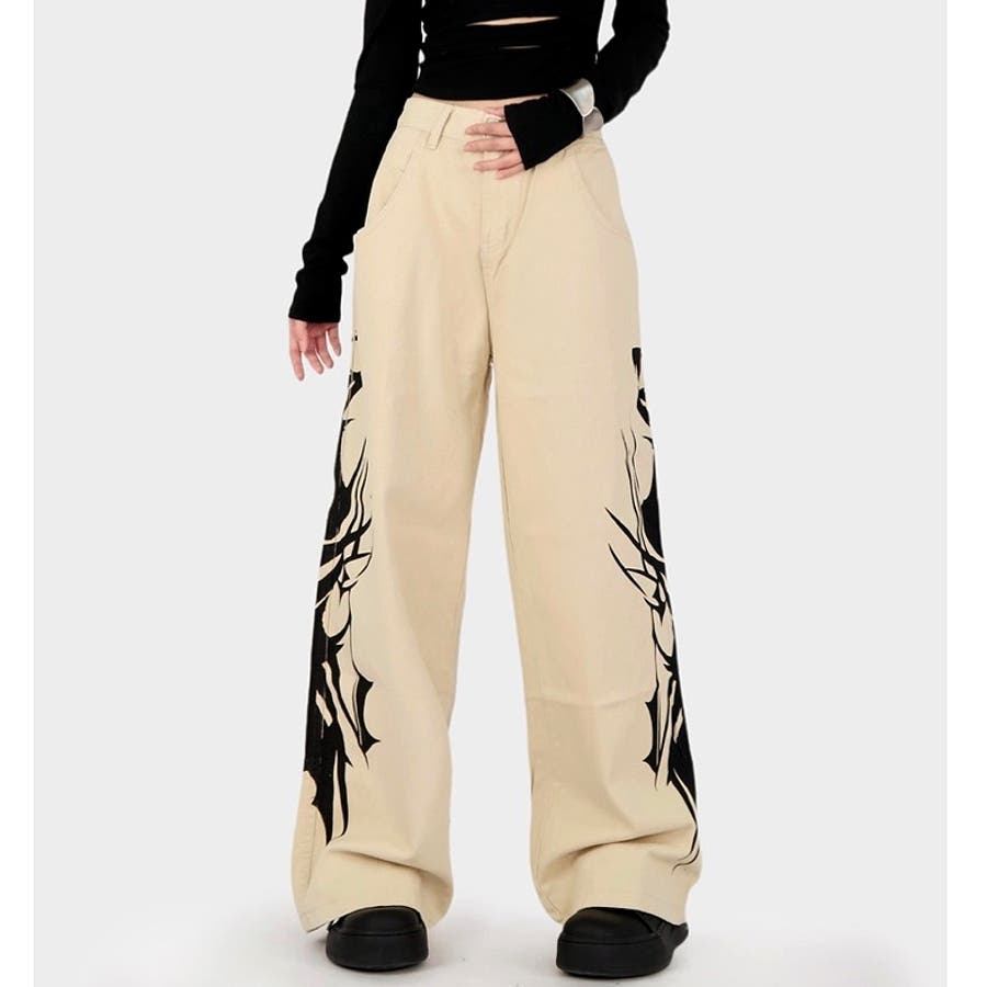 春夏新作 春 夏 秋 冬 春服 夏服 秋服 冬服 オールシーズン ワイドパンツ ゆったり 体型カバー トライバル柄 グラフィック カジュアル ストリート スポーティー 韓国 韓国ファッション トレンド 主婦 学生 ギャル Y2K 海外ガール シティガール ダンス メンズライク お洒落 10代 20代 30代 40代 50代