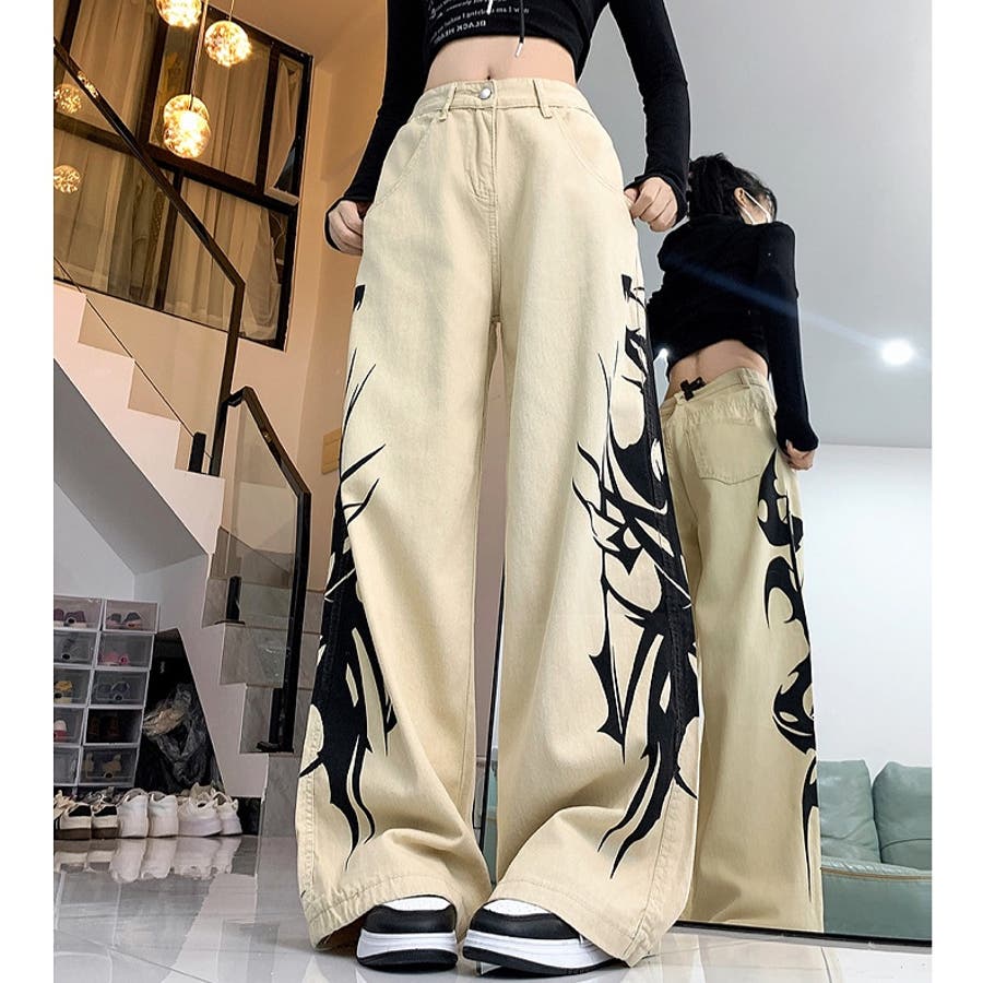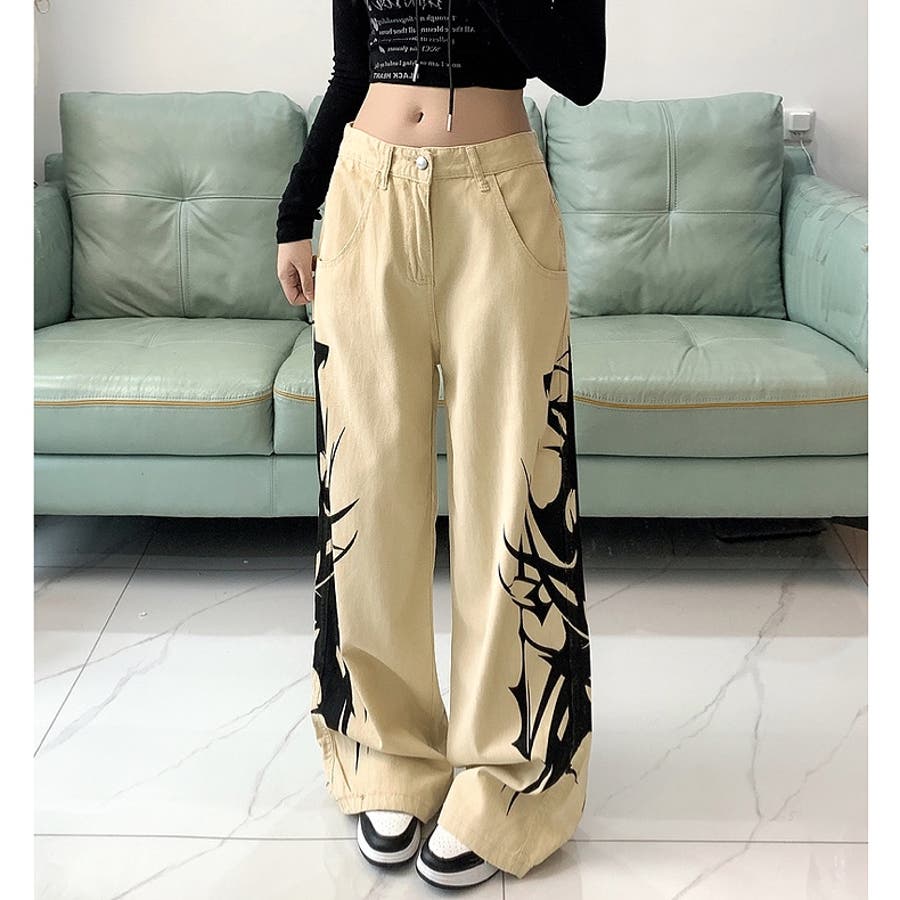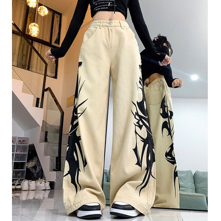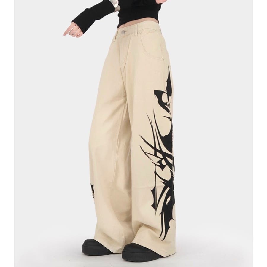 春夏新作 春 夏 秋 冬 春服 夏服 秋服 冬服 オールシーズン ワイドパンツ ゆったり 体型カバー トライバル柄 グラフィック カジュアル ストリート スポーティー 韓国 韓国ファッション トレンド 主婦 学生 ギャル Y2K 海外ガール シティガール ダンス メンズライク お洒落 10代 20代 30代 40代 50代