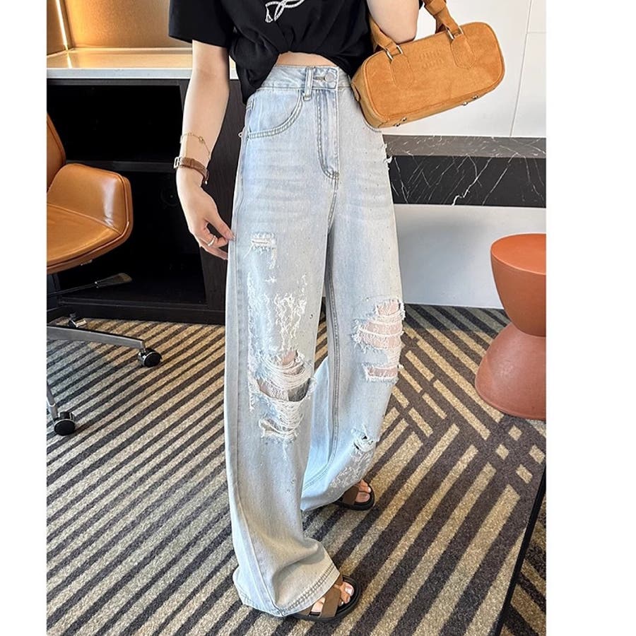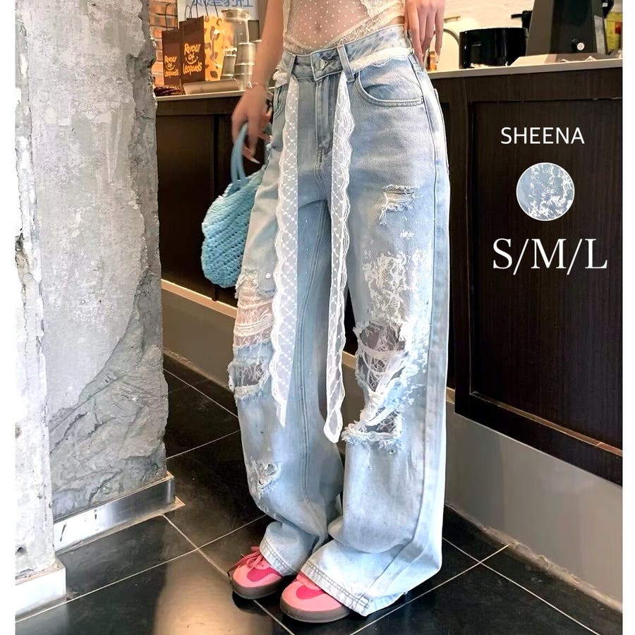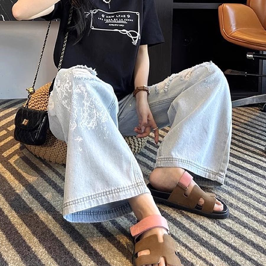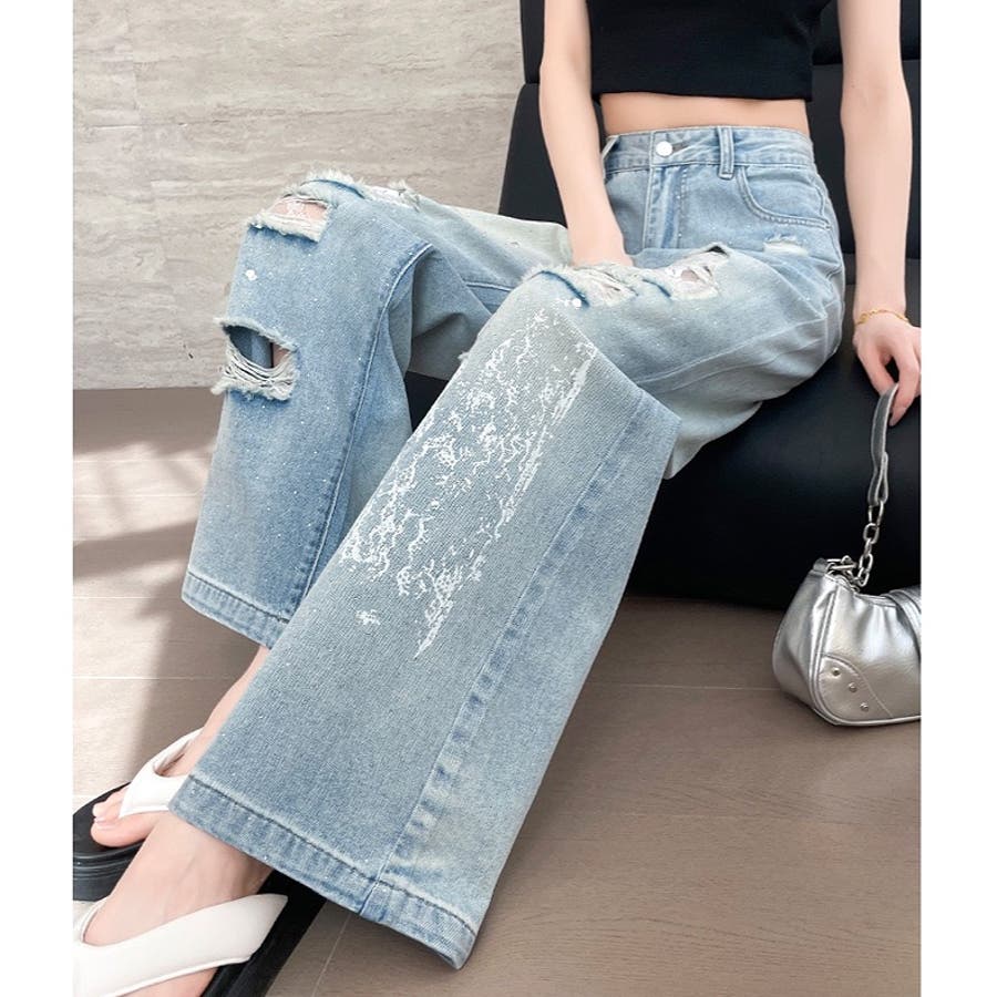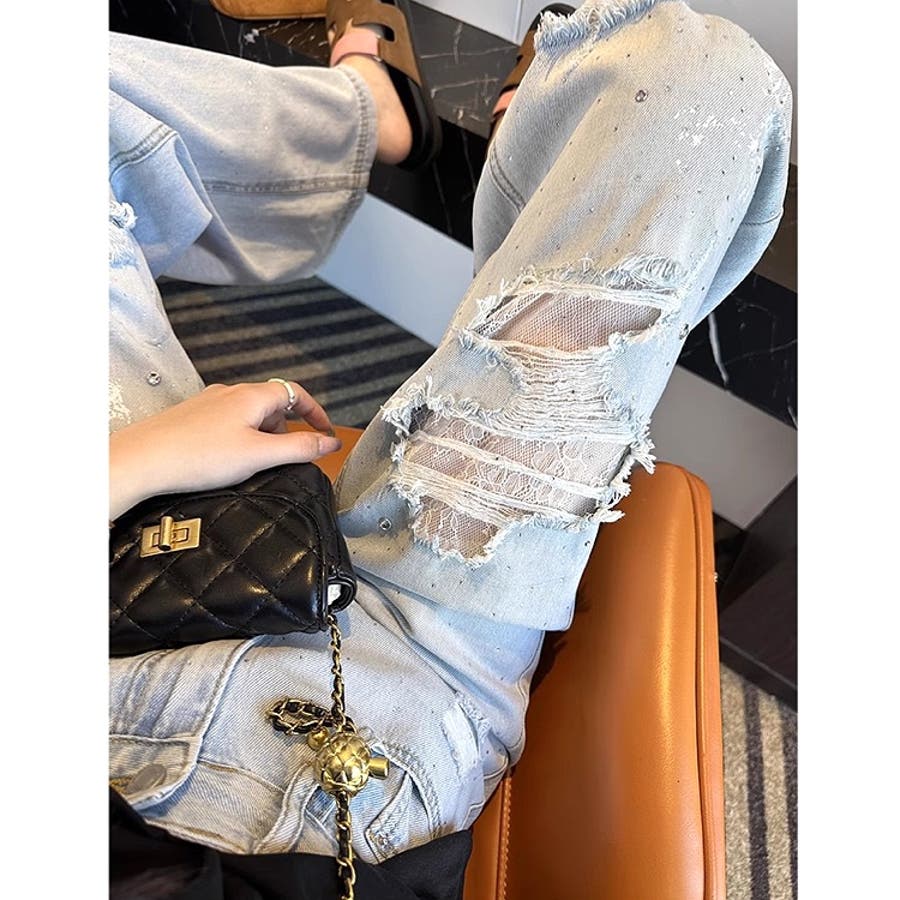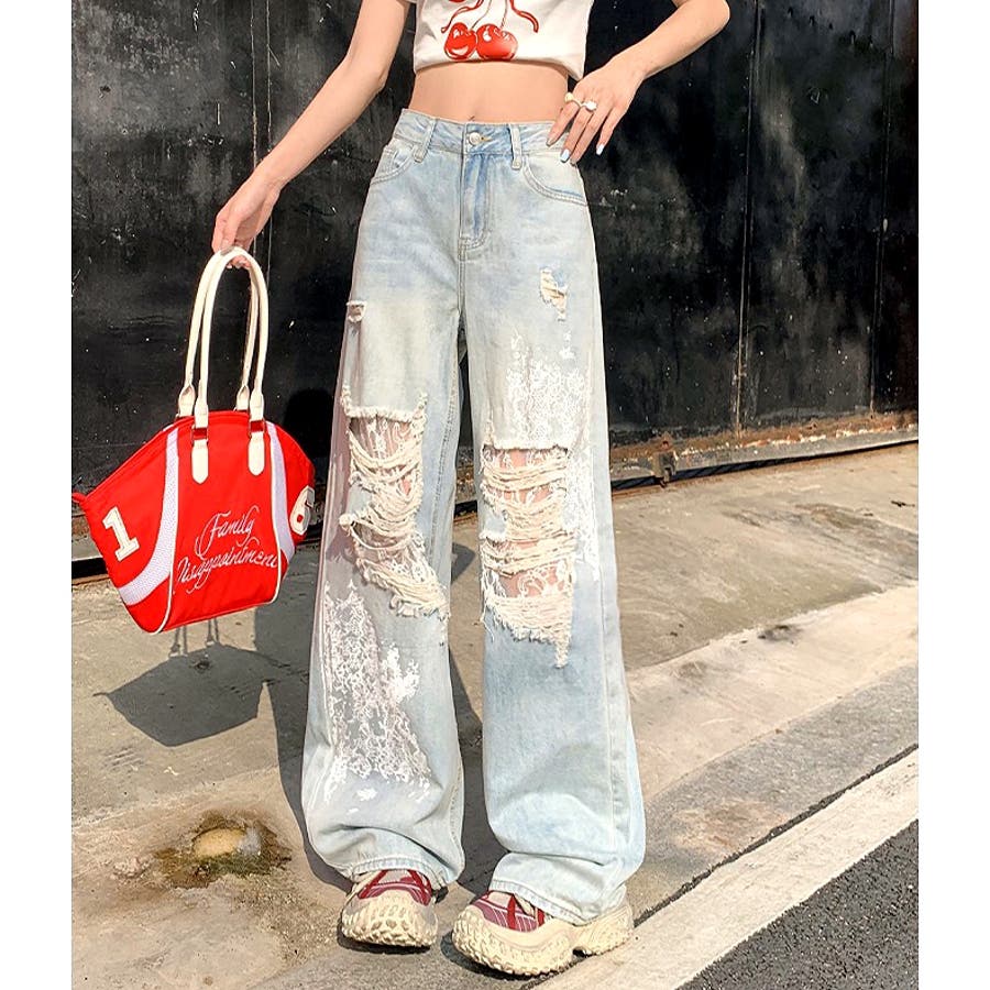 新作 春 夏 秋 冬 春服 夏服 秋服 冬服 オールシーズン デニム ワイドパンツ ゆったり 体型カバー レース ダメージ加工 ラインストーン カジュアル ストリート スポーティー 韓国 韓国ファッション トレンド OL 主婦 学生 ギャル Y2K 海外ガール シティガール グランジ 可愛い お洒落 着回し 10代 20代 30代 40代 50代