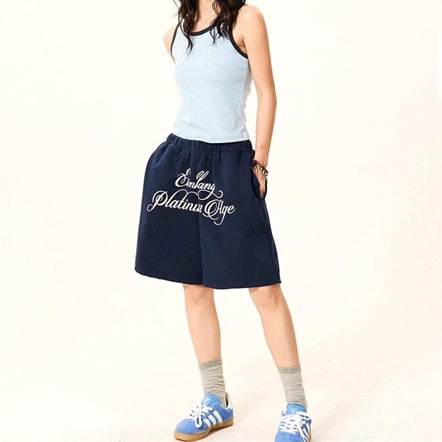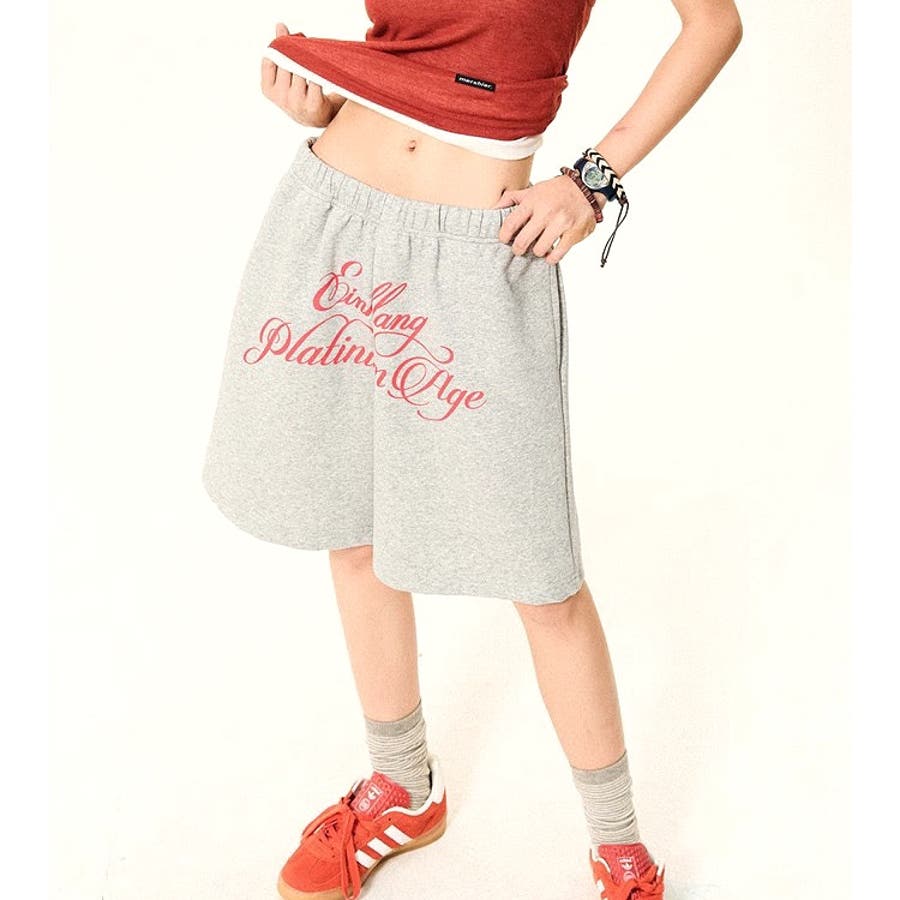 春夏新作 春 夏 秋 春服 夏服 秋服 スウェット ハーフパンツ ウエストゴム ゆったり 体型カバー 楽ちん ロゴプリント カジュアル ストリート スポーティー 韓国 韓国ファッション トレンド 主婦 学生 ギャル Y2K 海外ガール シティガール ダンス ルームウェア メンズライク レイヤード 着回し お洒落 10代 20代 30代 40代 50代