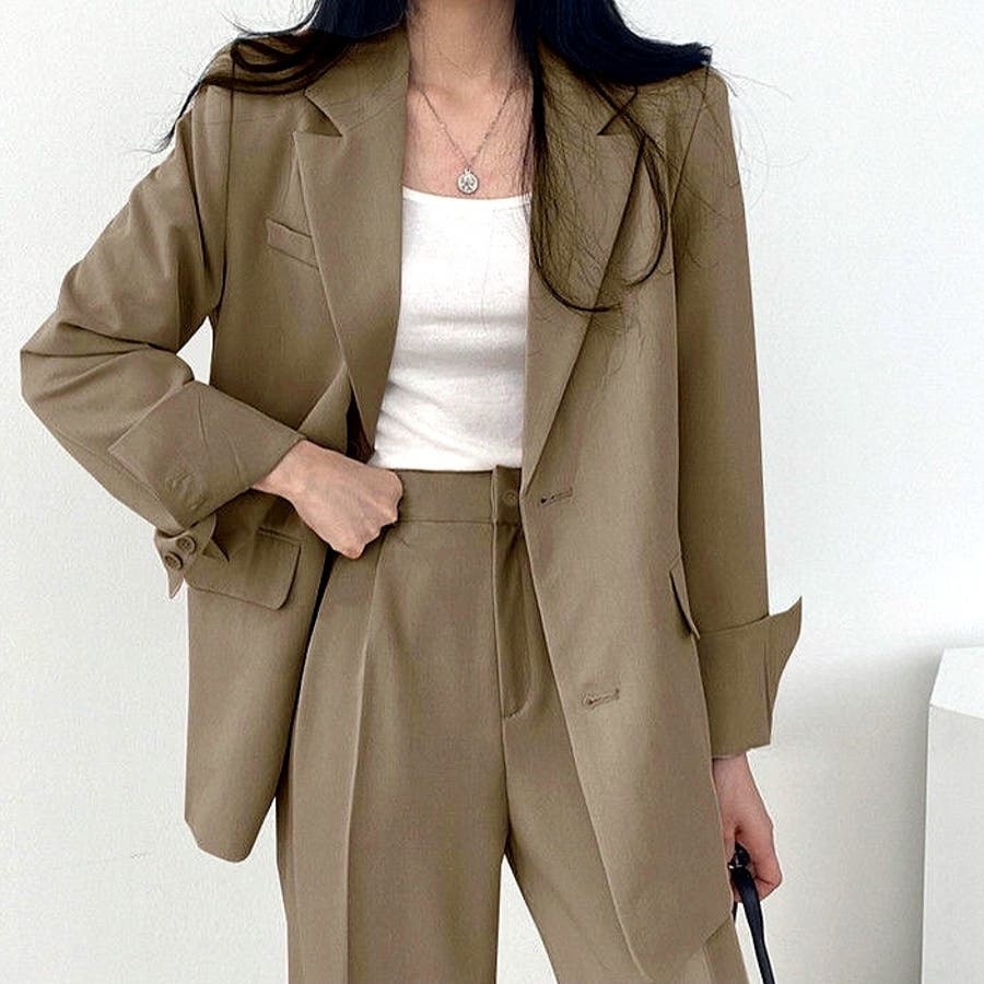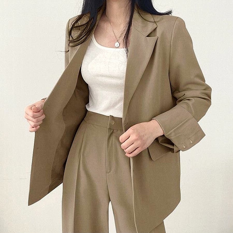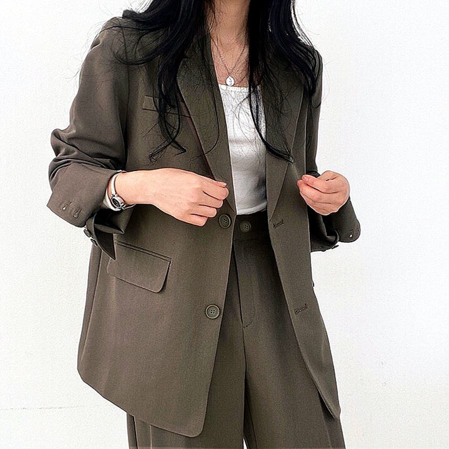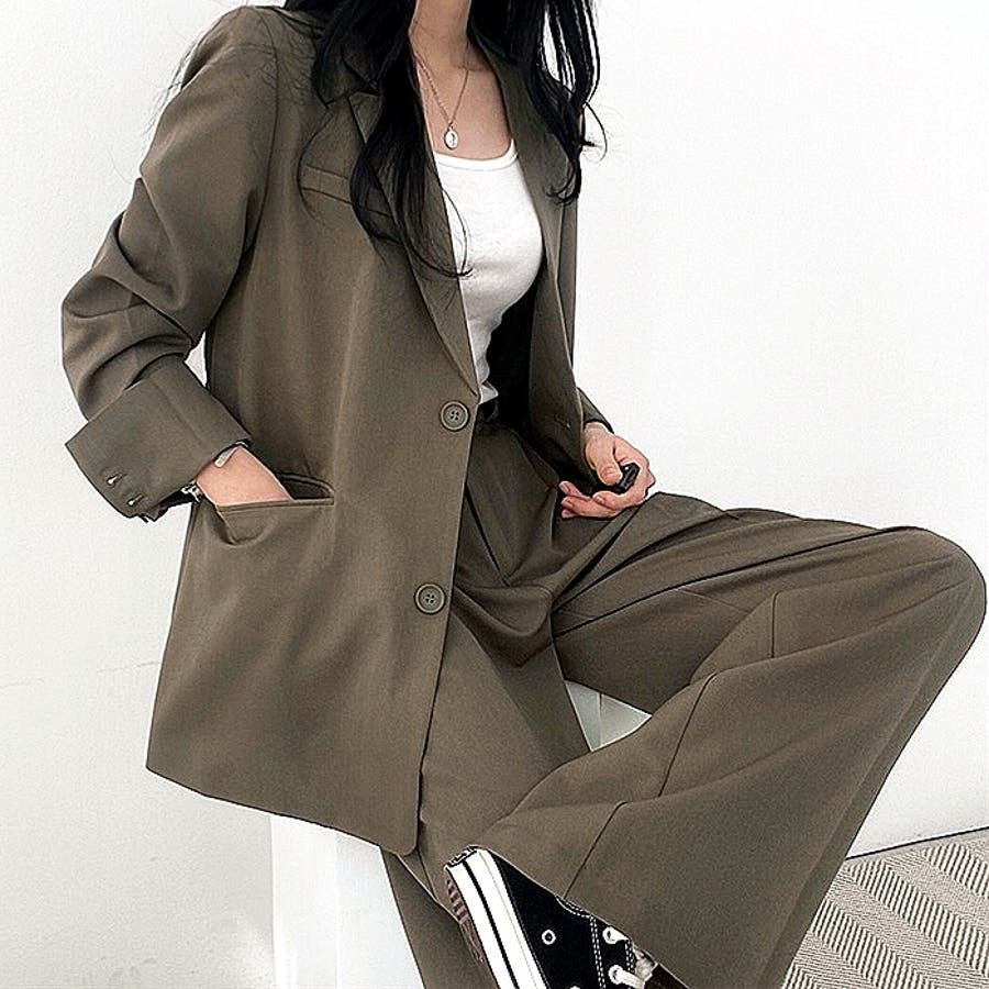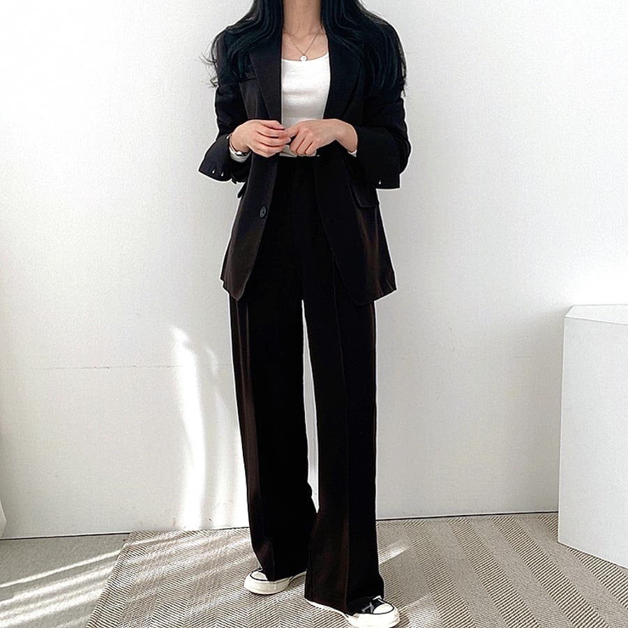 セットでの着用はもちろん、ジャケットをシアーシャツやブラウス、トレーナーなどに変えればシーズンレスで使えて着回しの幅も広がる万能アイテム。