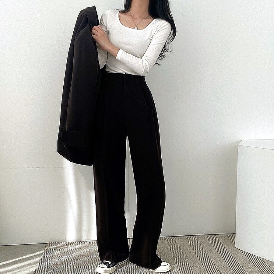 パンツはシルエットにこだわり、脚がキレイに見えるワイドデザイン。