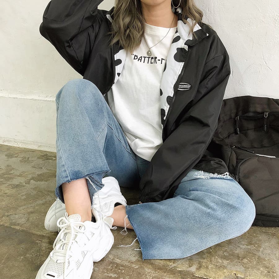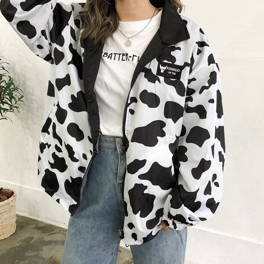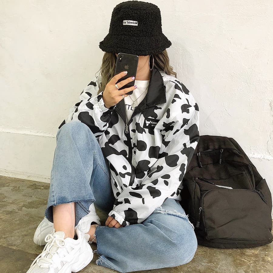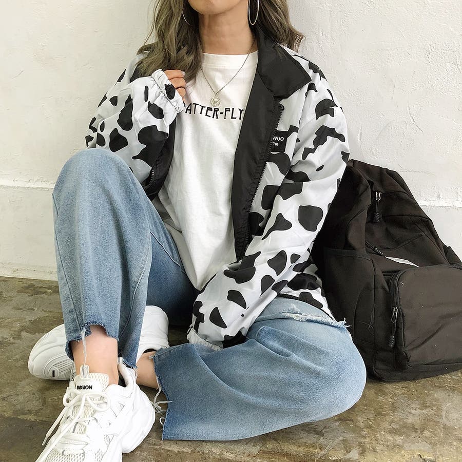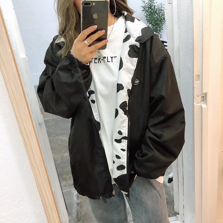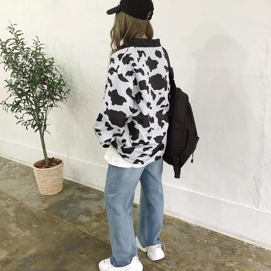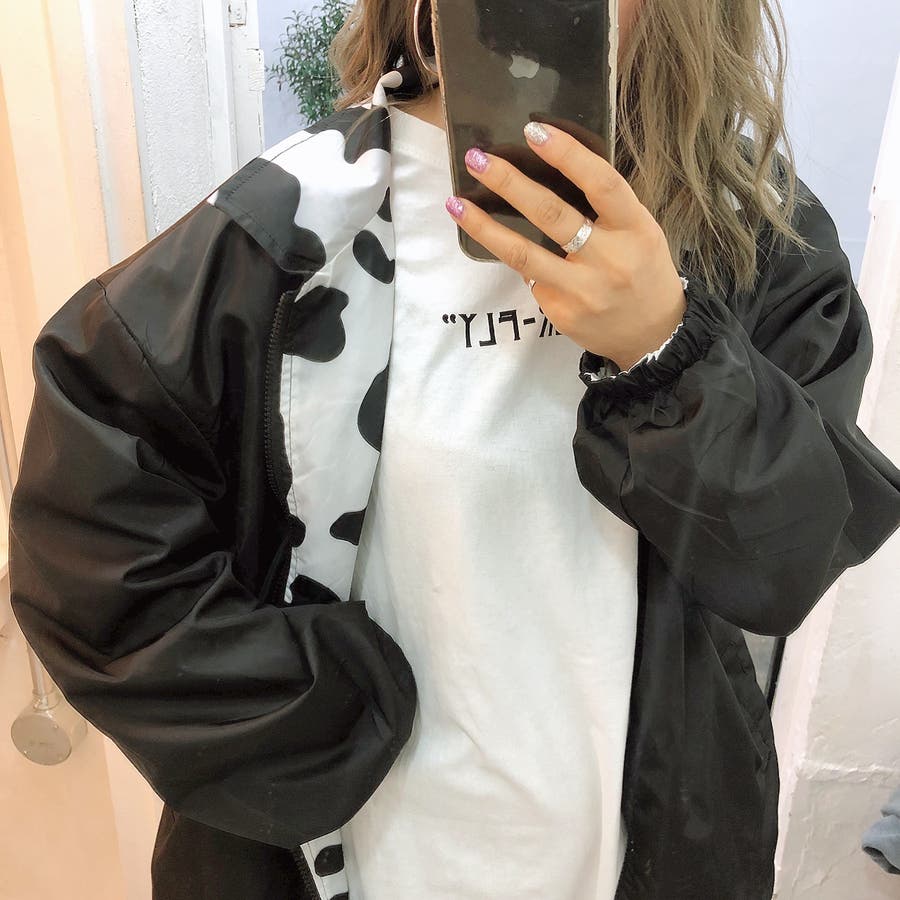 牛柄がちらっと見えるのが可愛いです♪ダボッと来たかったのでぽっちゃりでも余裕があり、 これ1枚で 体型カバーもできるのでとても気に入りました♪