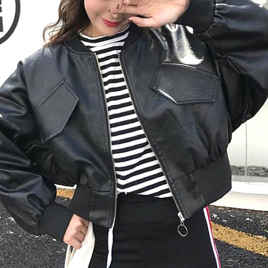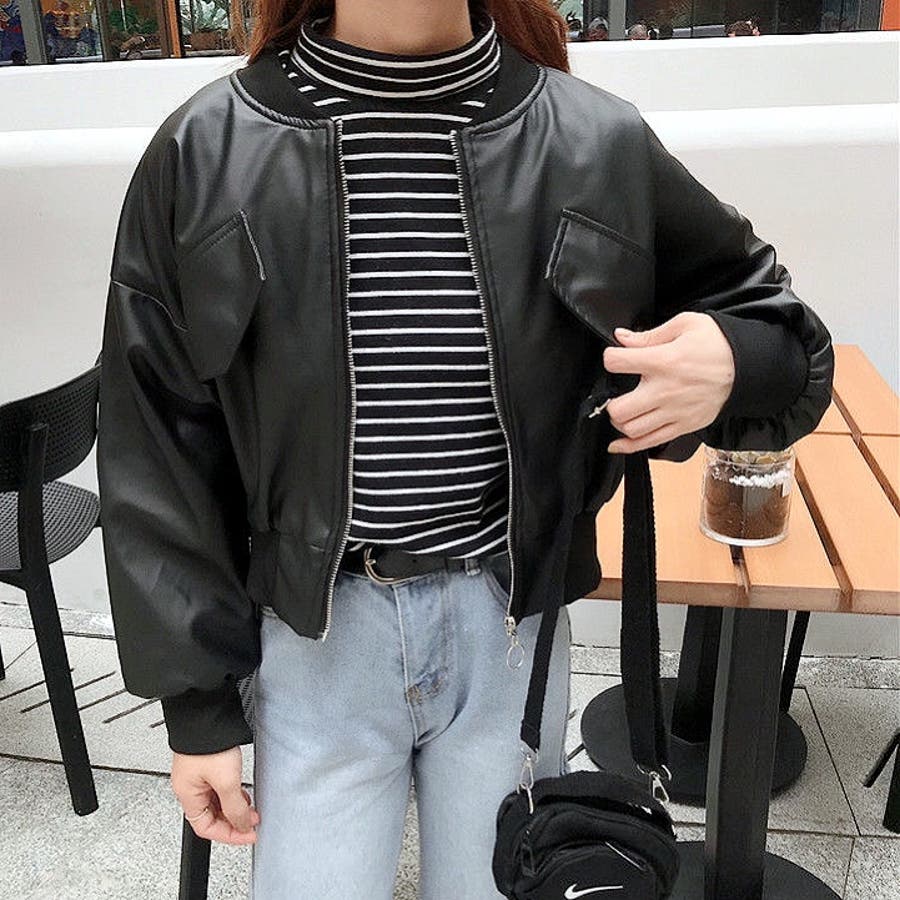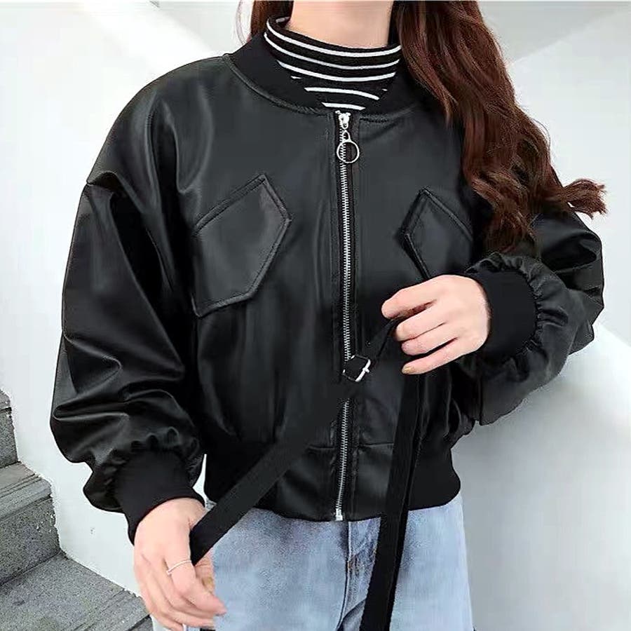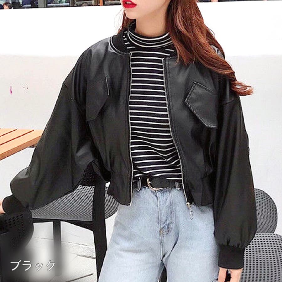 エコレザークロップド丈ブルゾン 秋 冬