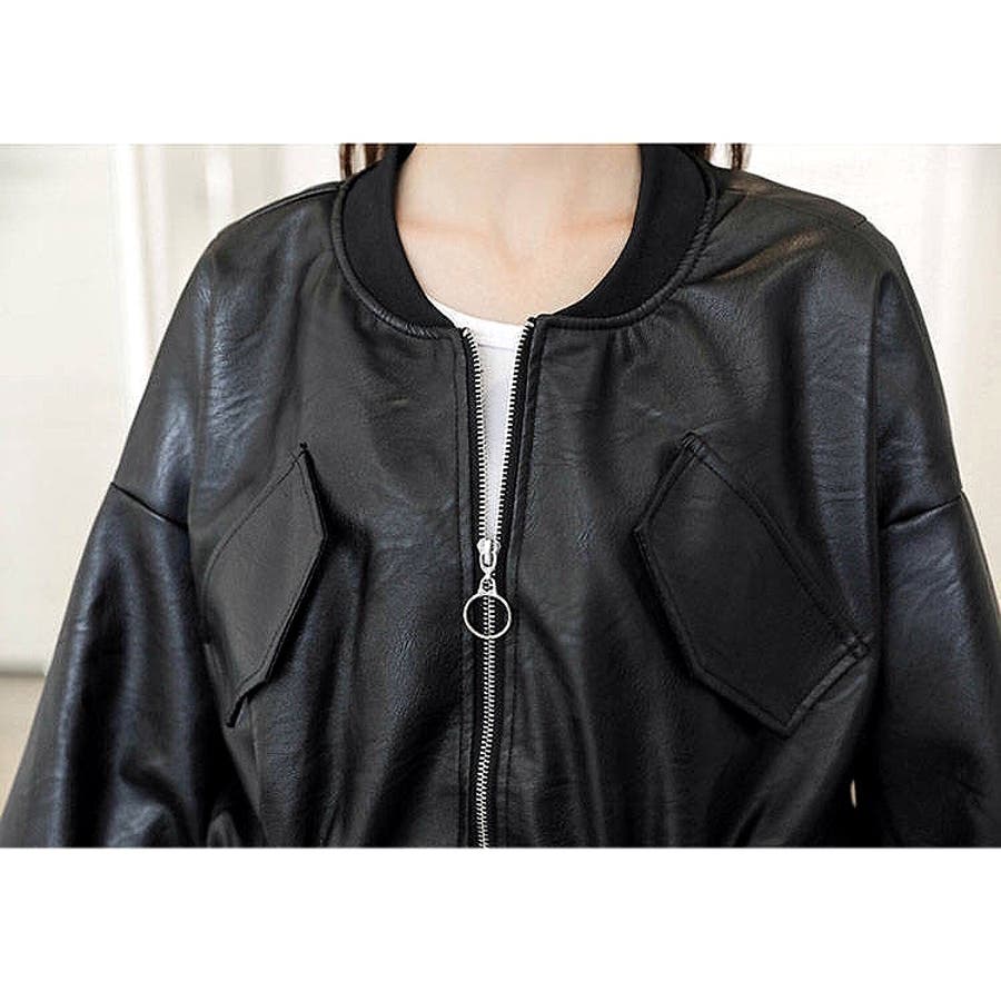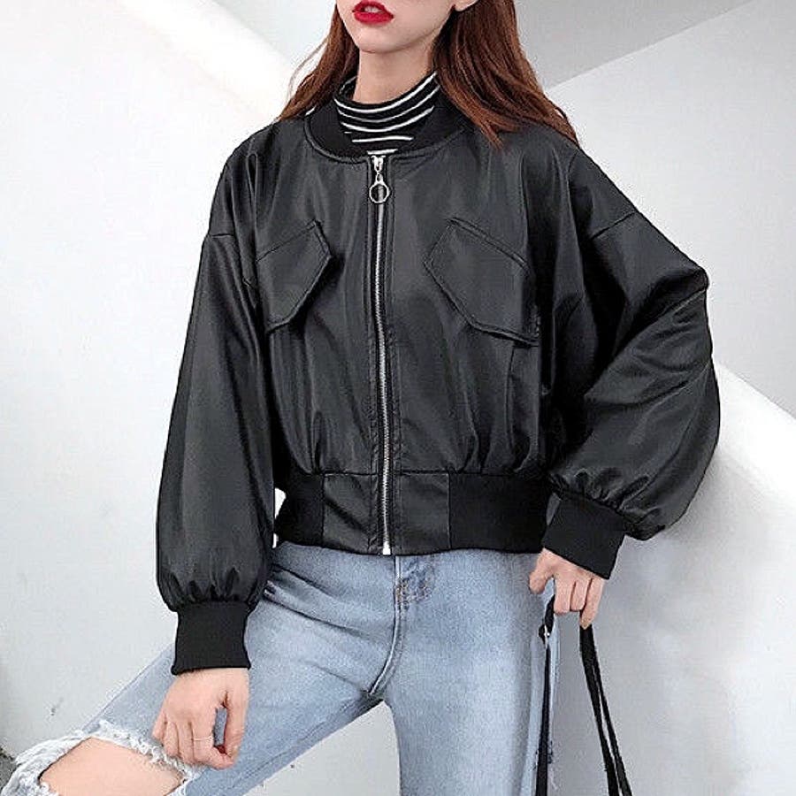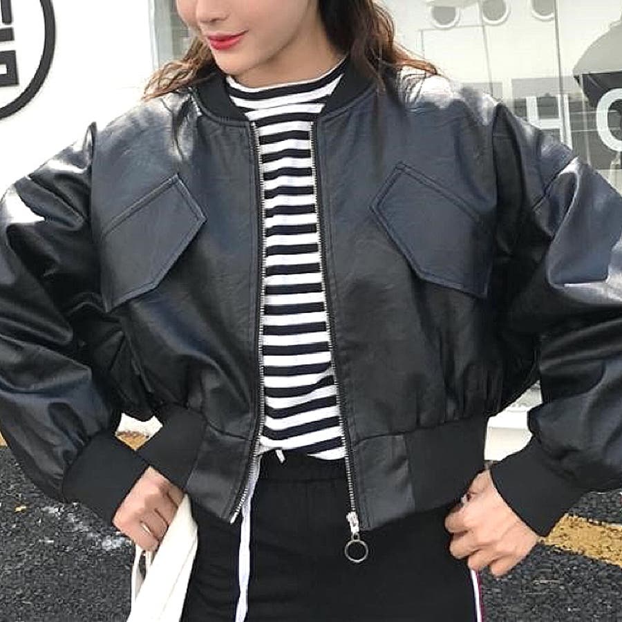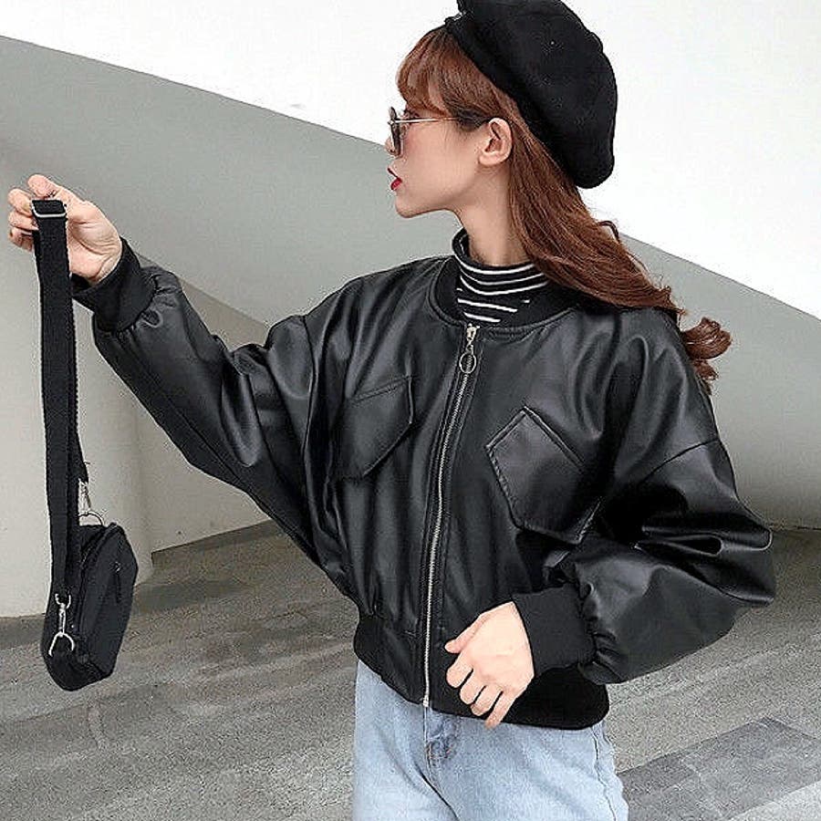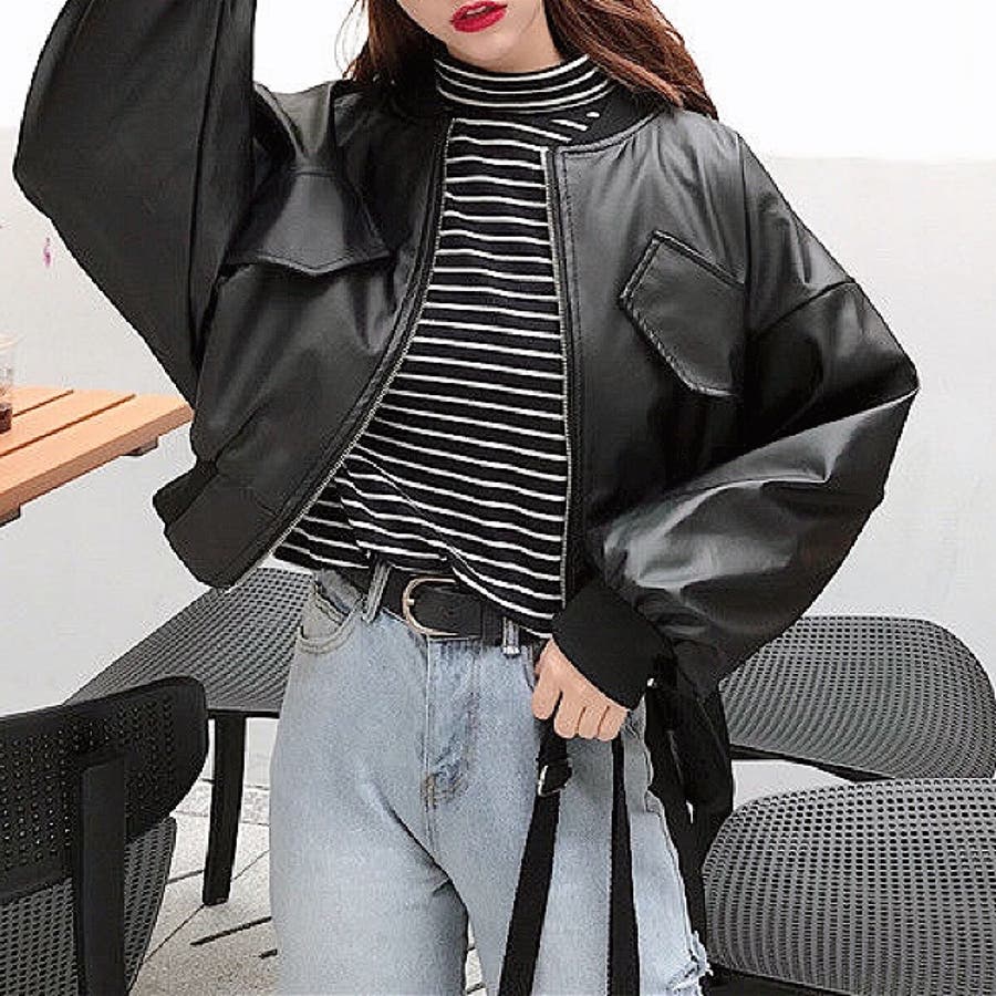 エコレザークロップド丈ブルゾン 秋 冬
