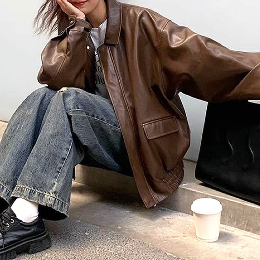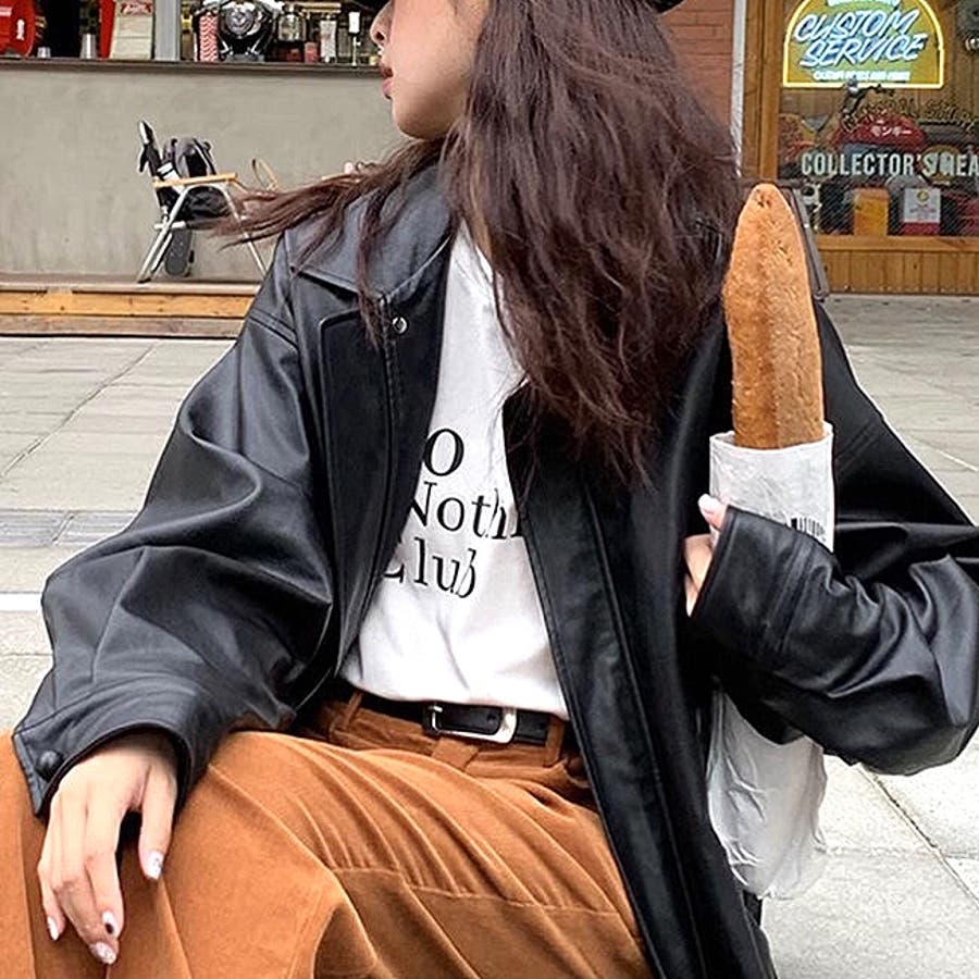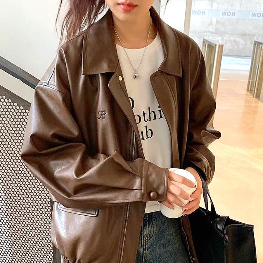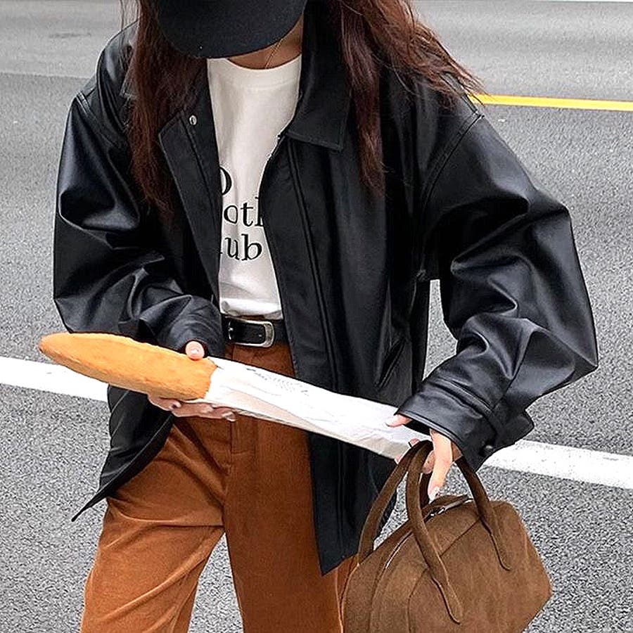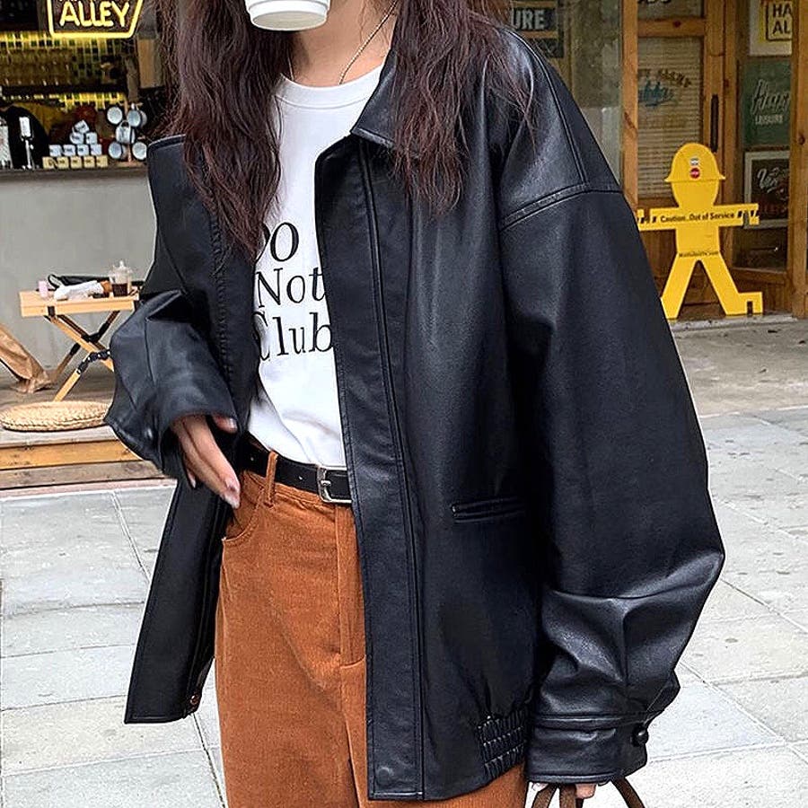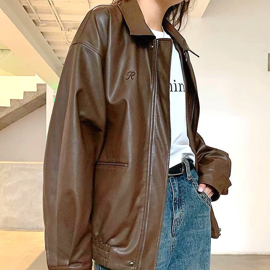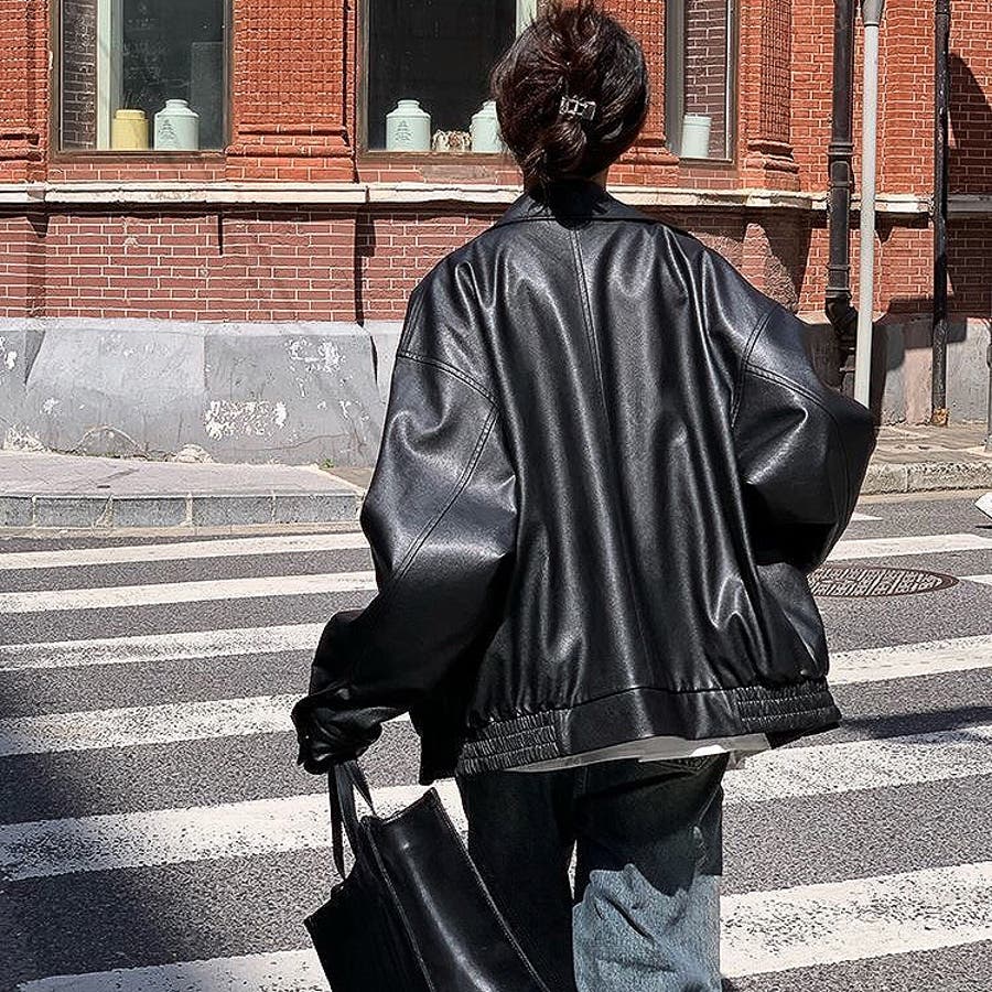 オーバーサイズフェイクレザーブルゾン 秋 冬