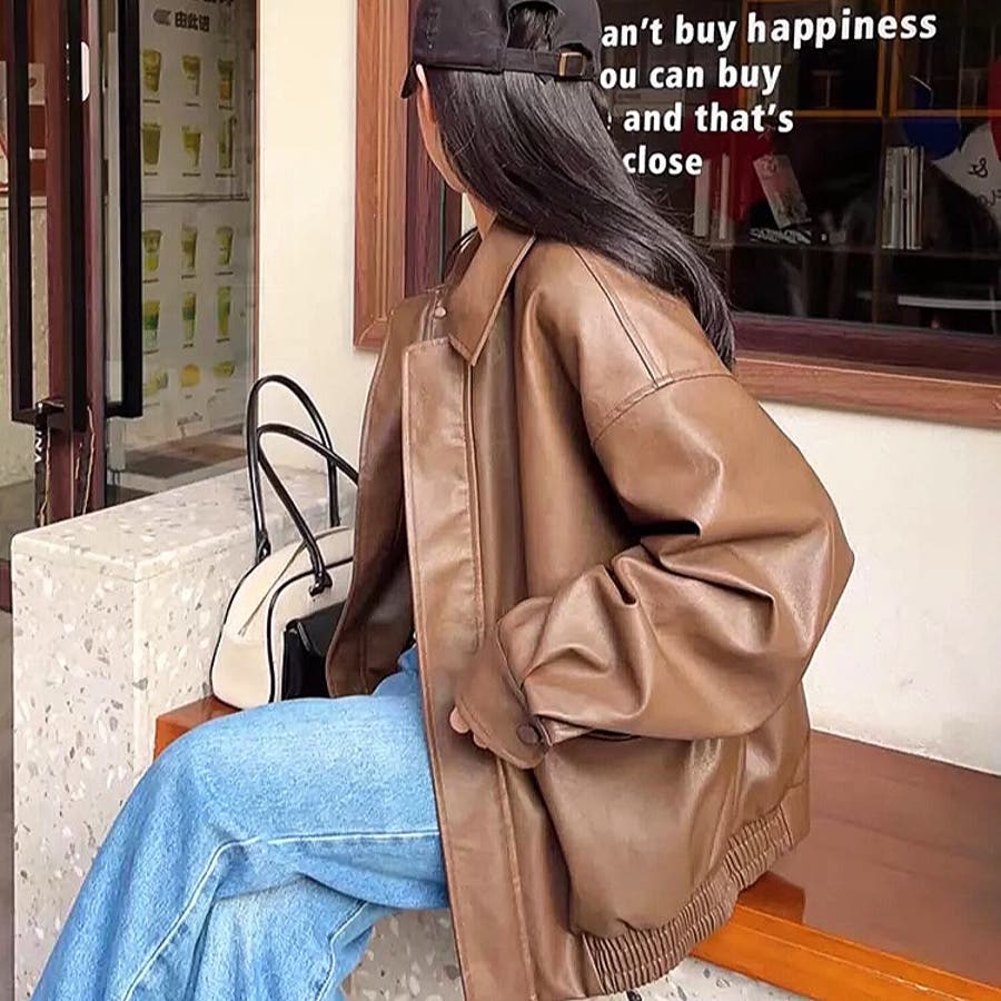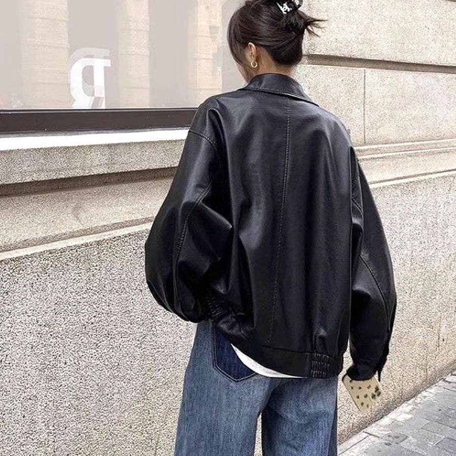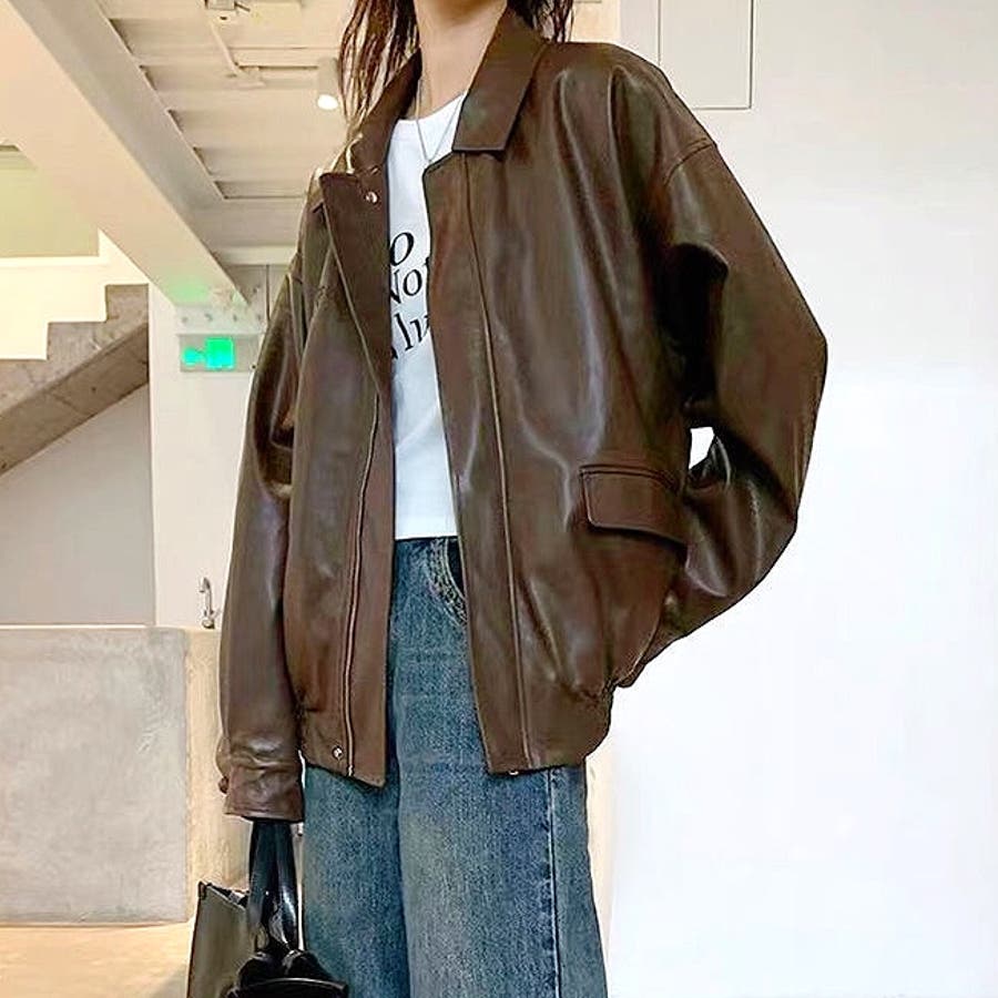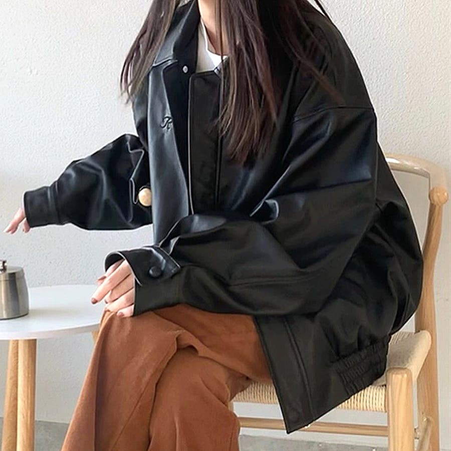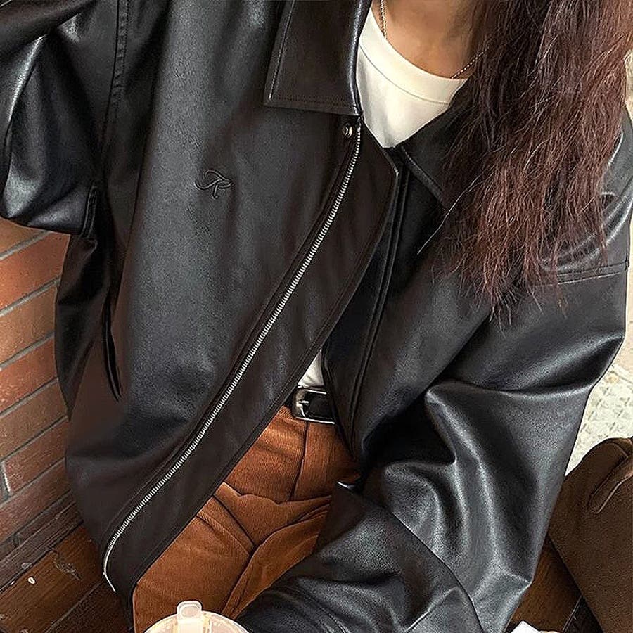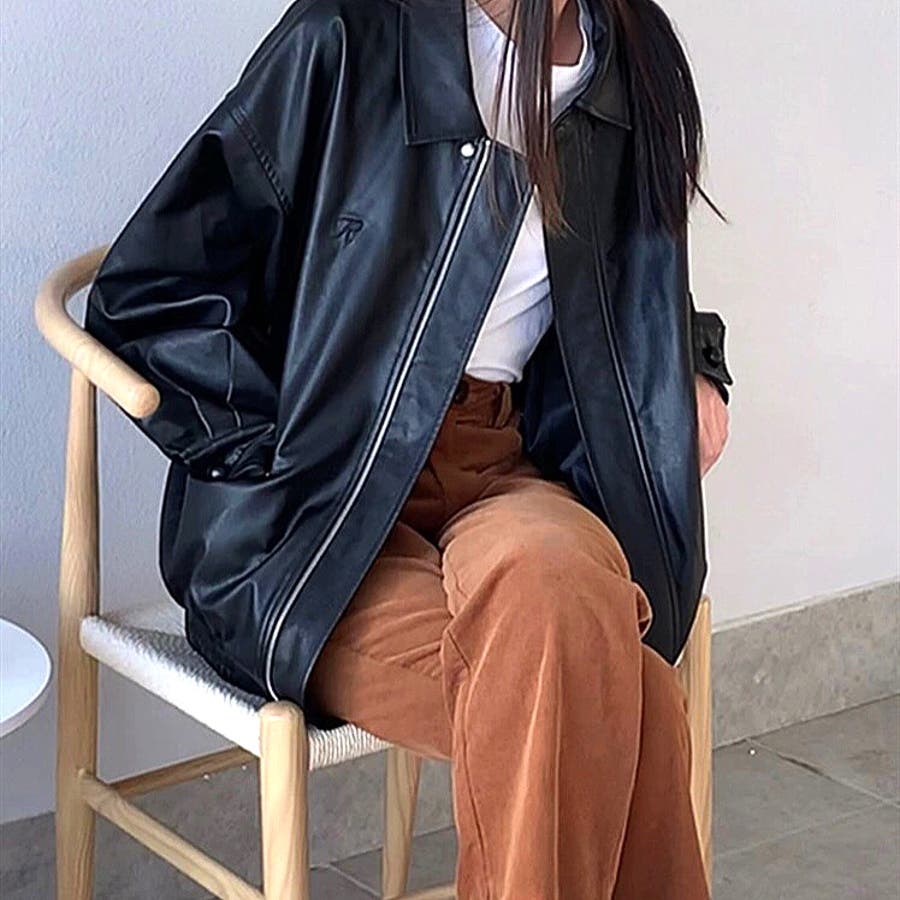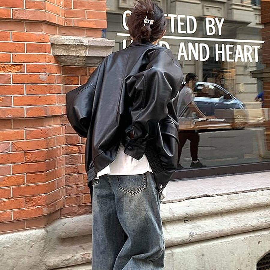 オーバーサイズフェイクレザーブルゾン 秋 冬